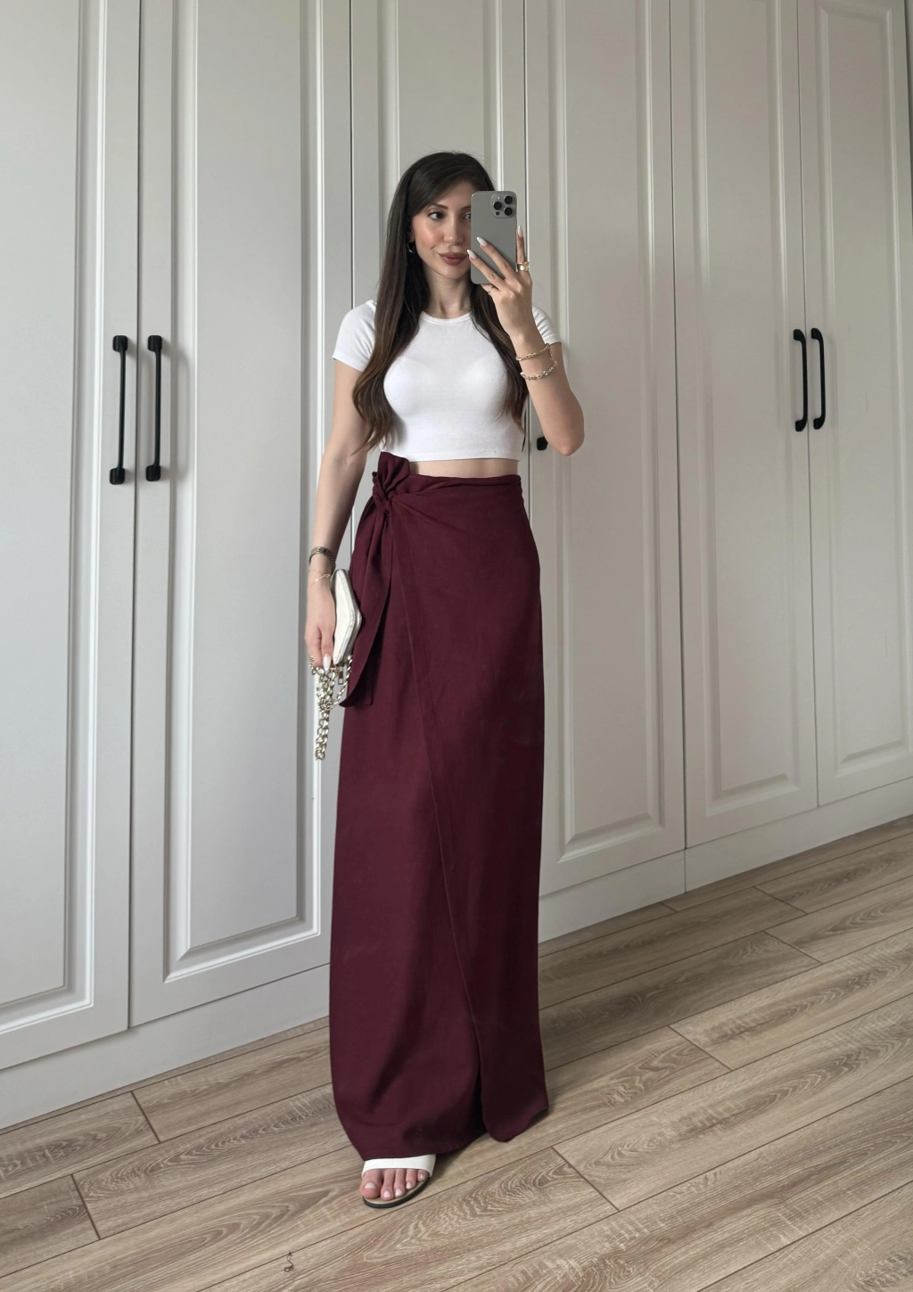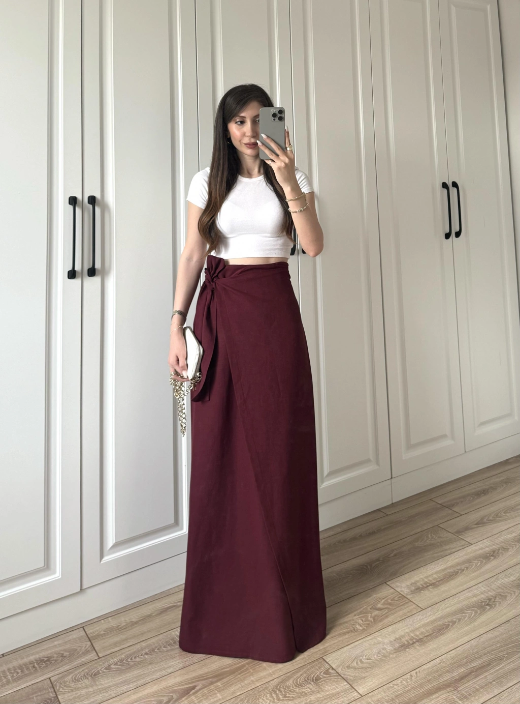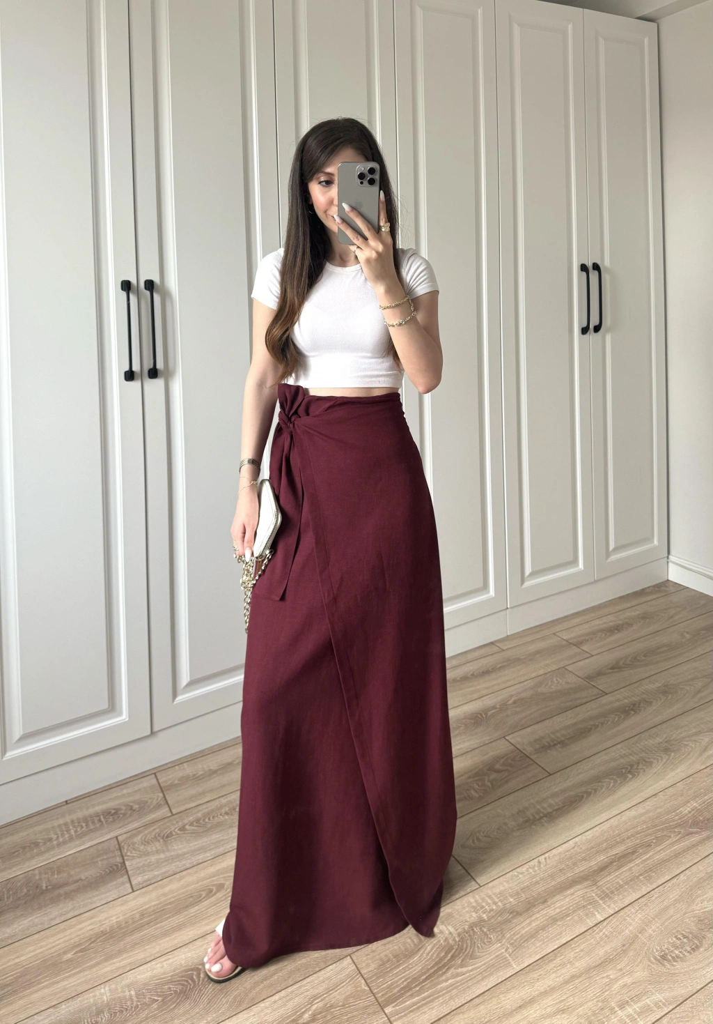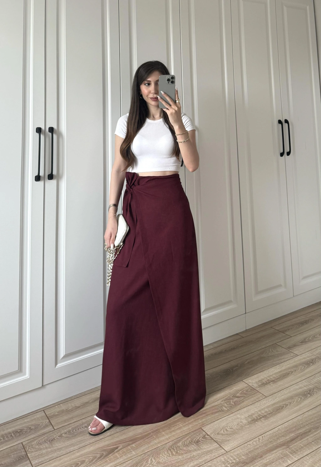 Holla Astarlı Kırışık Tarçın Tül Etek