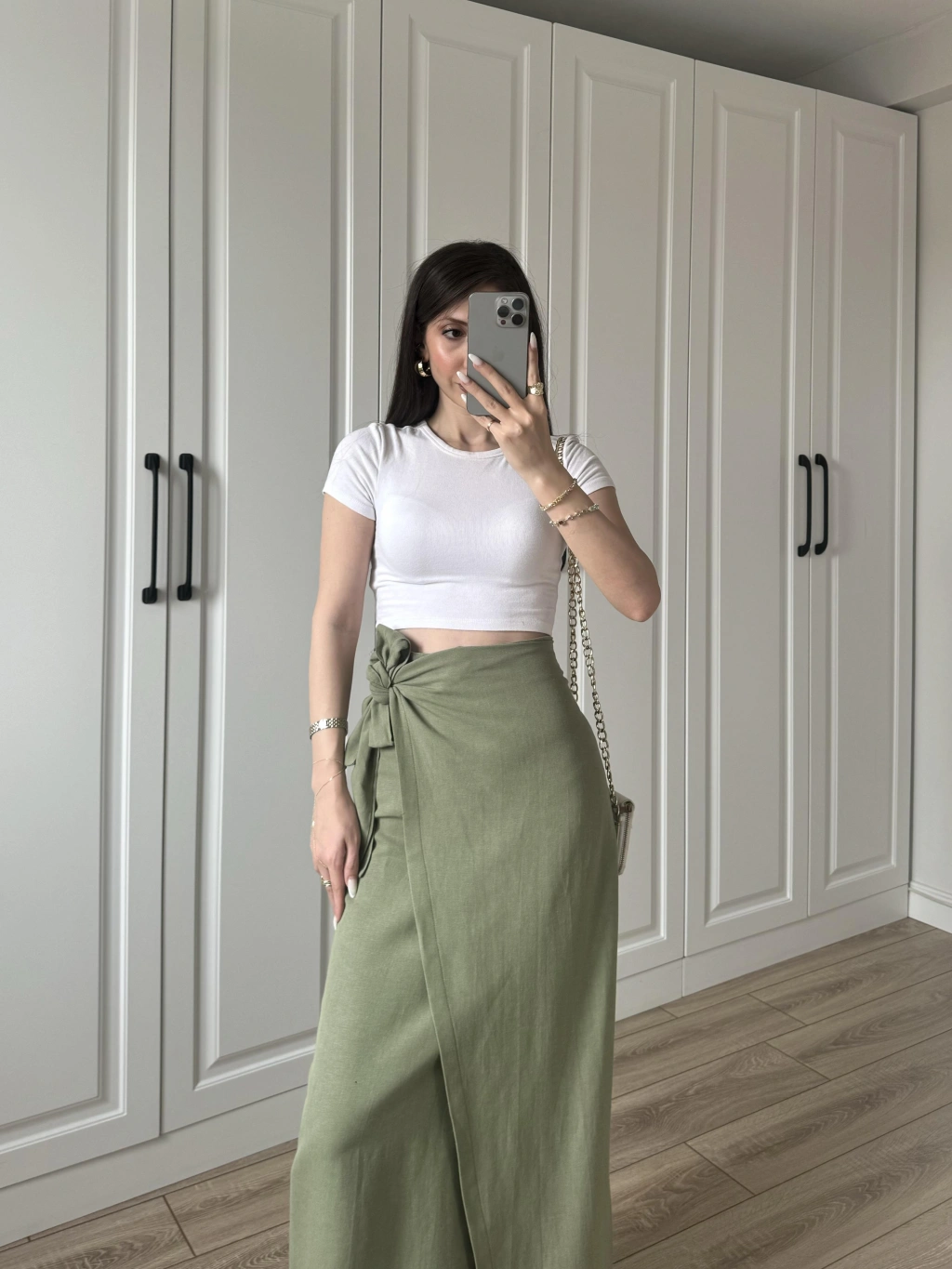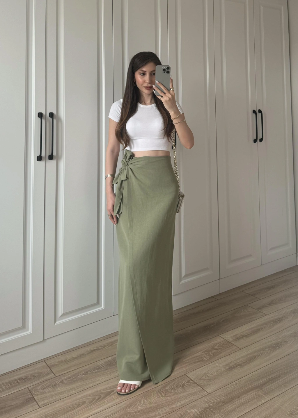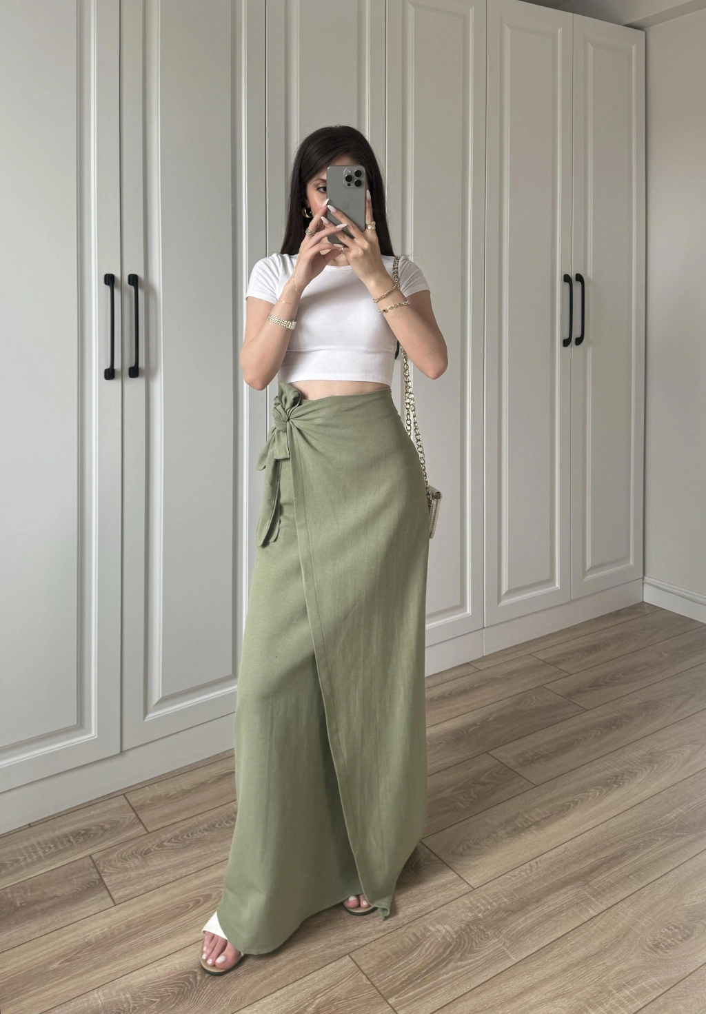 Midi Boy Şifon Astarlı Çağla Etek