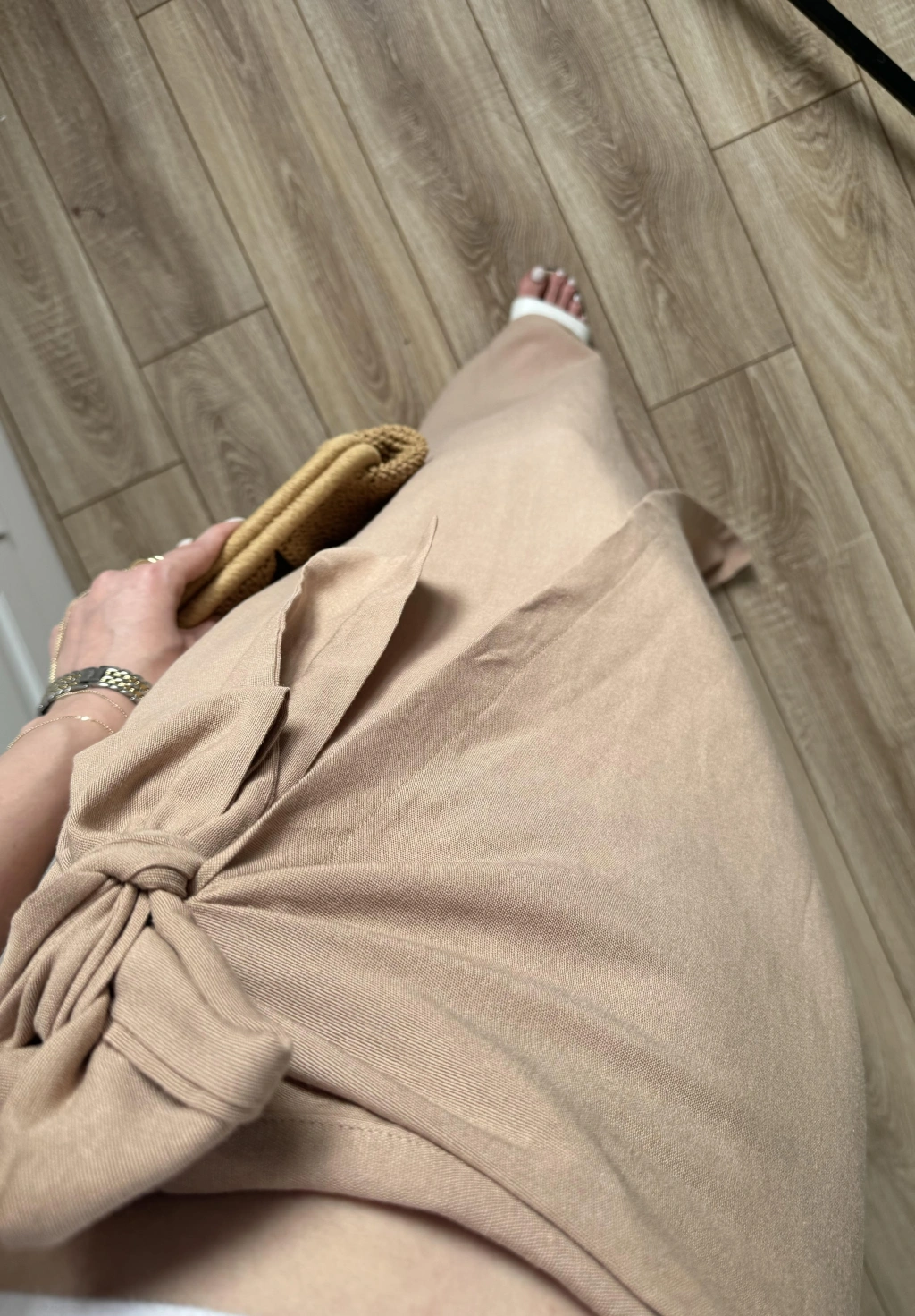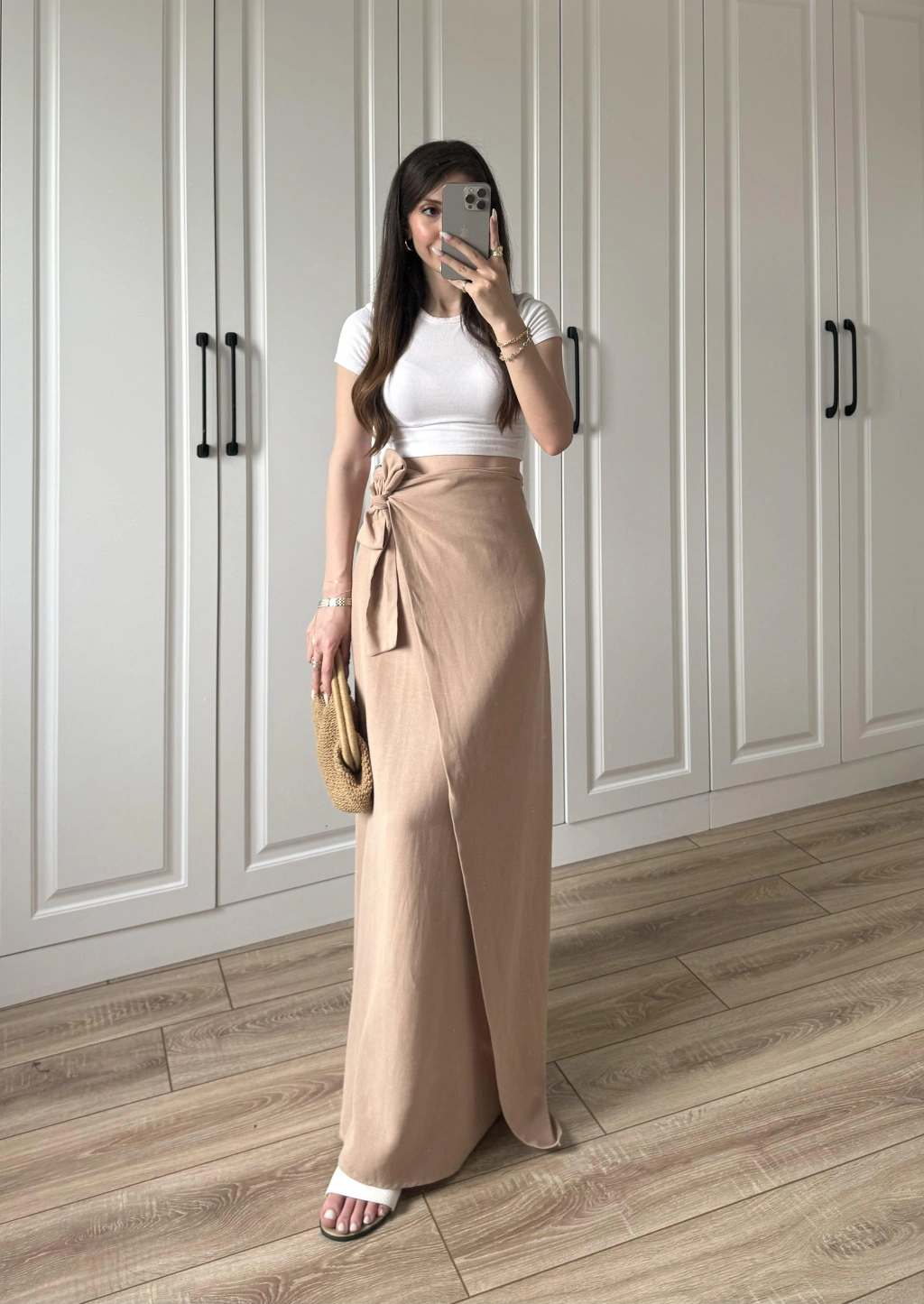 Midi Boy Şifon Astarlı Cappuccino Etek
