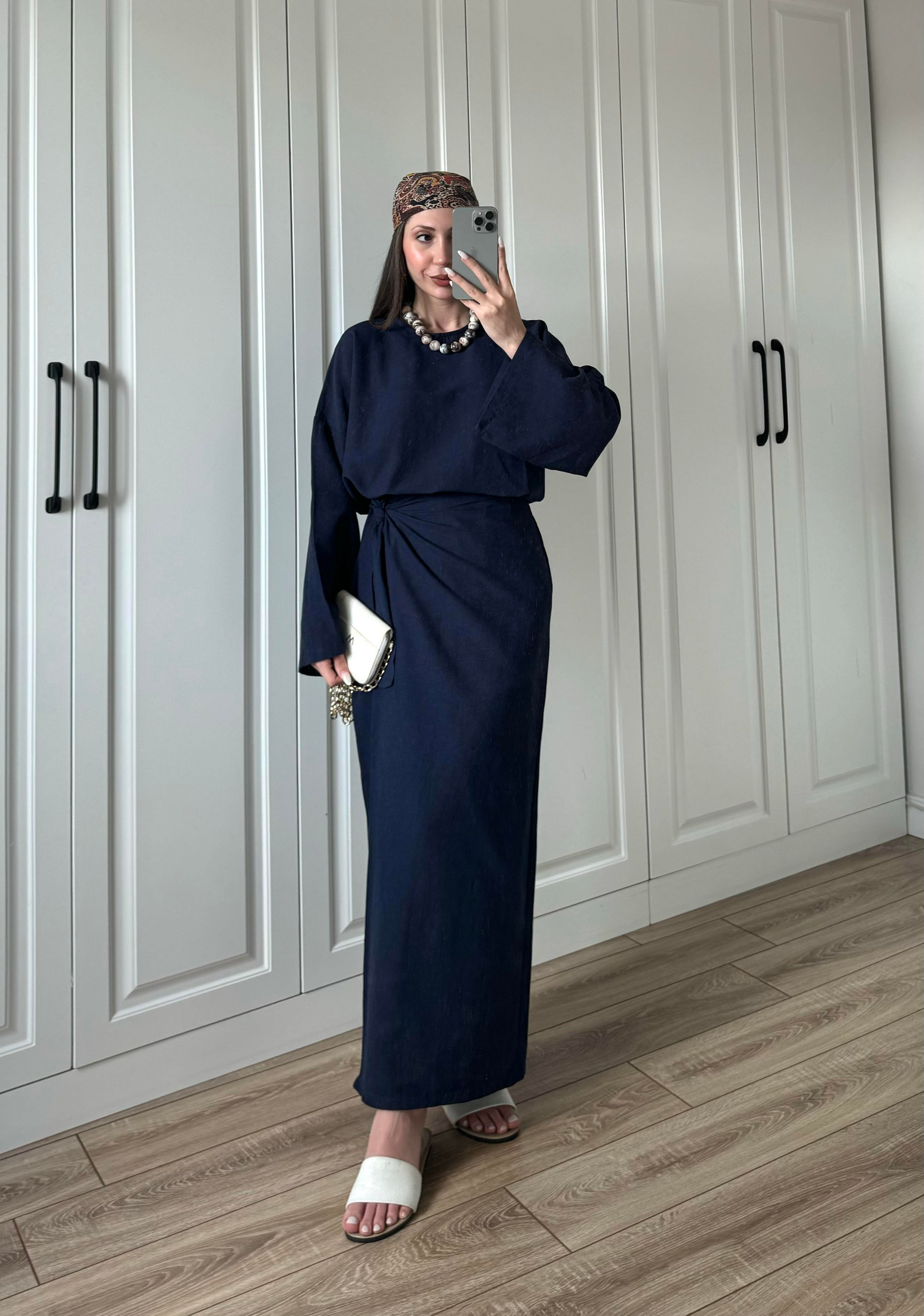 Anvelop Tasarım Keten Lacivert İkili Takım