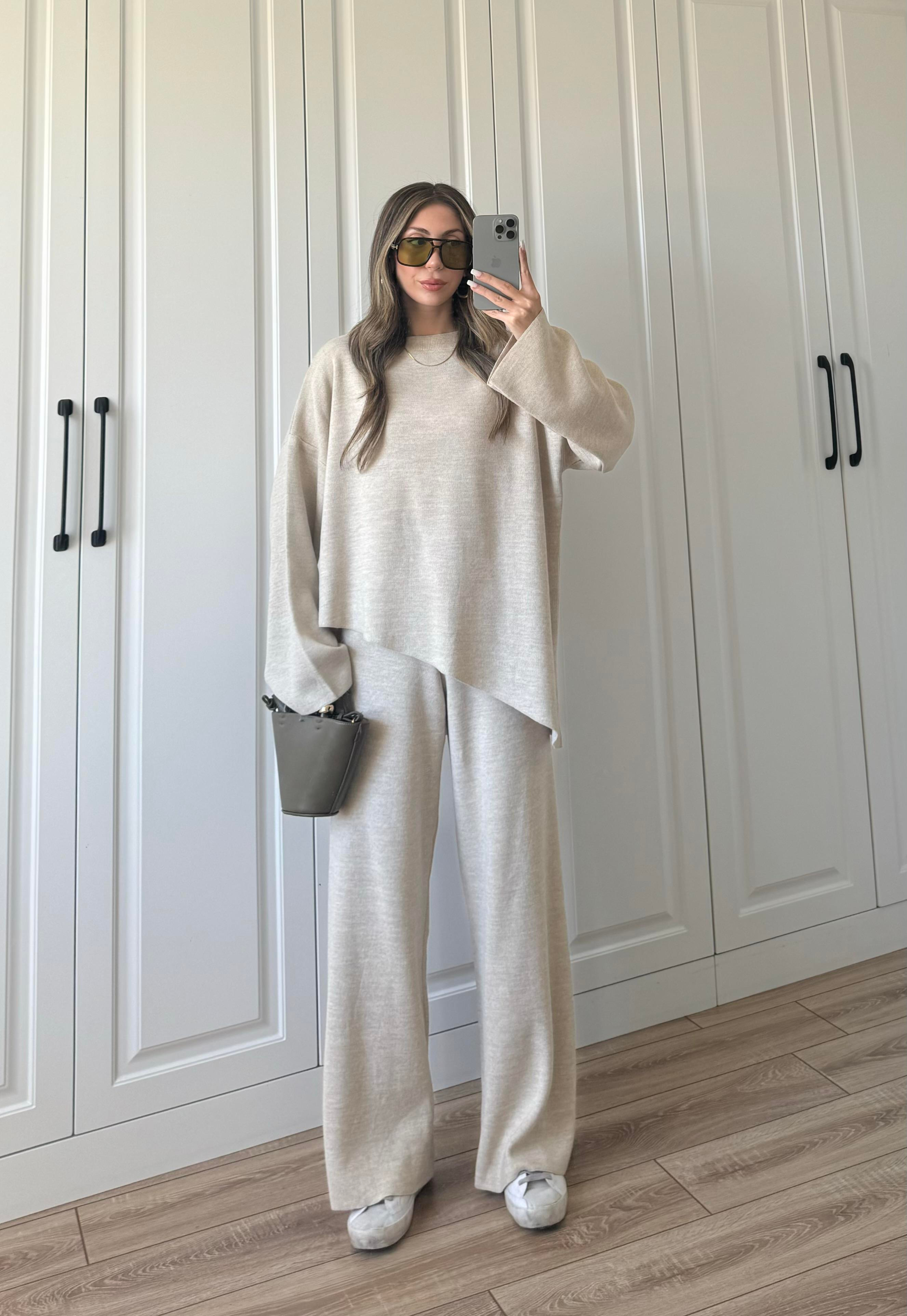 Asimetrik Çapraz Kesim Taş Triko Takım