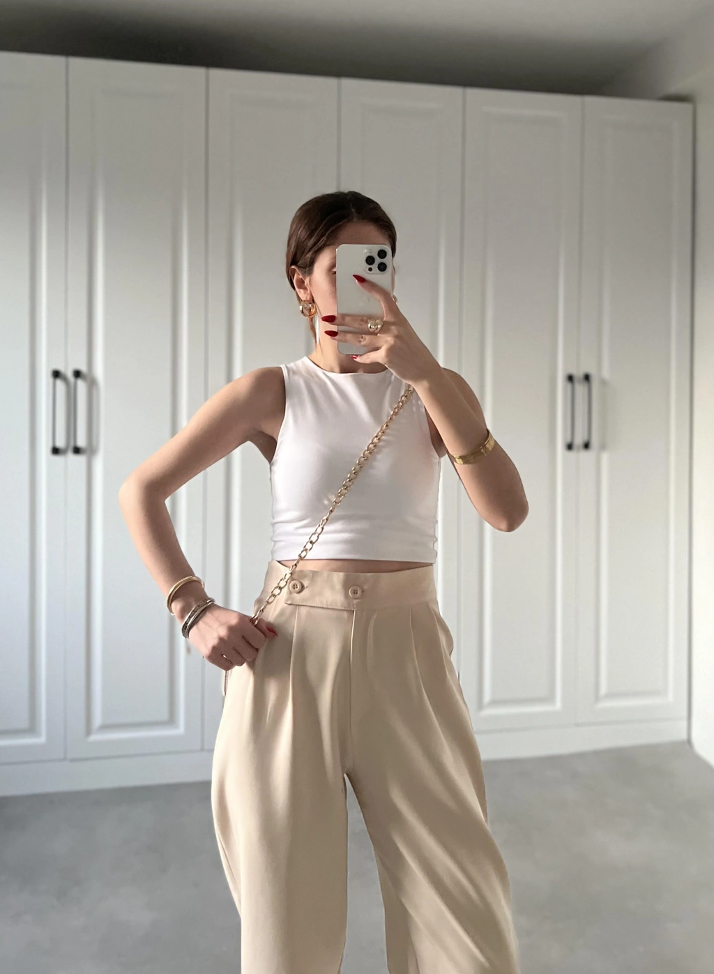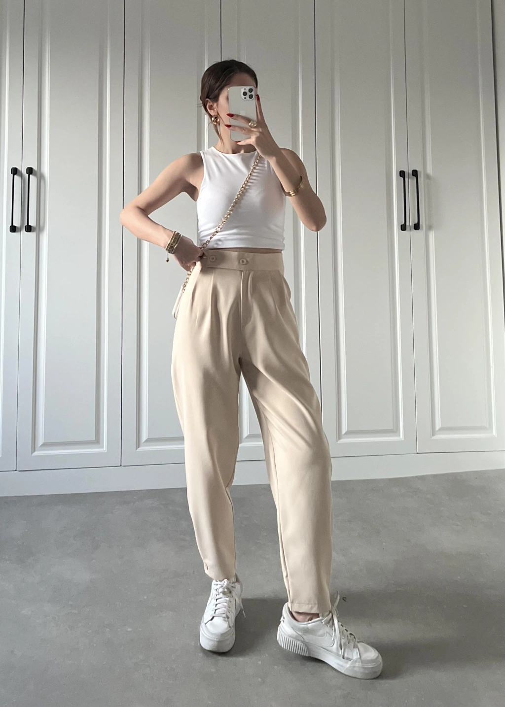 Yükselbel Fit Kalıp Taş Kumaş Pantolon