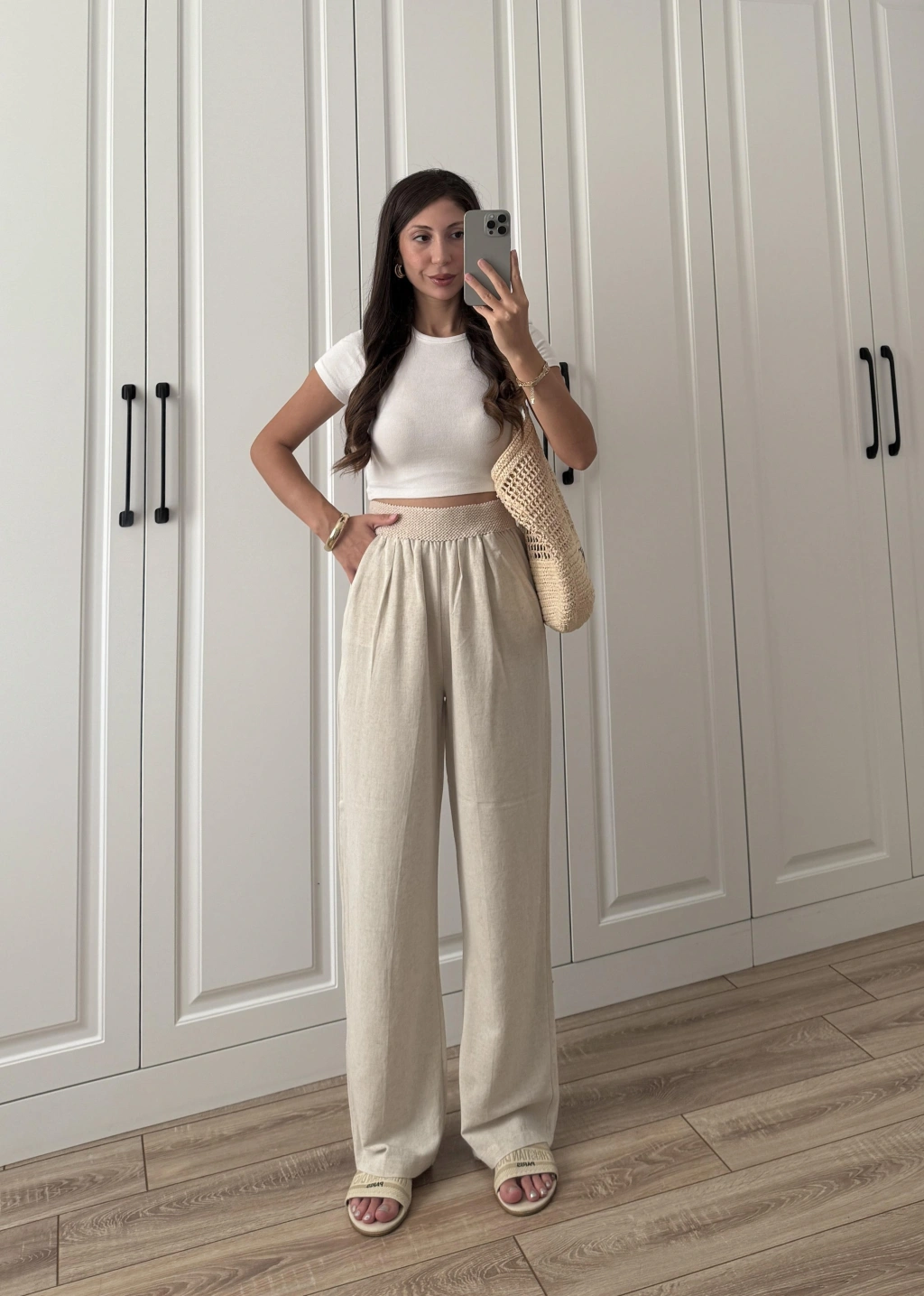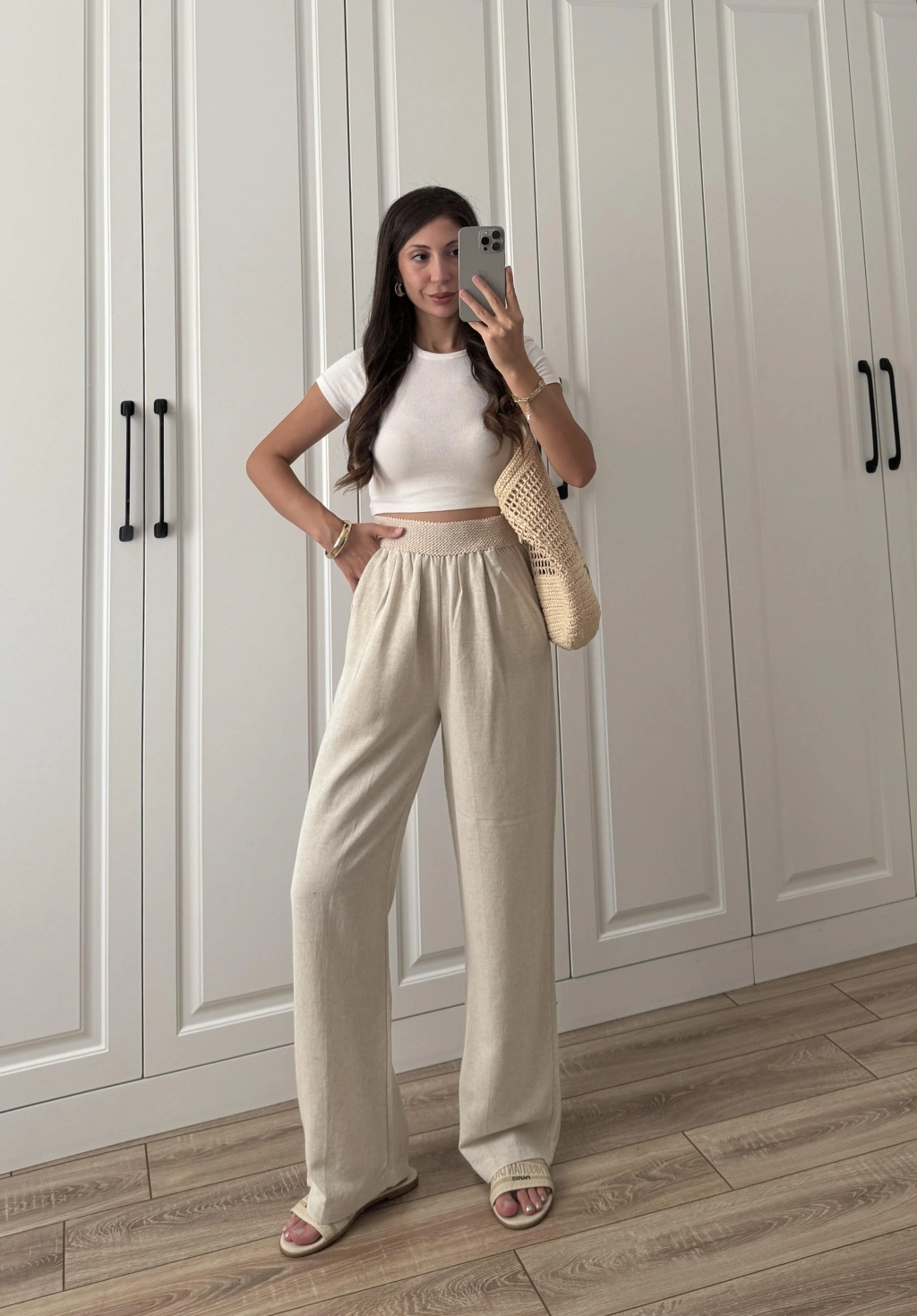 Stradi Model Keten Beyaz Palazzo Pantolon