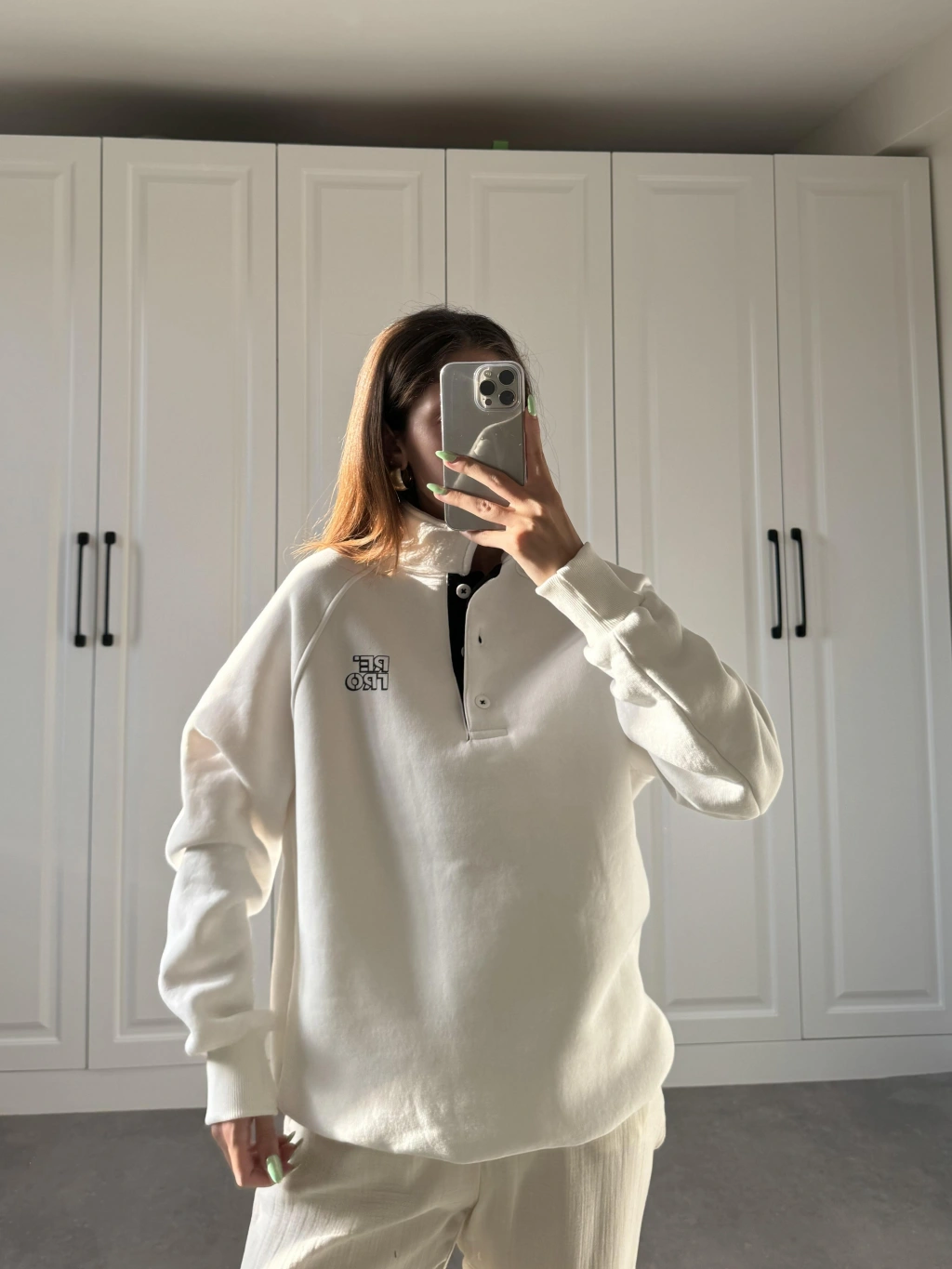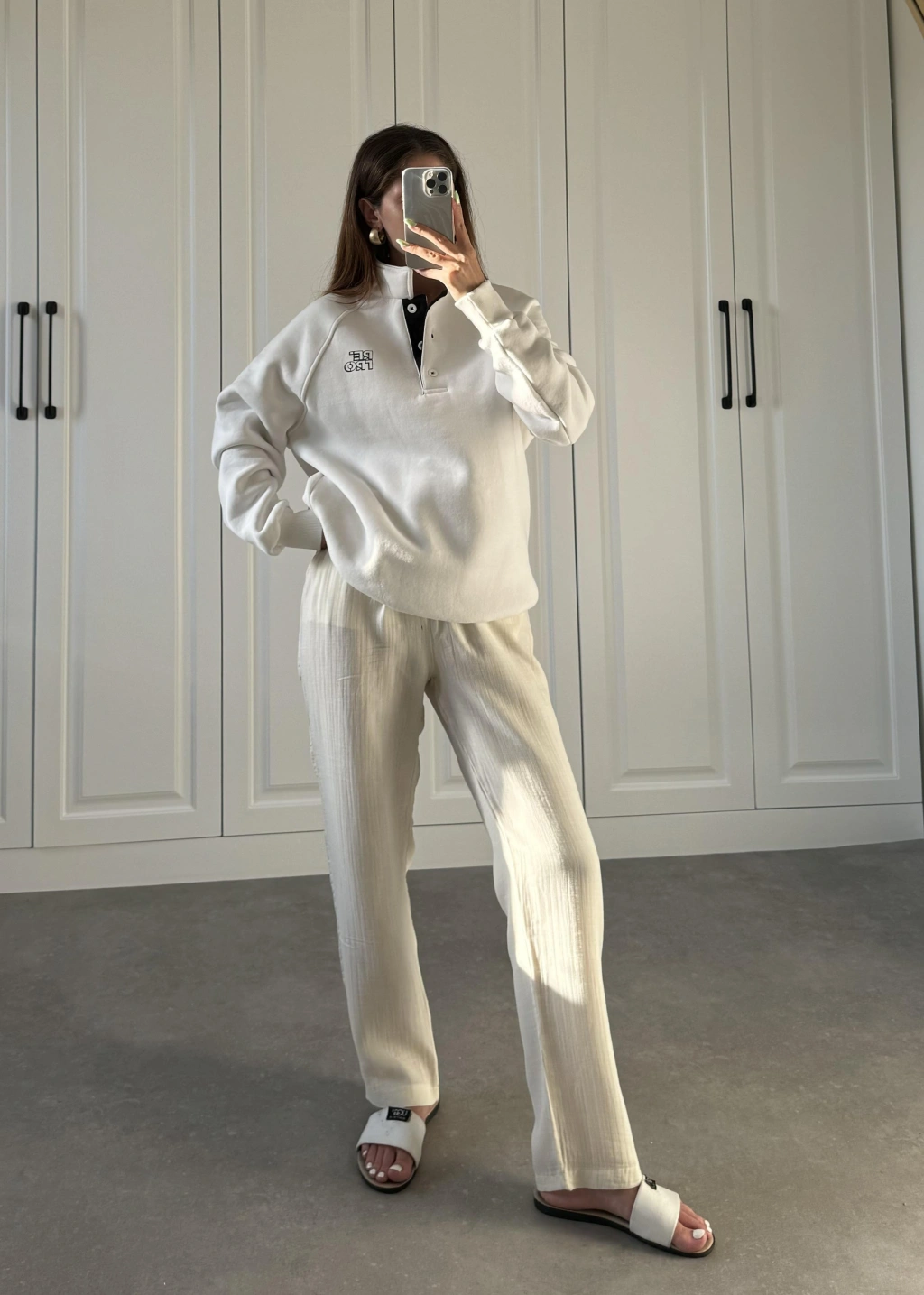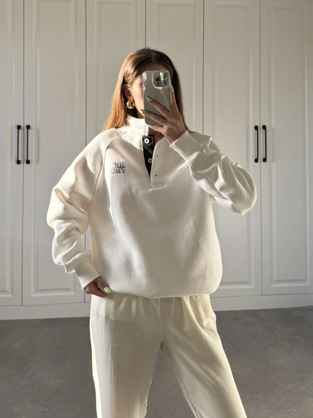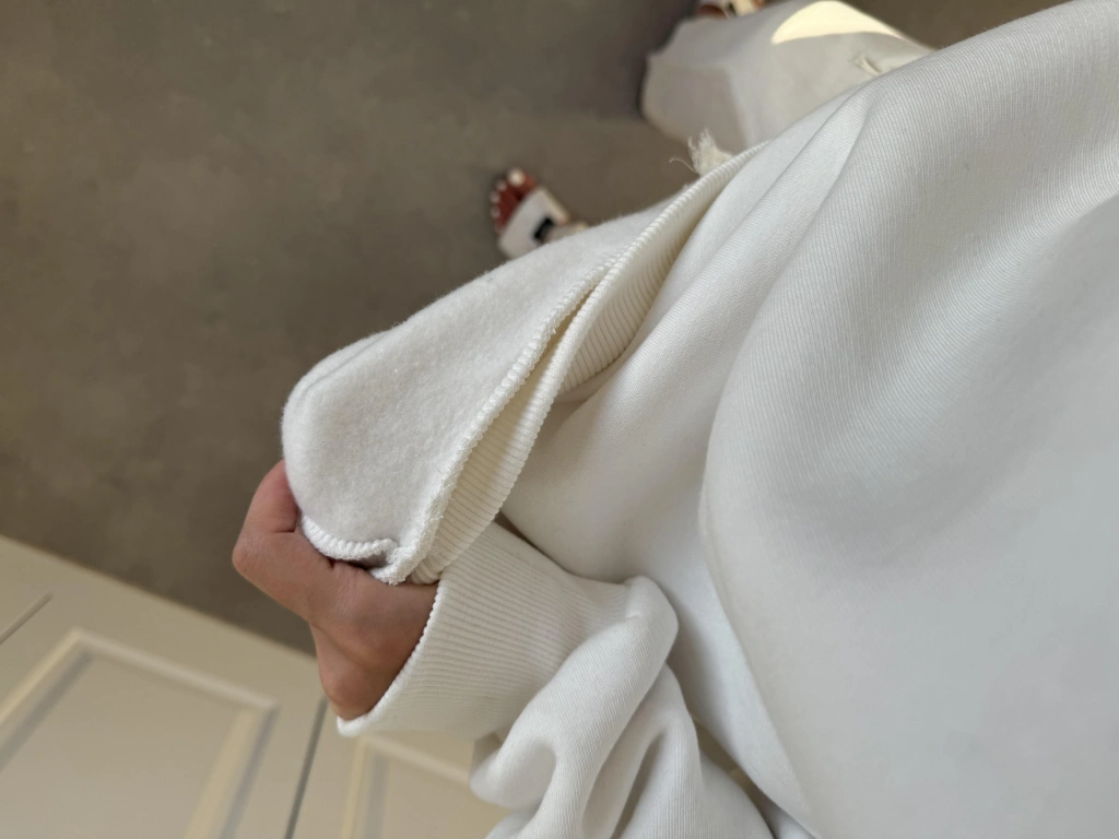 NycQ İçi Şardonlu Premium Beyaz Sweatshirt