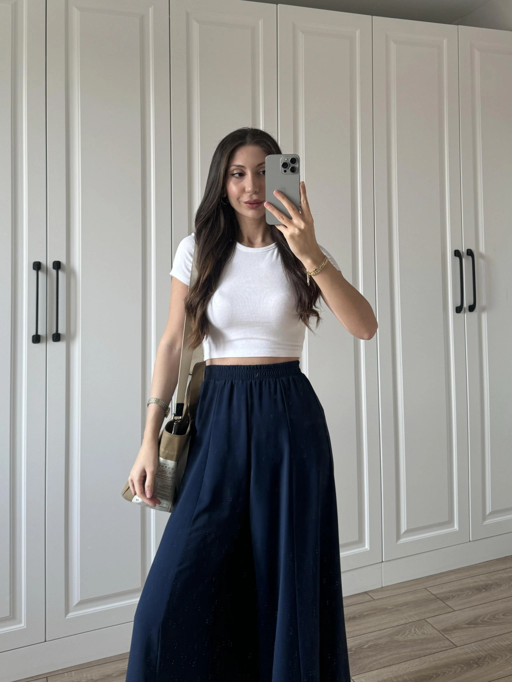 Bilek Boy Geniş Paça Lacivert Pantolon