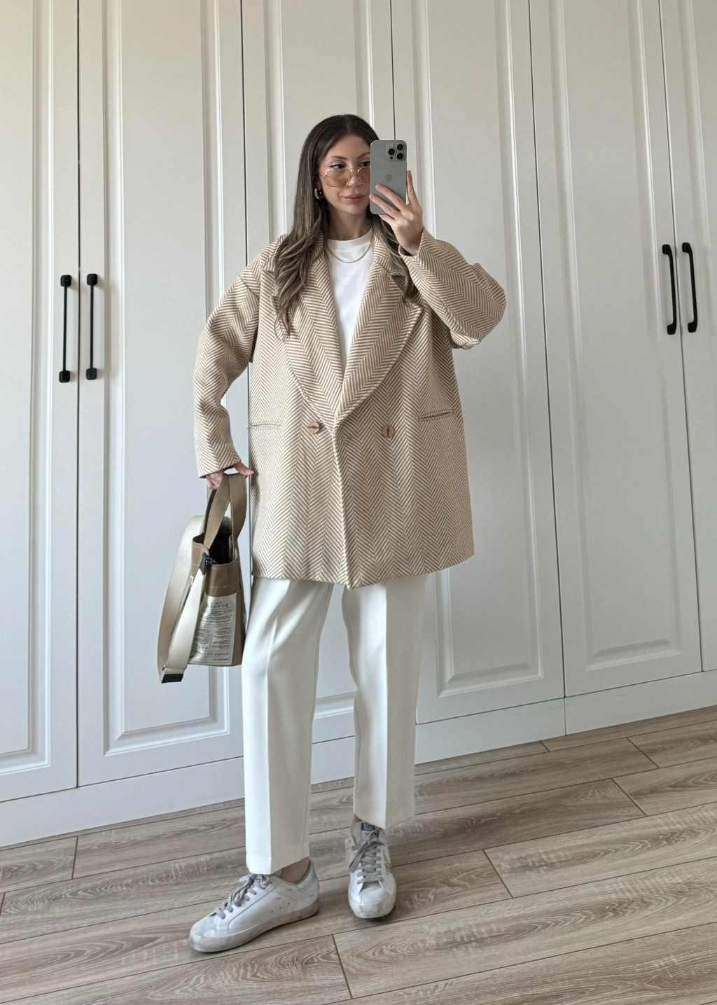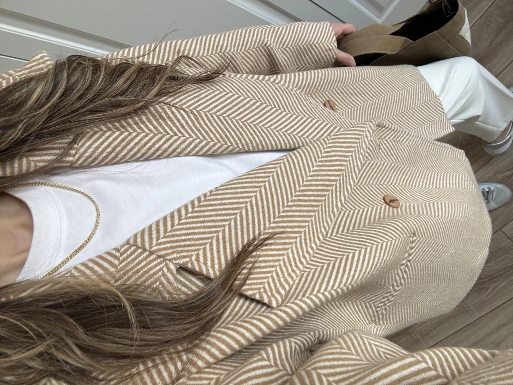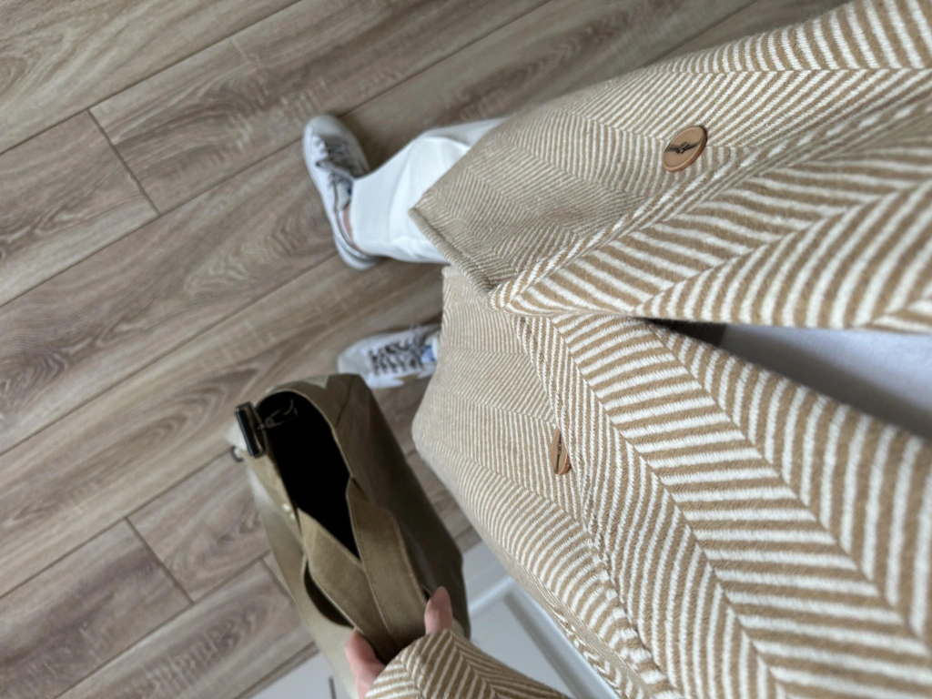 Camel Balıksırtı Desenli Kaşe Kaban