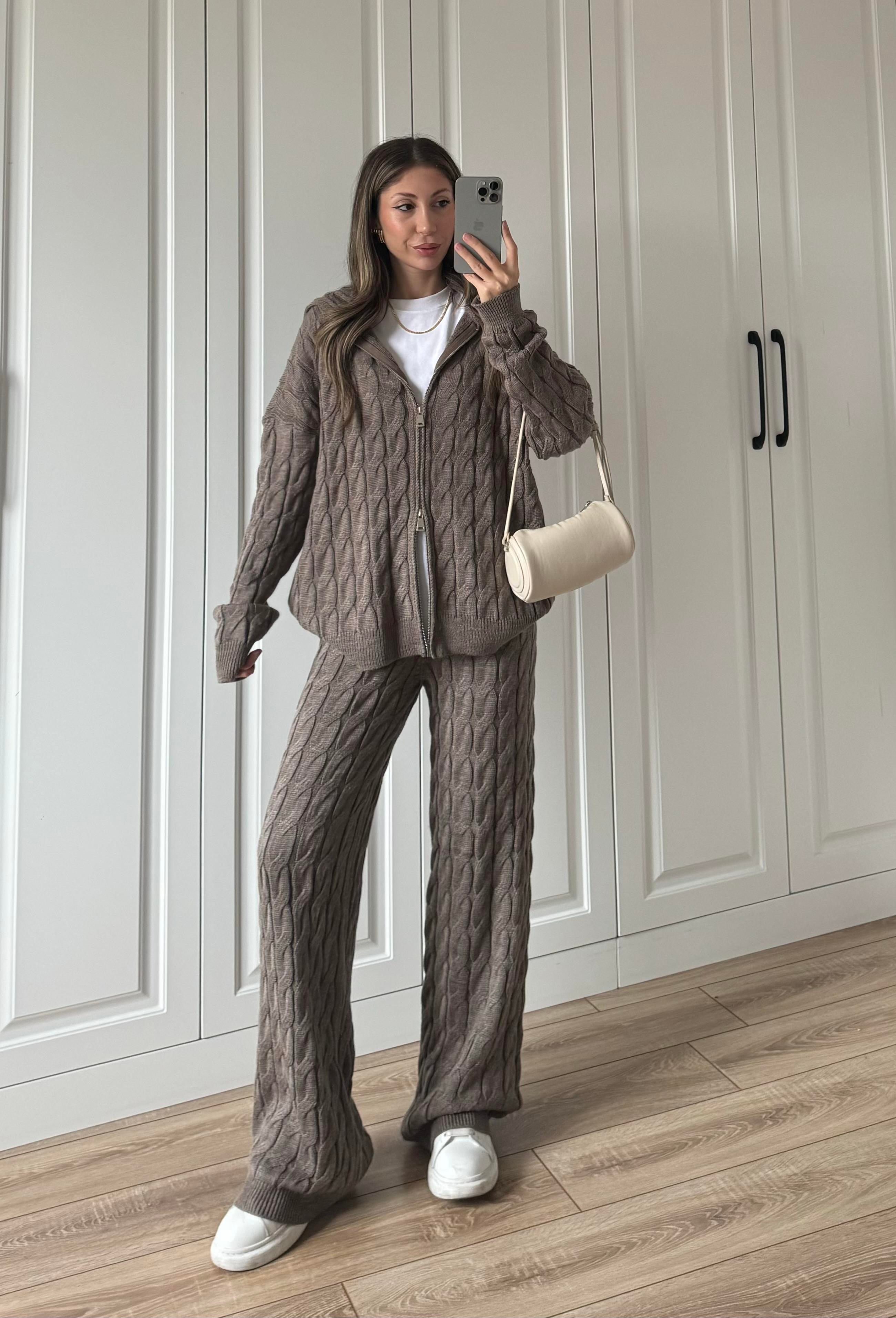 Çift Fermuarlı Cappuccino Örgü Triko Takım (ÖN SİPARİŞ 18 EKİM GÜNÜ KARGOLANACAKTIR.)