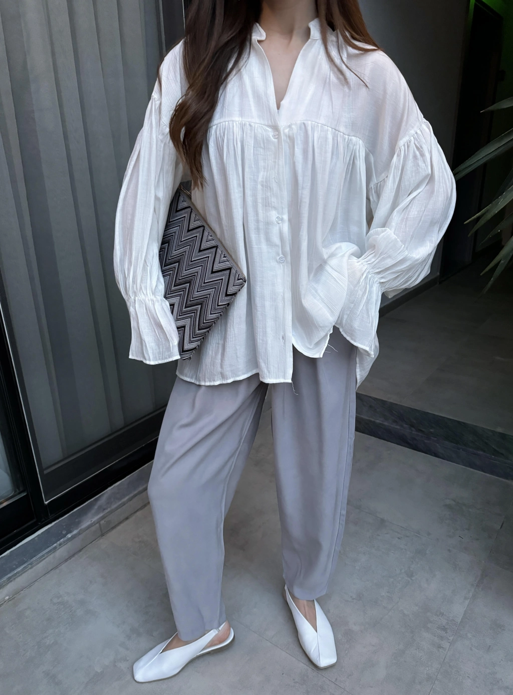 Stradi Model Keten Beyaz Palazzo Pantolon