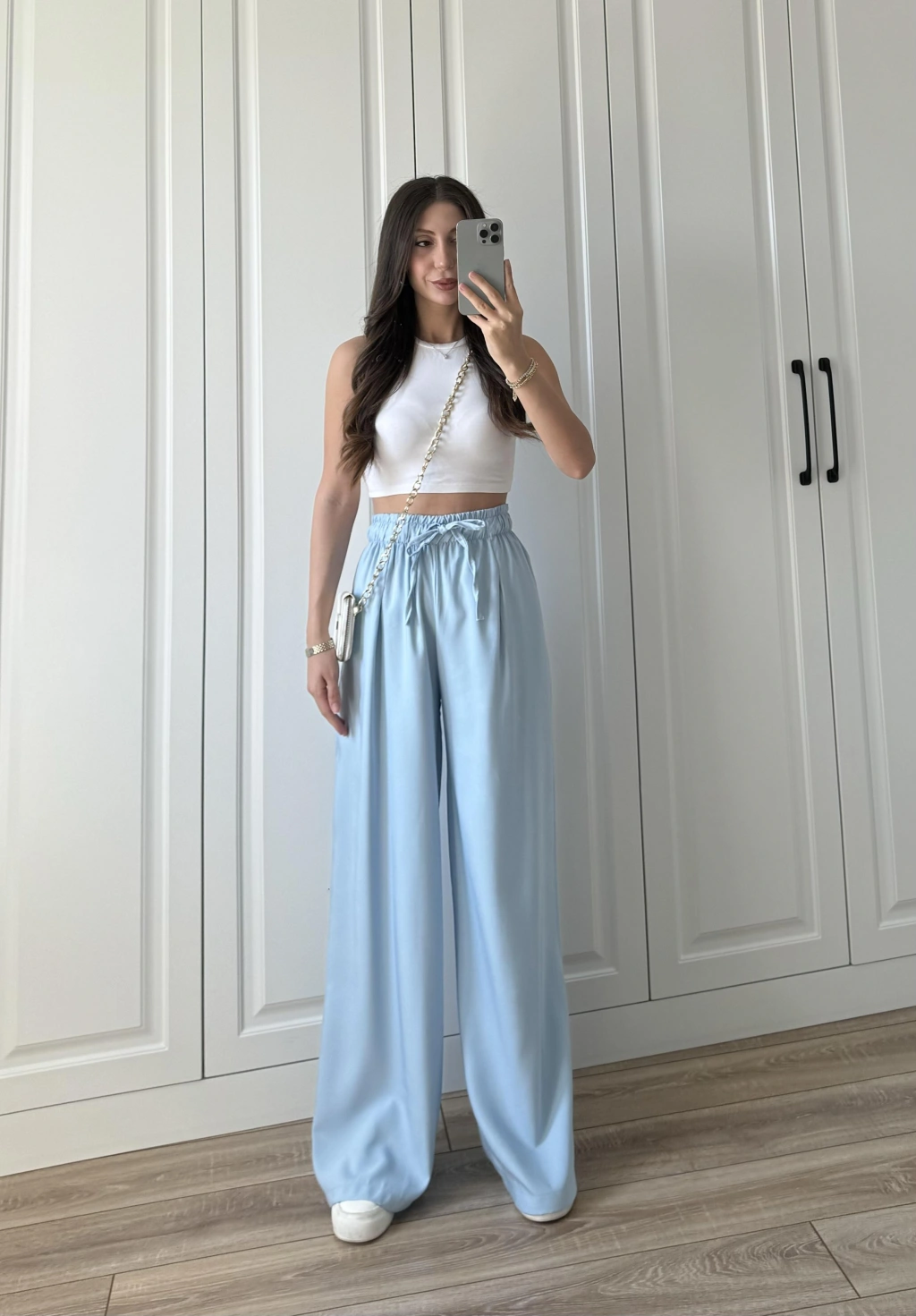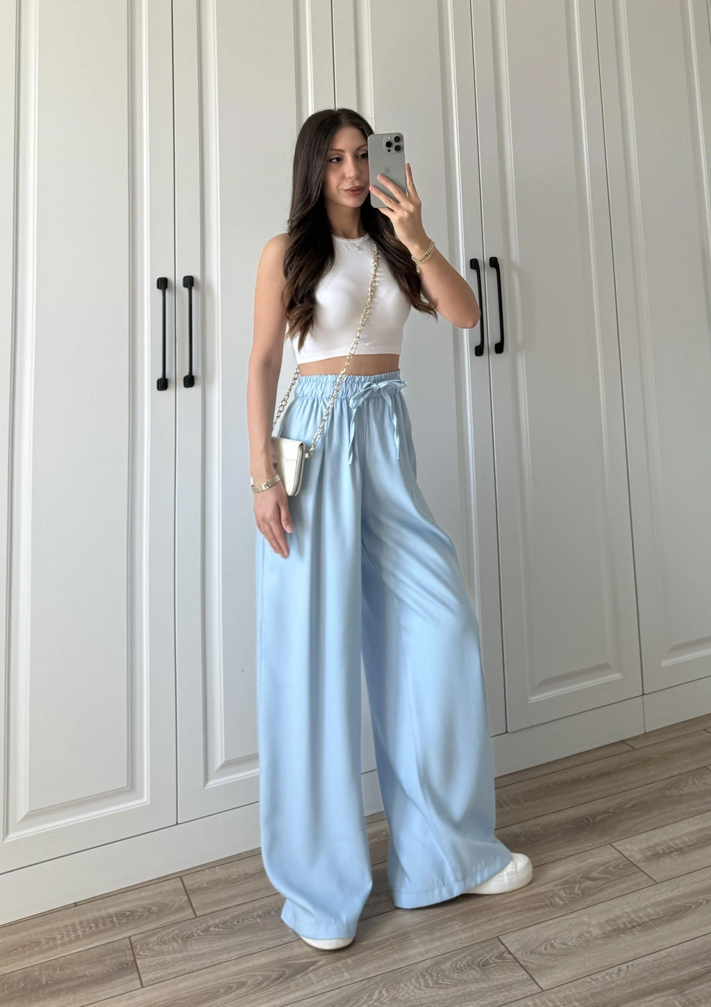 Dania Premium Bebe Mavi Tensel Palazzo Pantolon