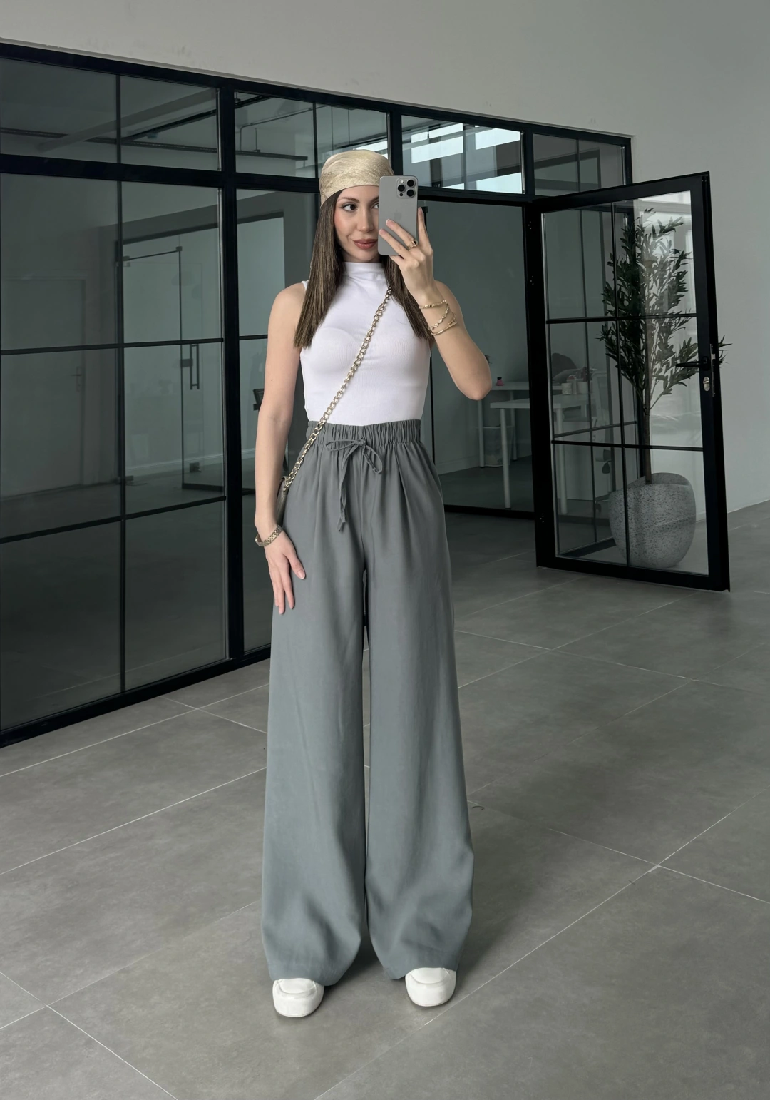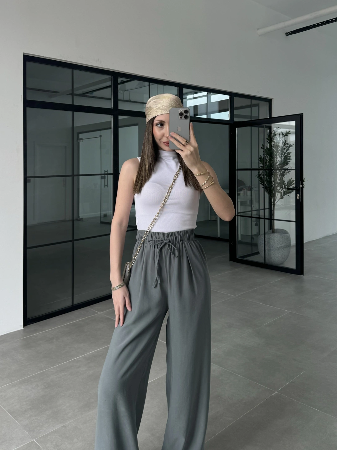 Dania Premium Beyaz Tensel Palazzo Pantolon