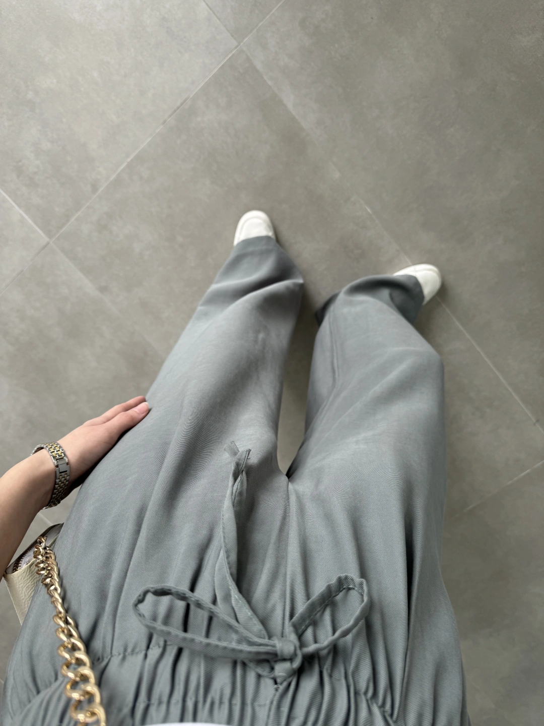 Beli Lastikli Antrasit Tensel Kırışık Etek