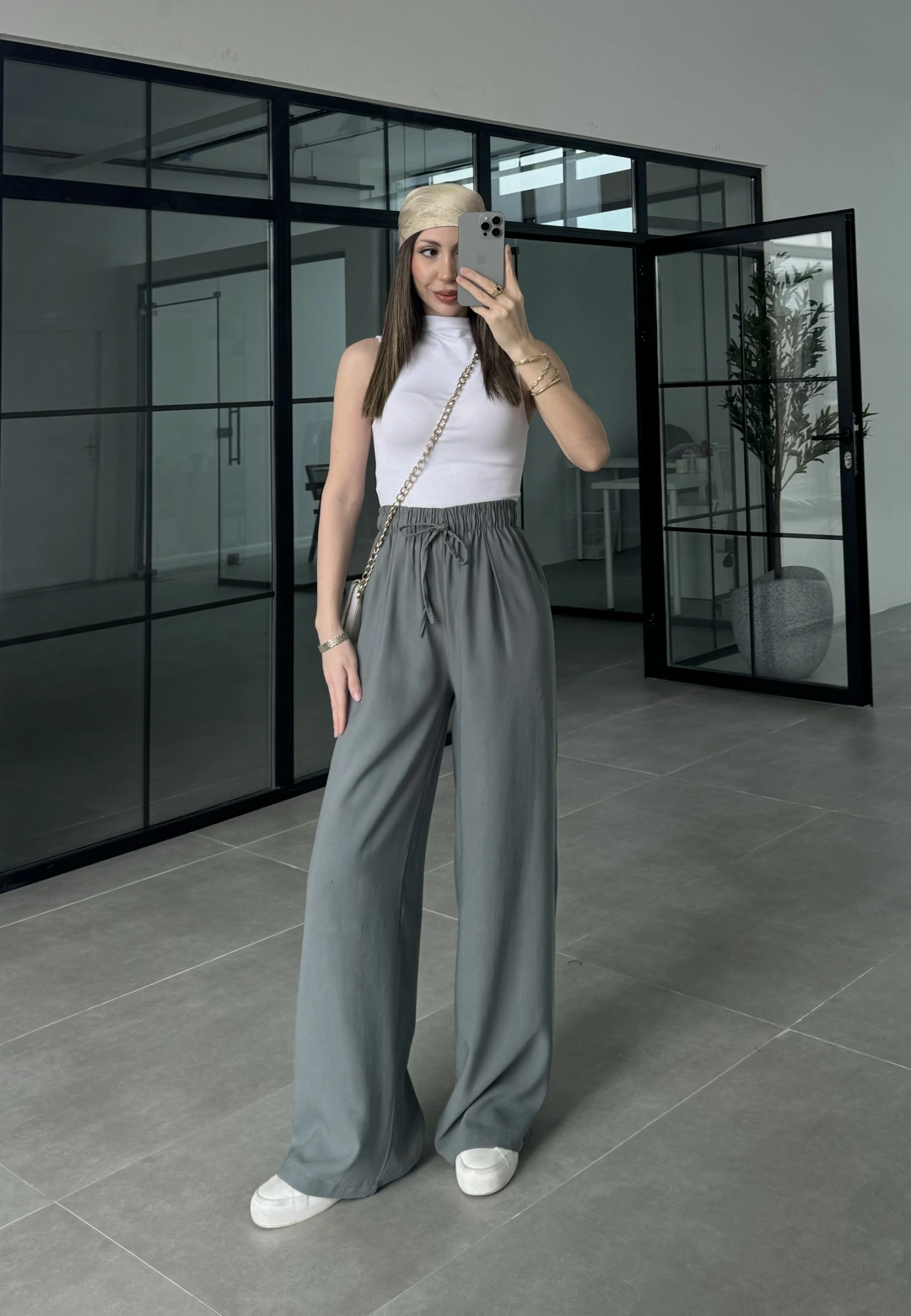 Dania Premium Siyah Tensel Palazzo Pantolon