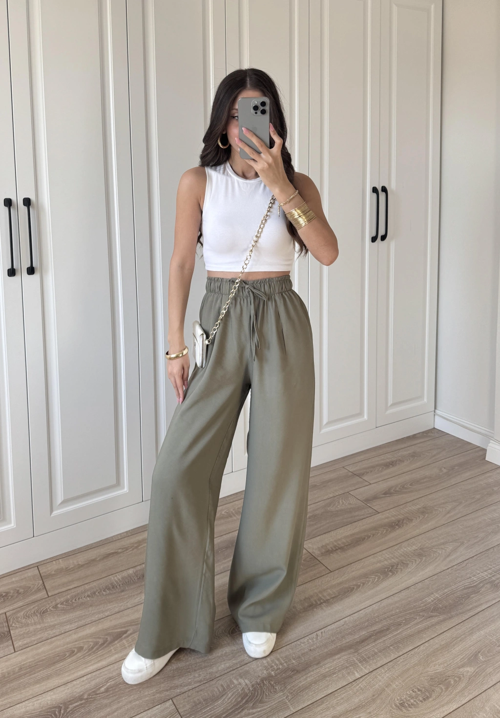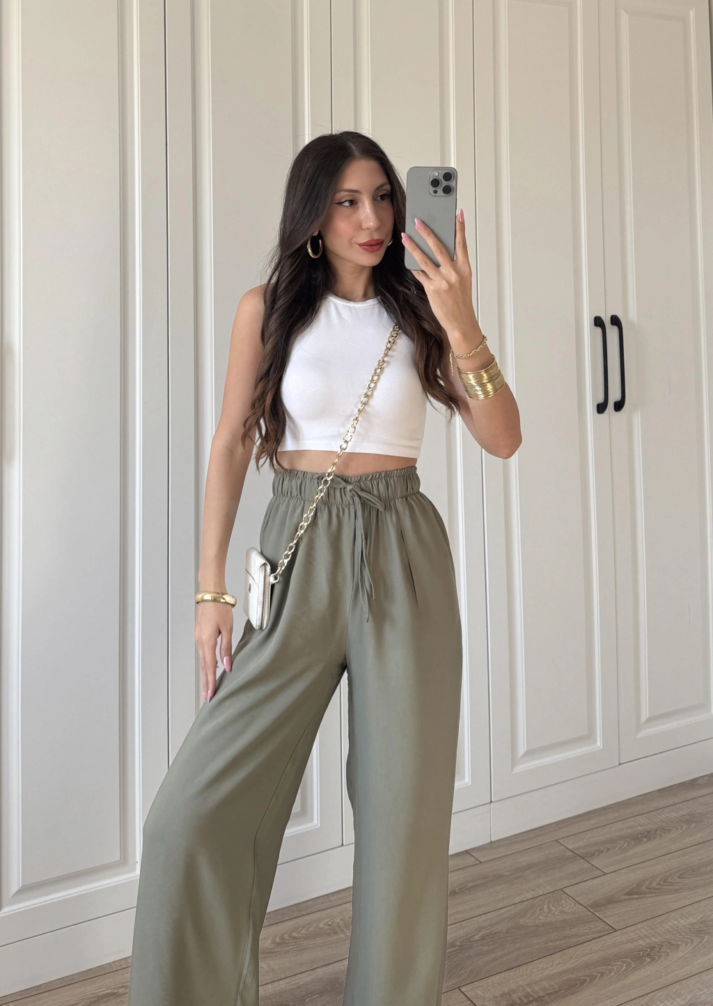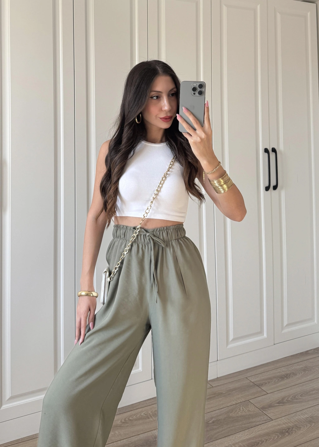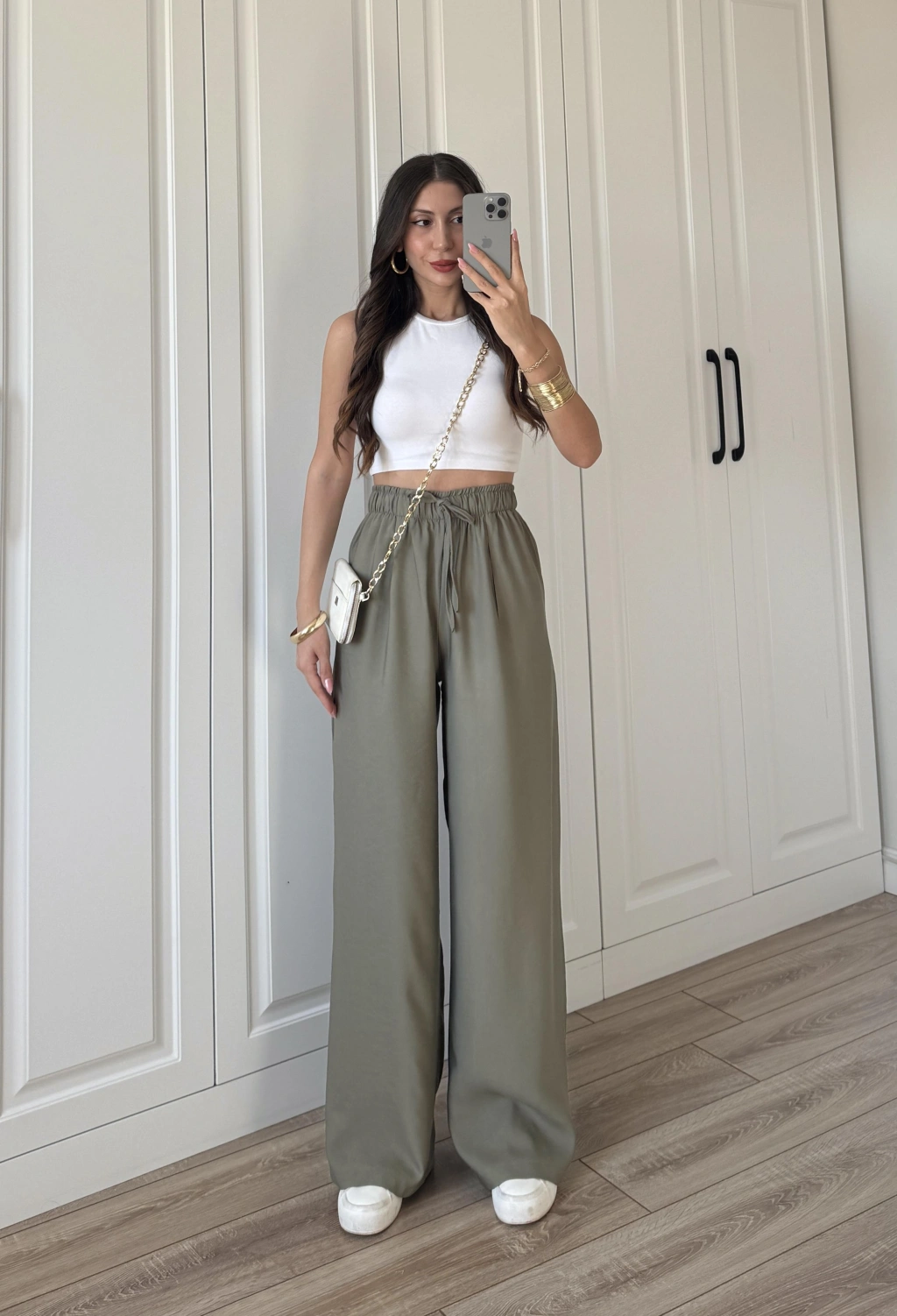 Bilek Boy Geniş Paça Mint Yeşili Pantolon