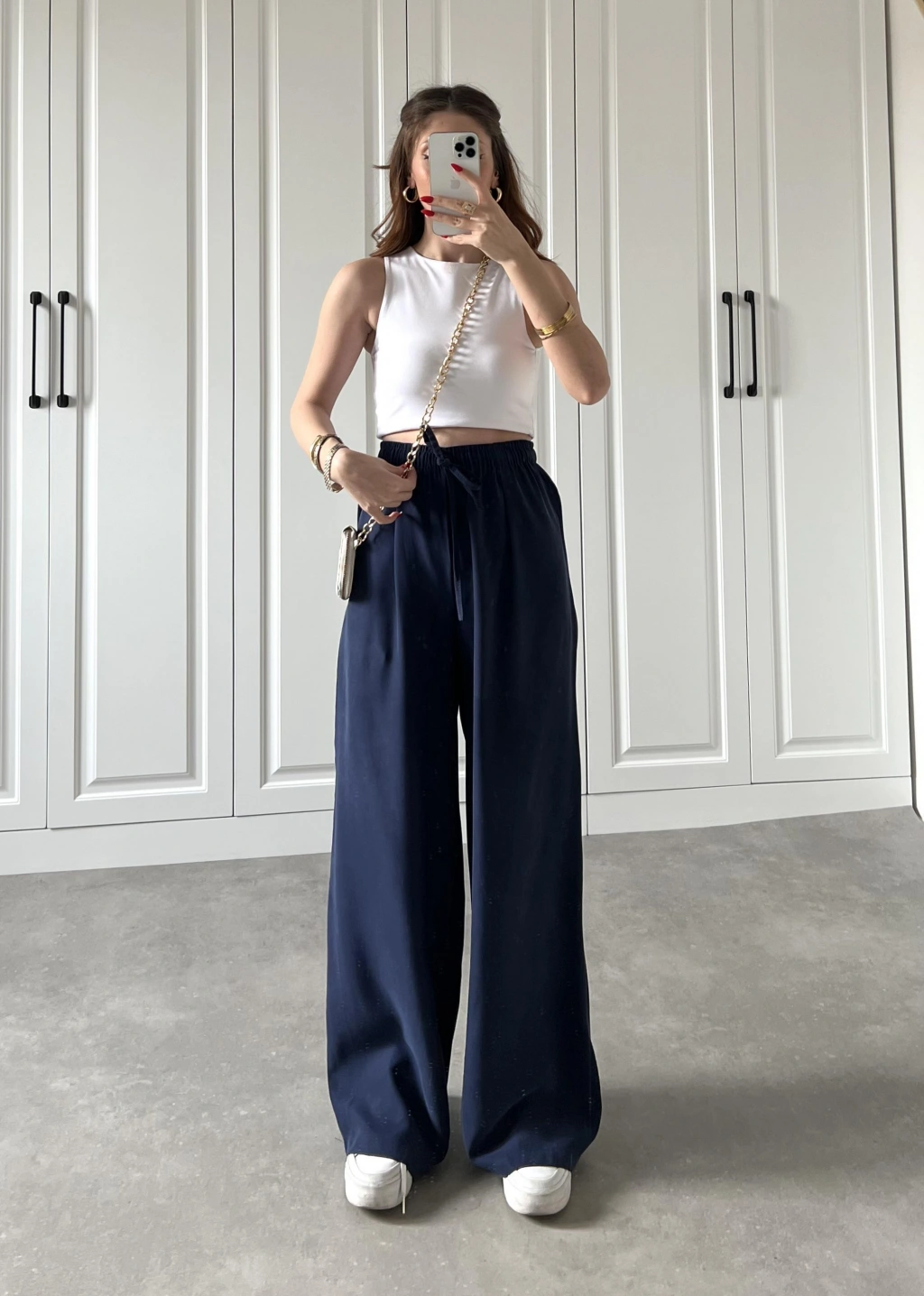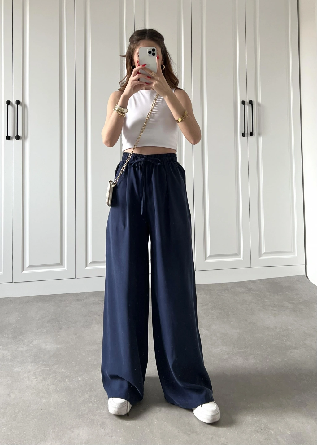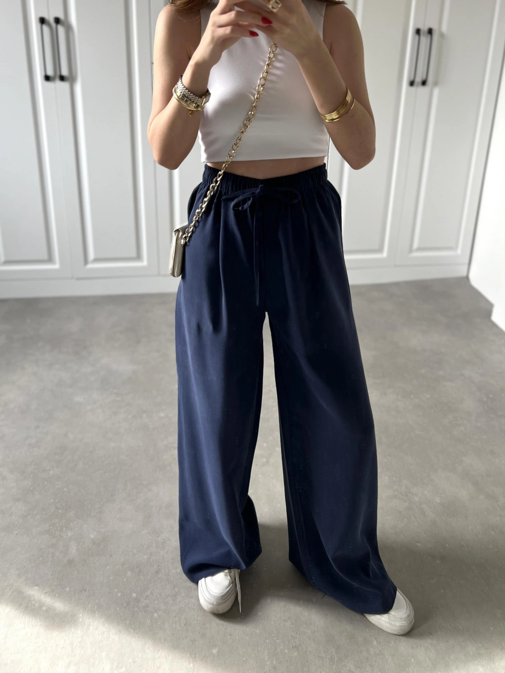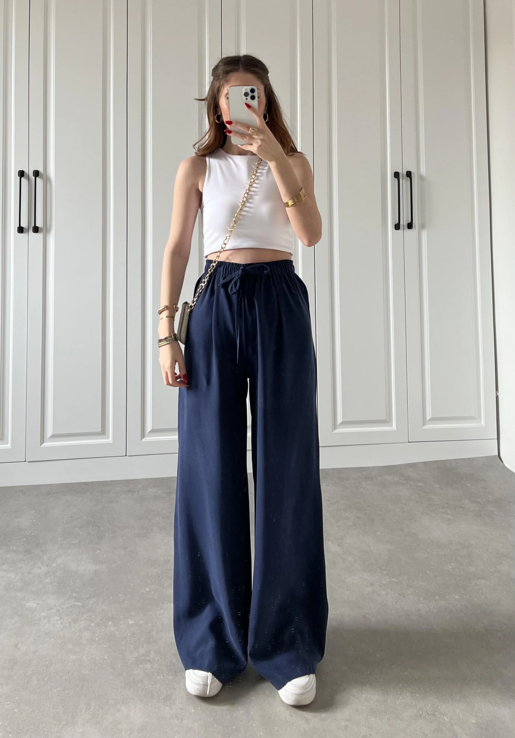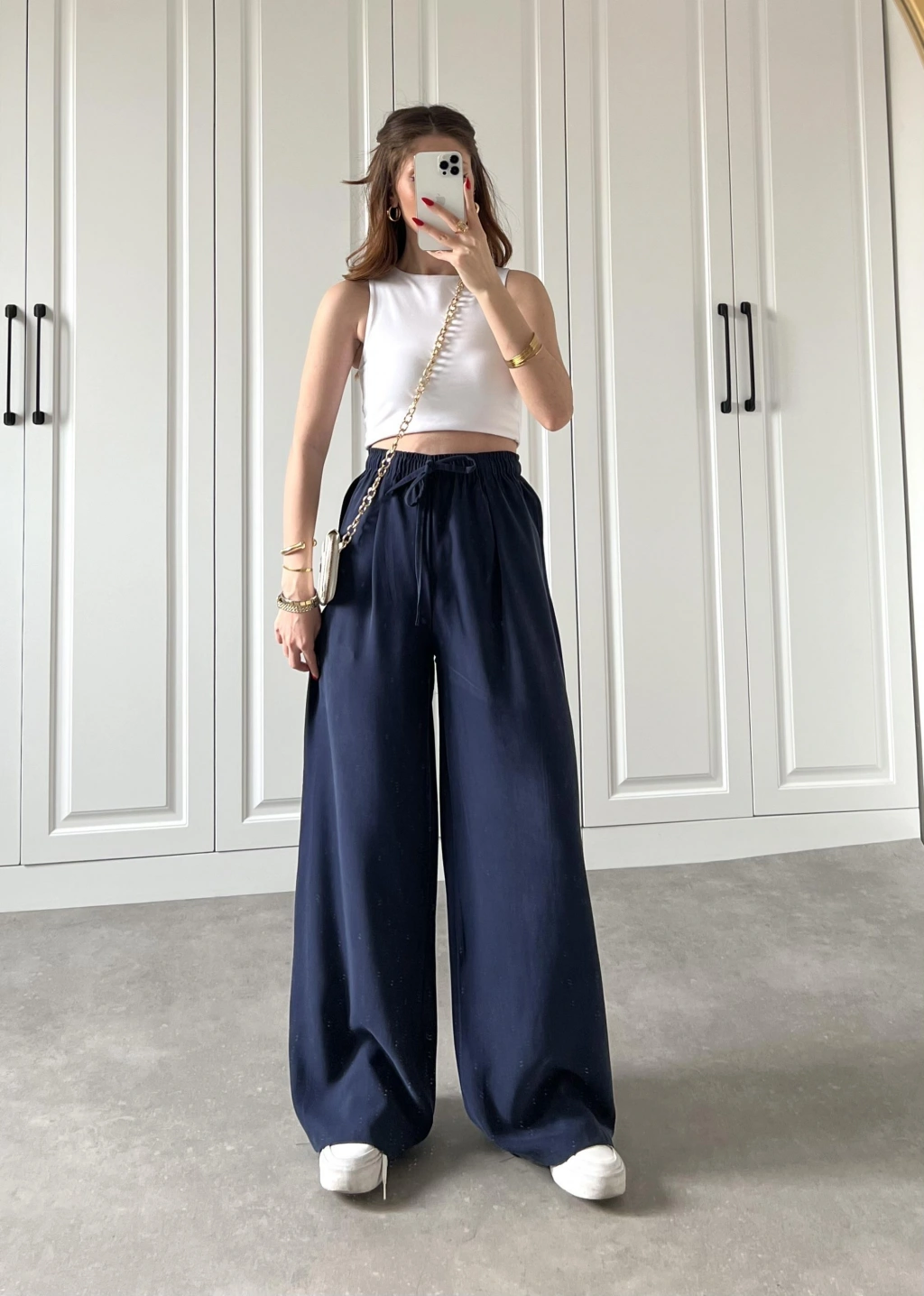Bilek Boy Geniş Paça Lacivert Pantolon