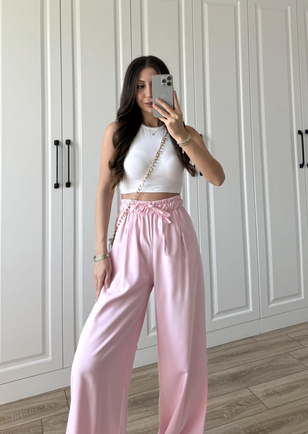 Dania Premium Pembe Tensel Palazzo Pantolon
