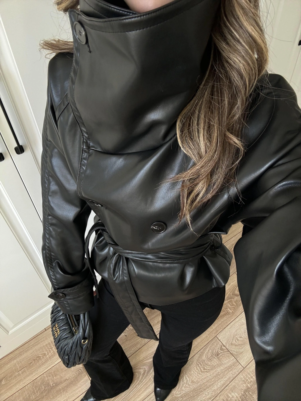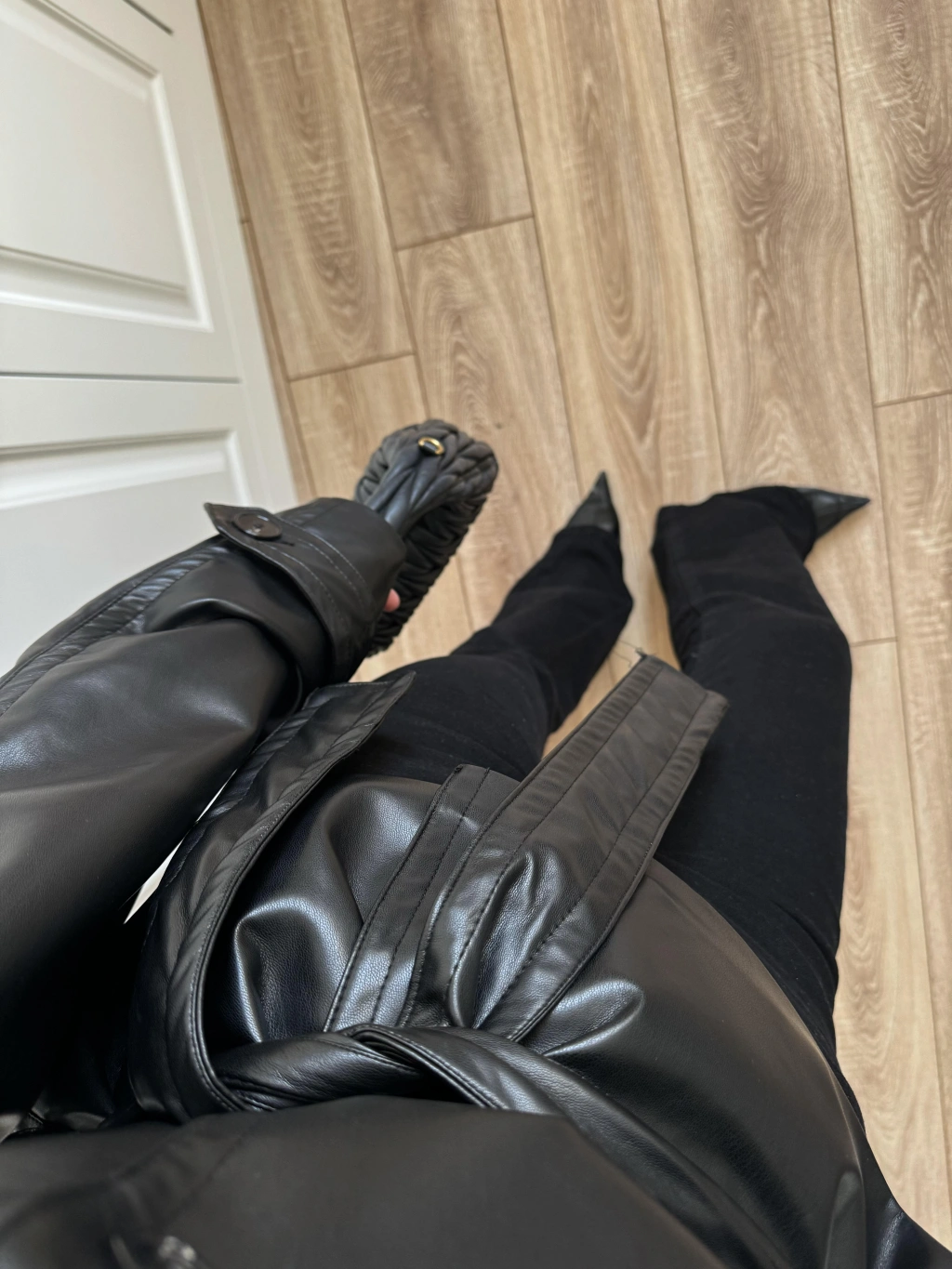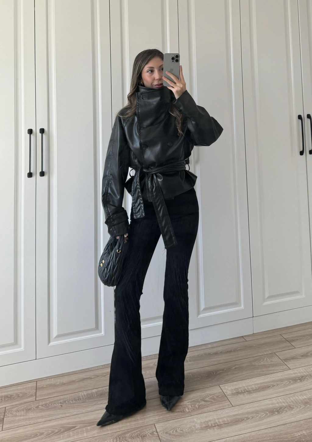 Dik Yaka Astarlı Premium Siyah Deri Ceket