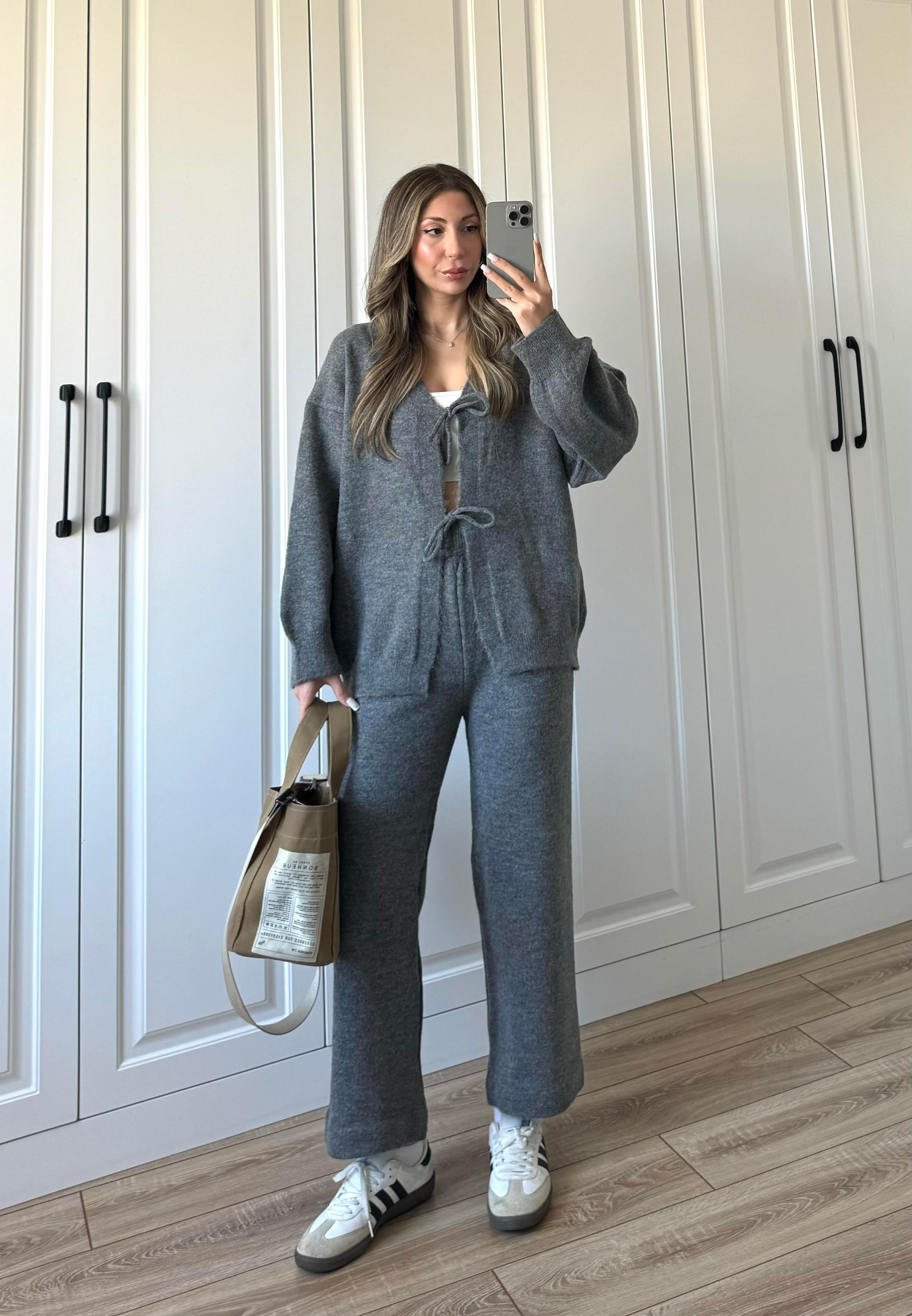 Esa Önü Bağlamalı Antrasit Triko Hırka Takım
