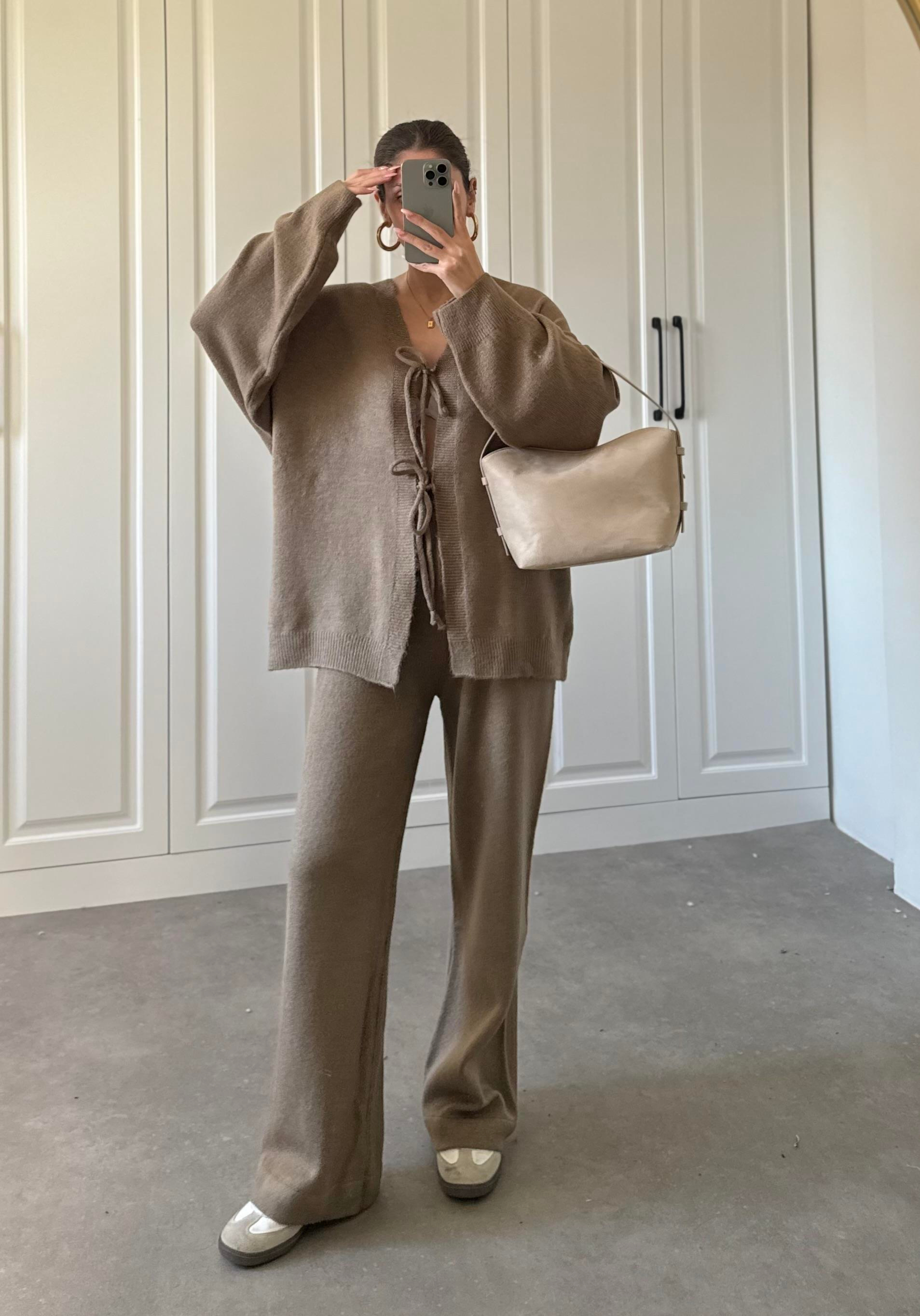 Esa Önü Bağlamalı Cappuccino Triko Hırka Takım