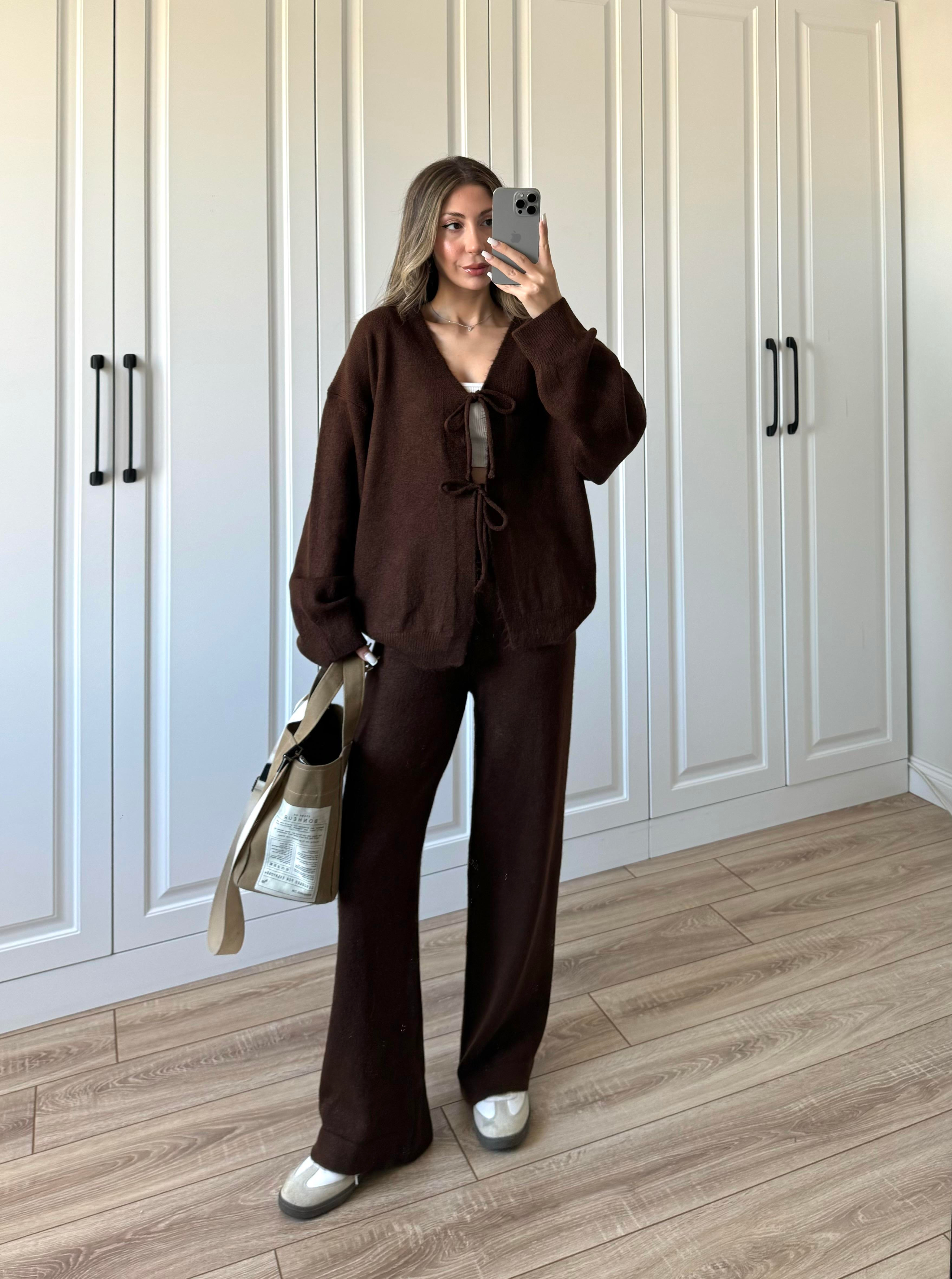 Esa Önü Bağlamalı Kahve Triko Hırka Takım
