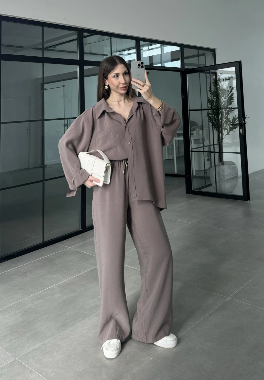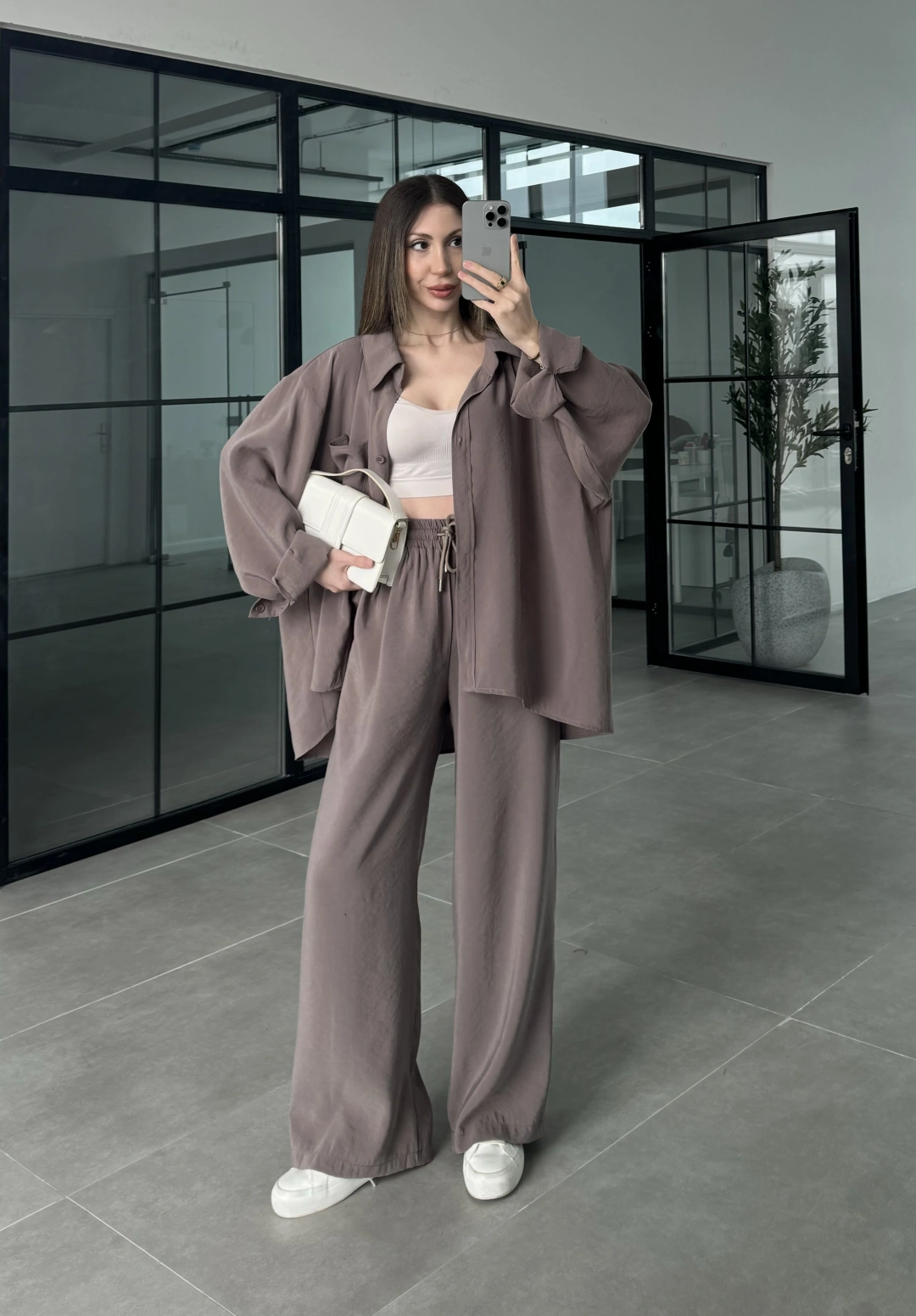 Fav Tensel Kumaş Oversize Vizon Palazzo Takım