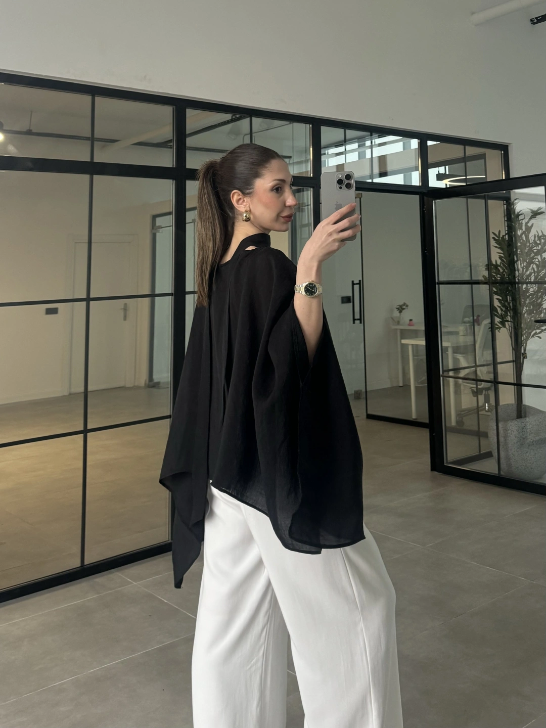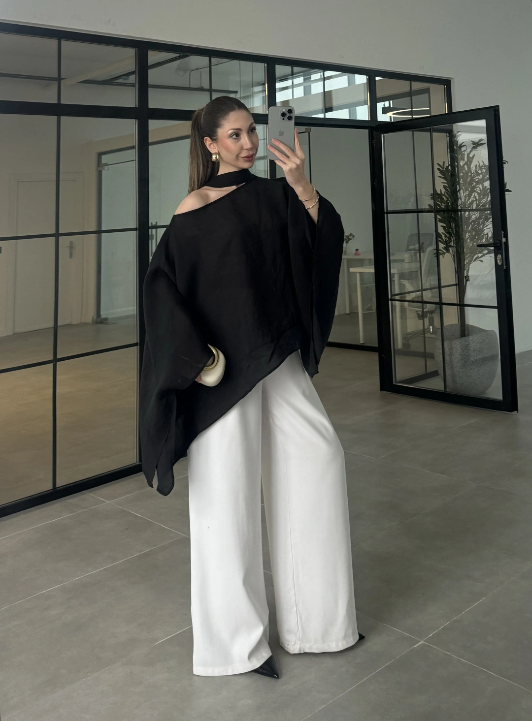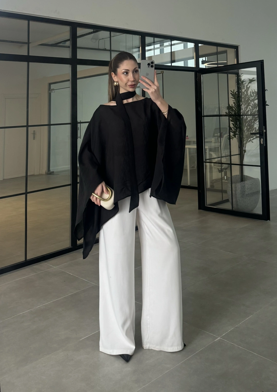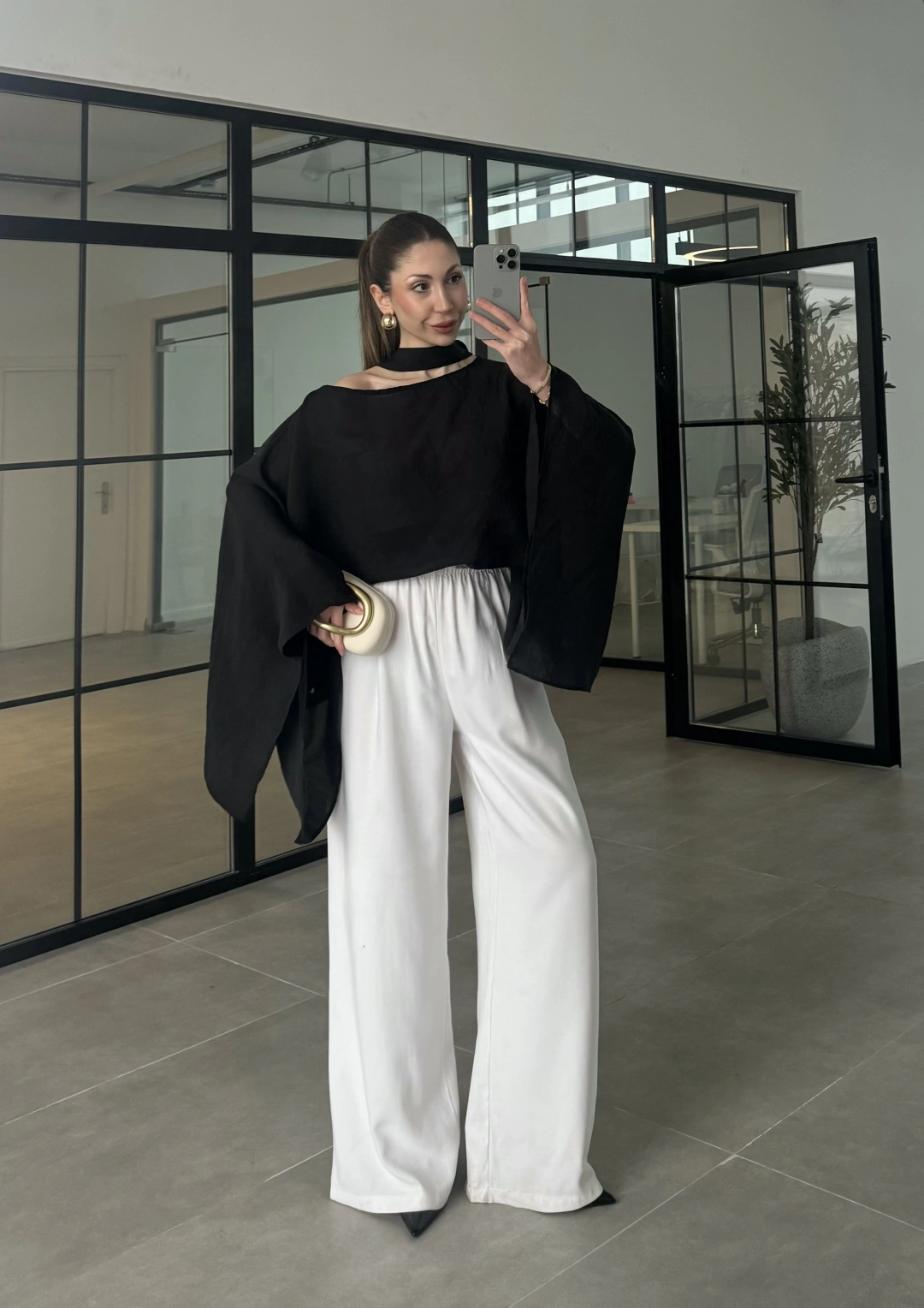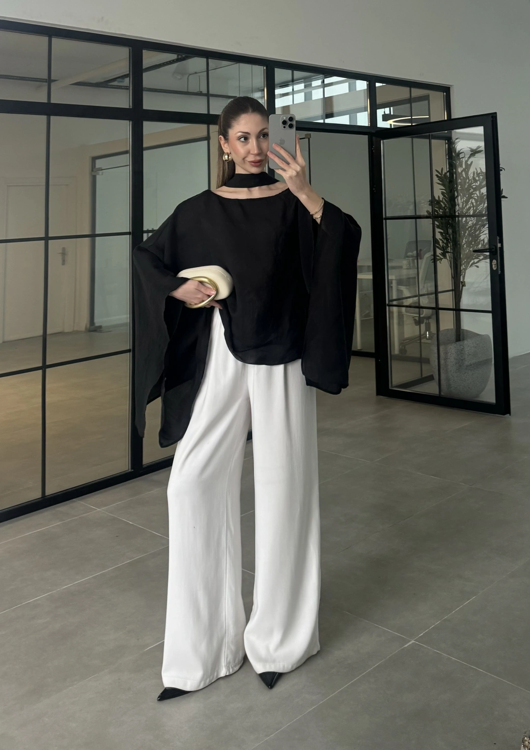 Pensli Nervür Dikişli Yüksekbel Siyah Kumaş Pantolon