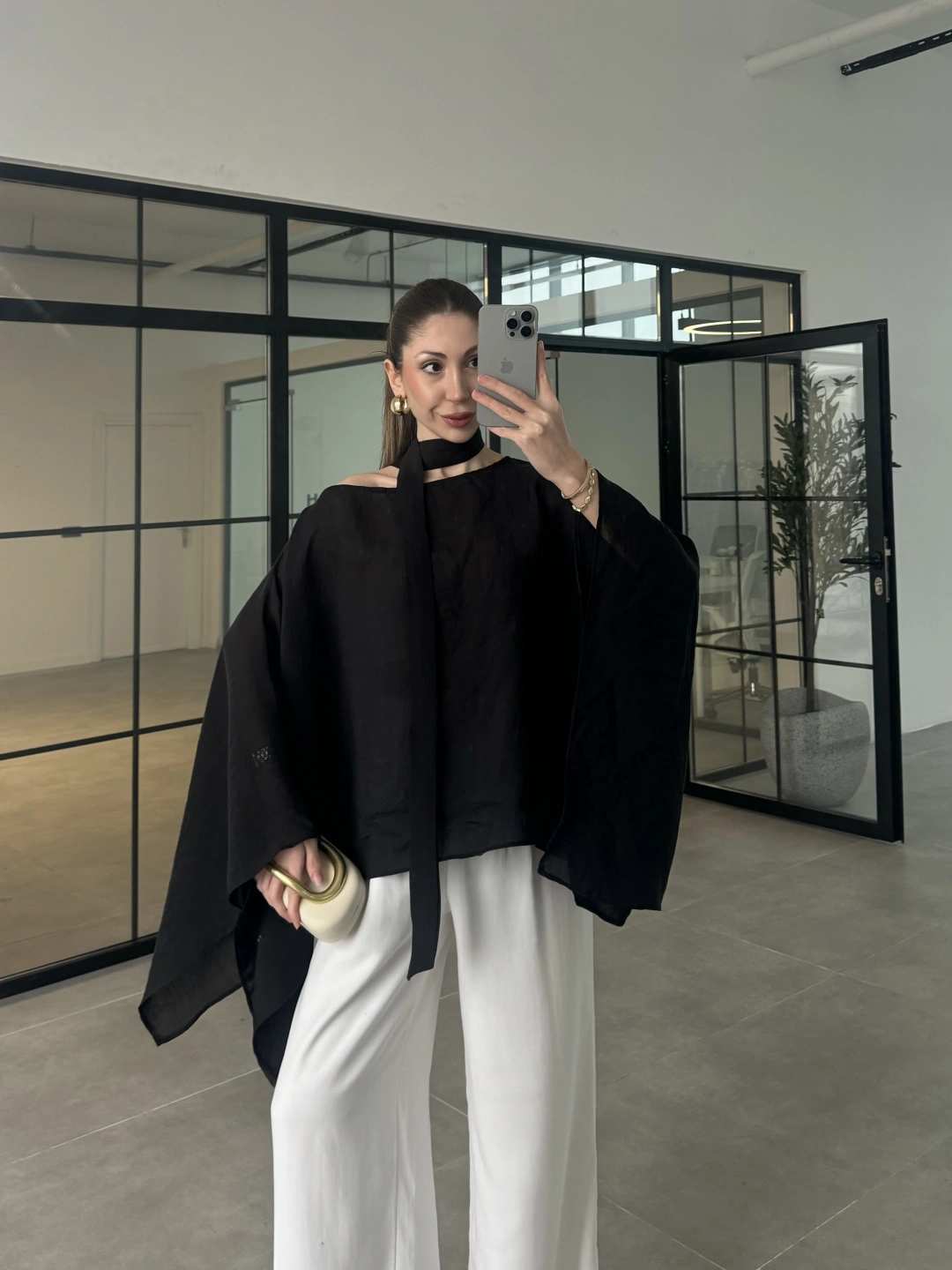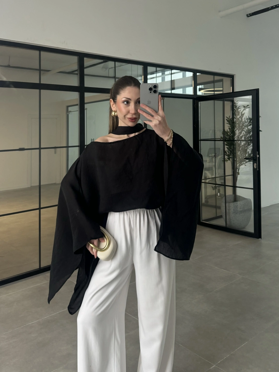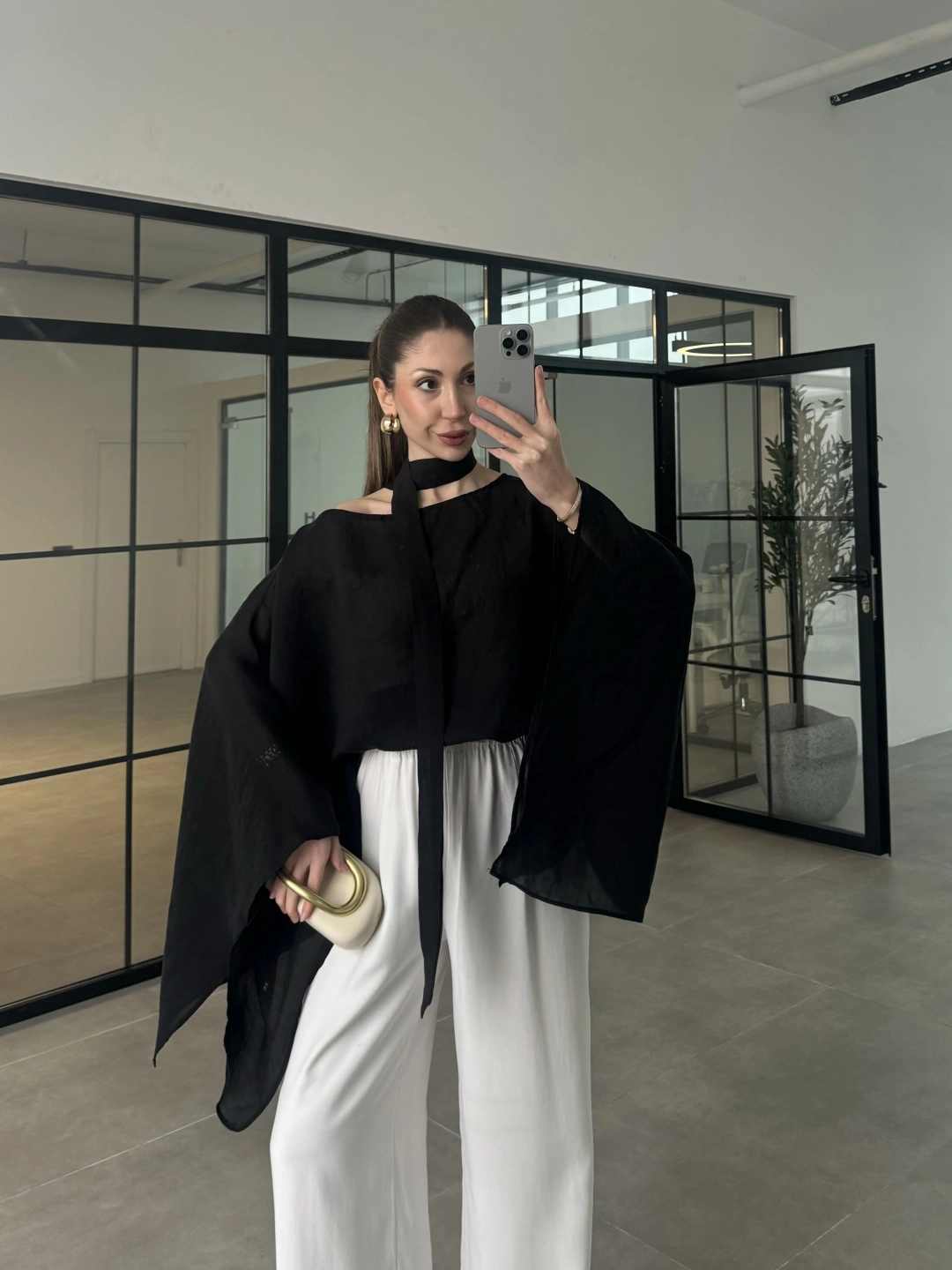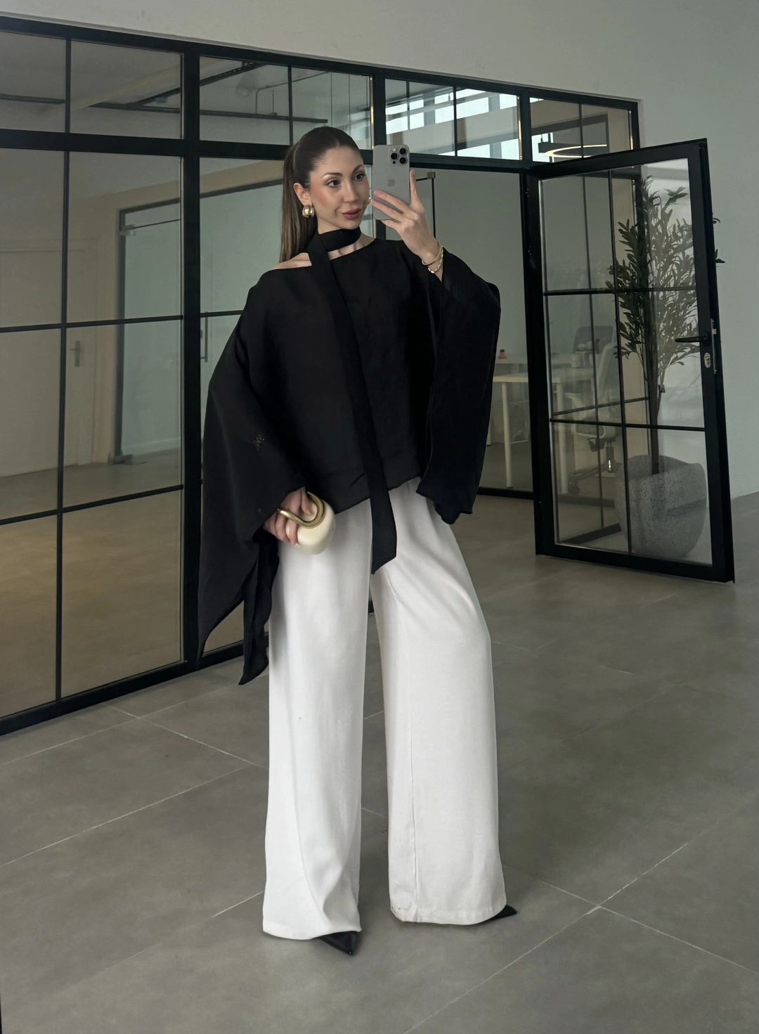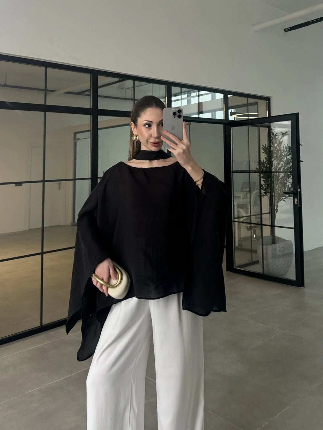 Pensli Nervür Dikişli Yüksekbel Siyah Kumaş Pantolon