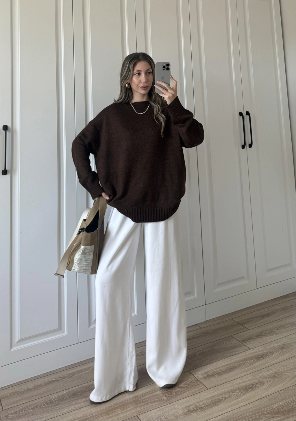 Golden Oversize Kahve Triko Kazak