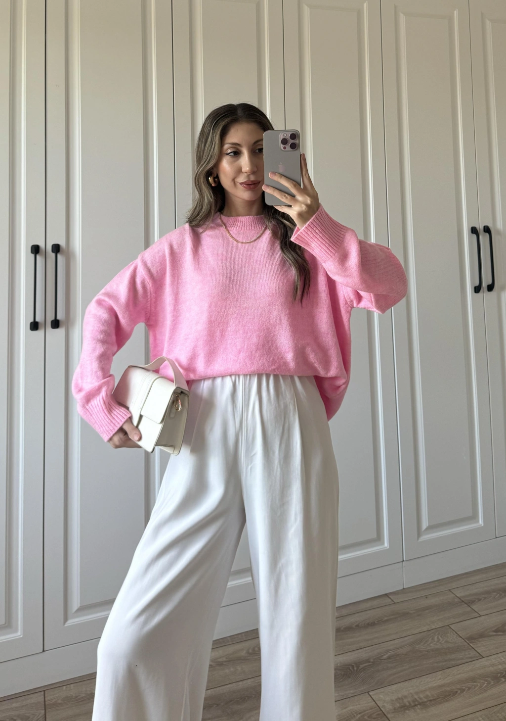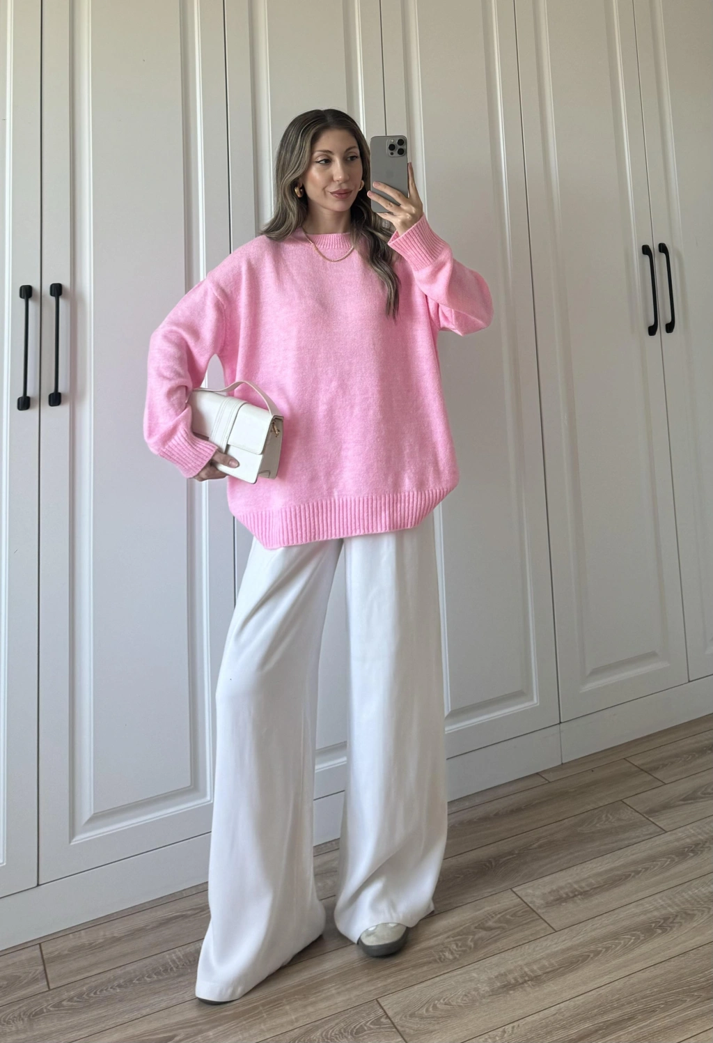Golden Oversize Pembe Triko Kazak