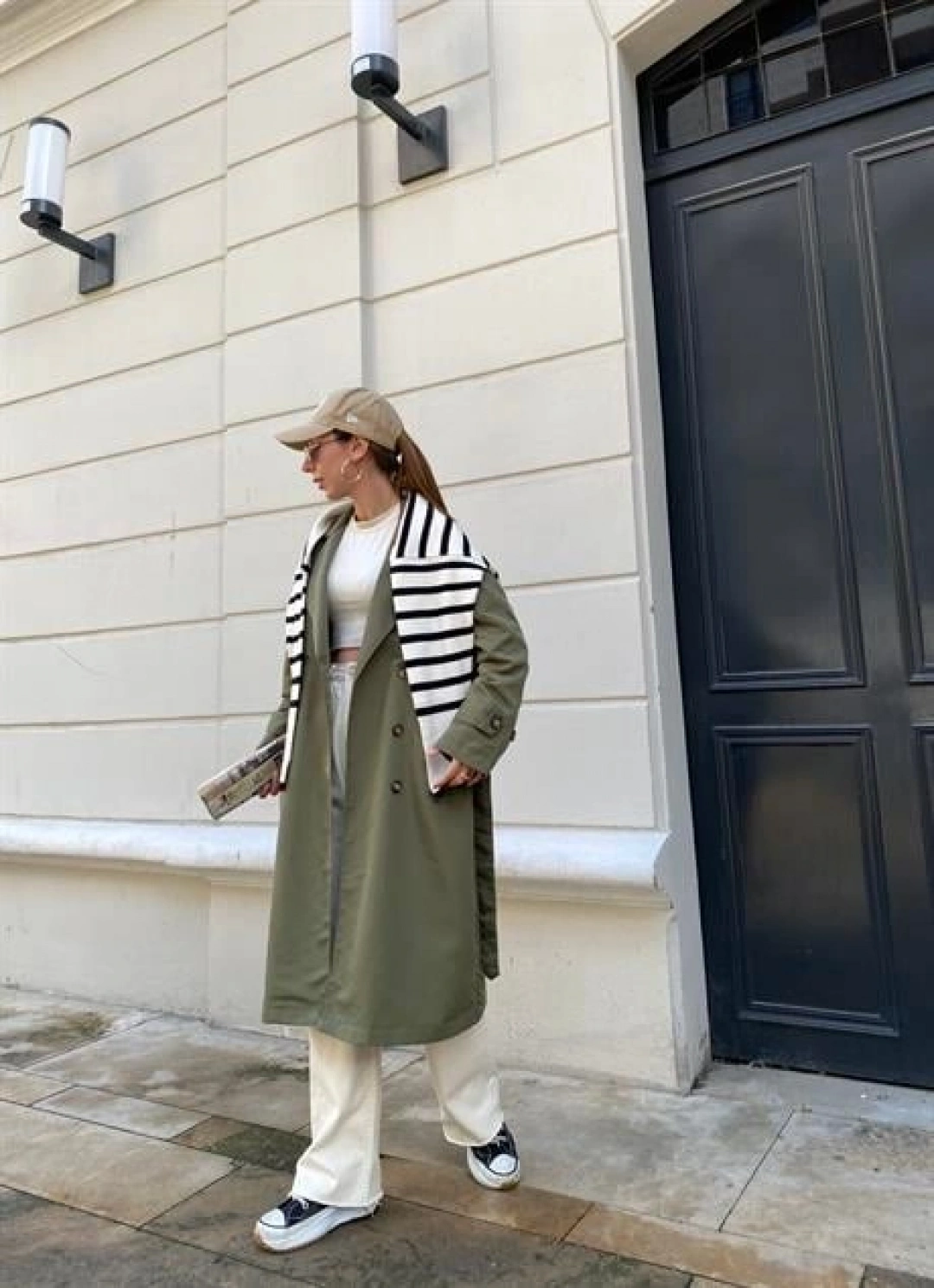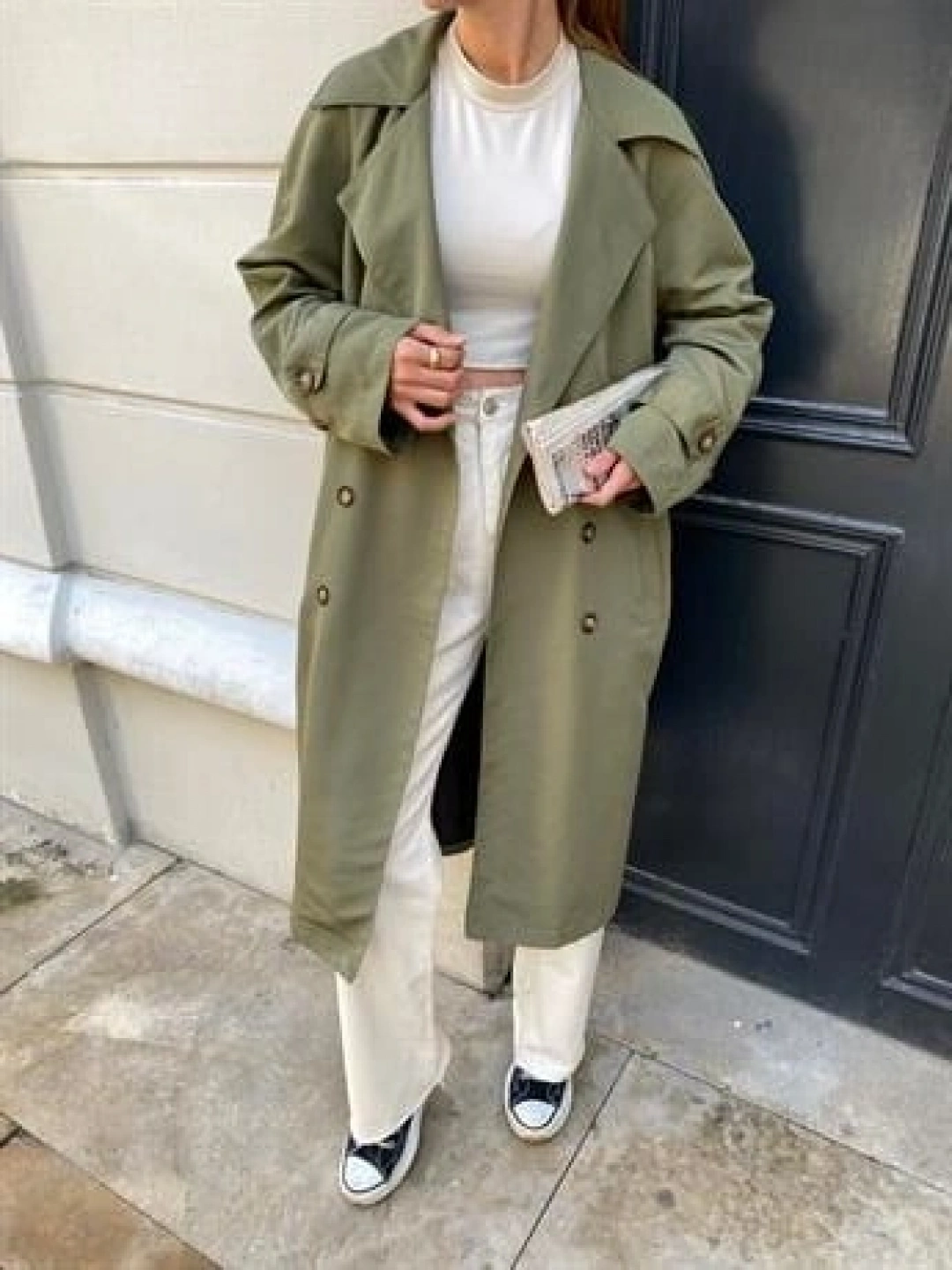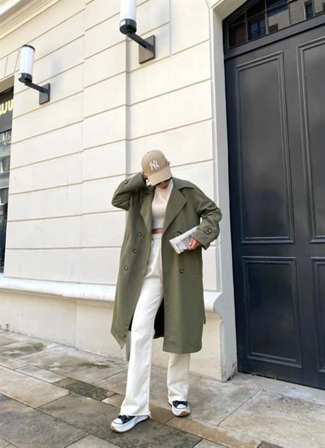Haki Bershka Model Premium Oversize Trençkot