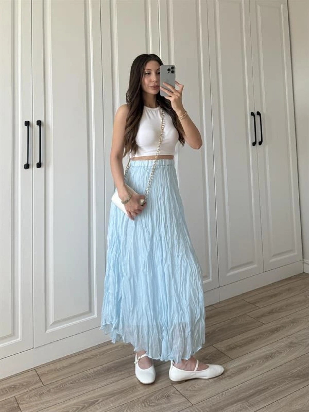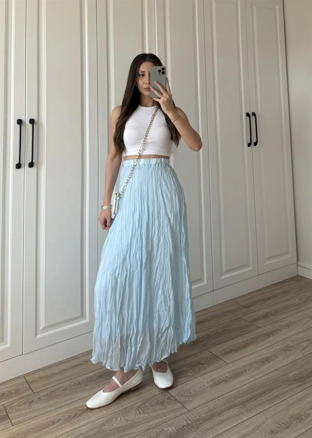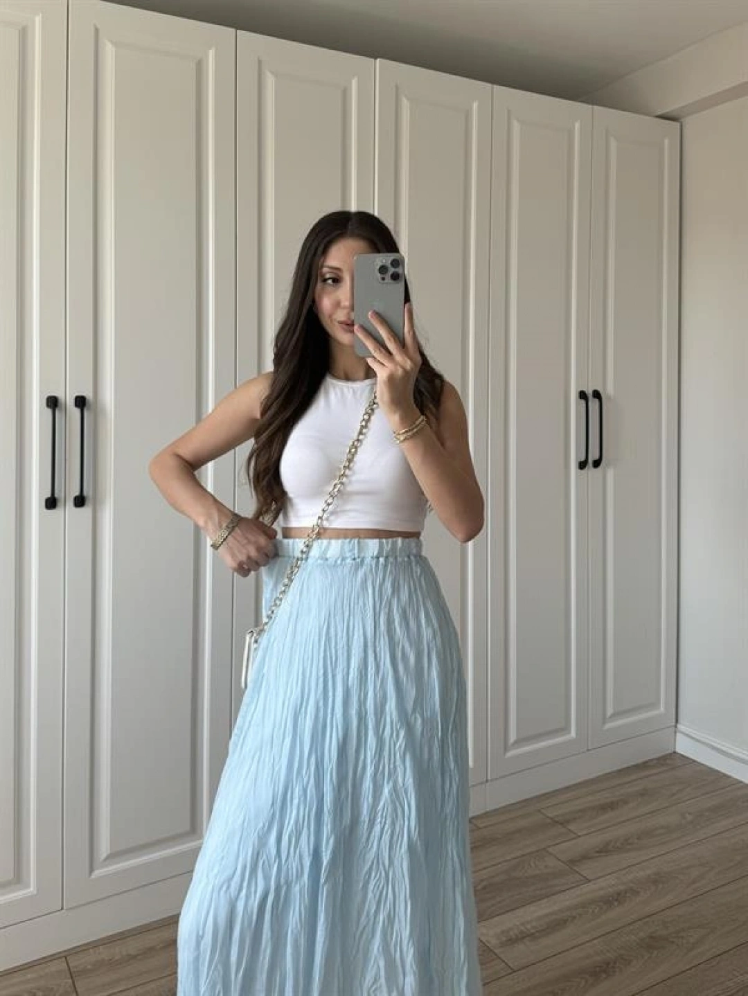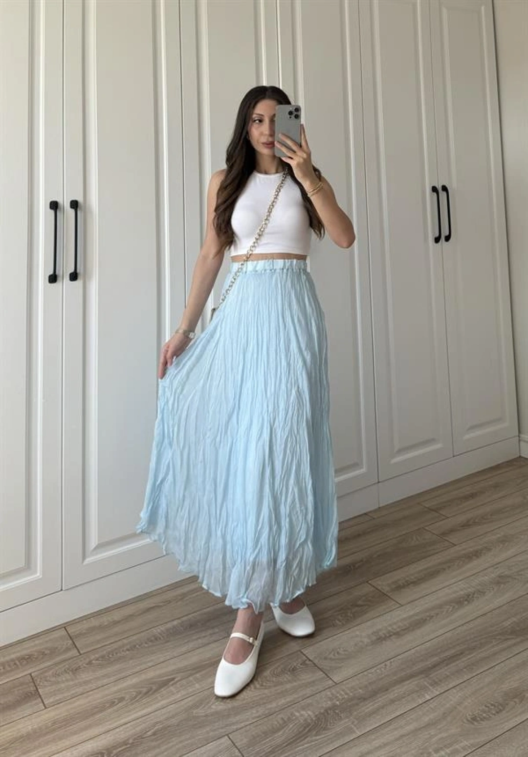 Holla Astarlı Kırışık Bebe Mavi Tül Etek