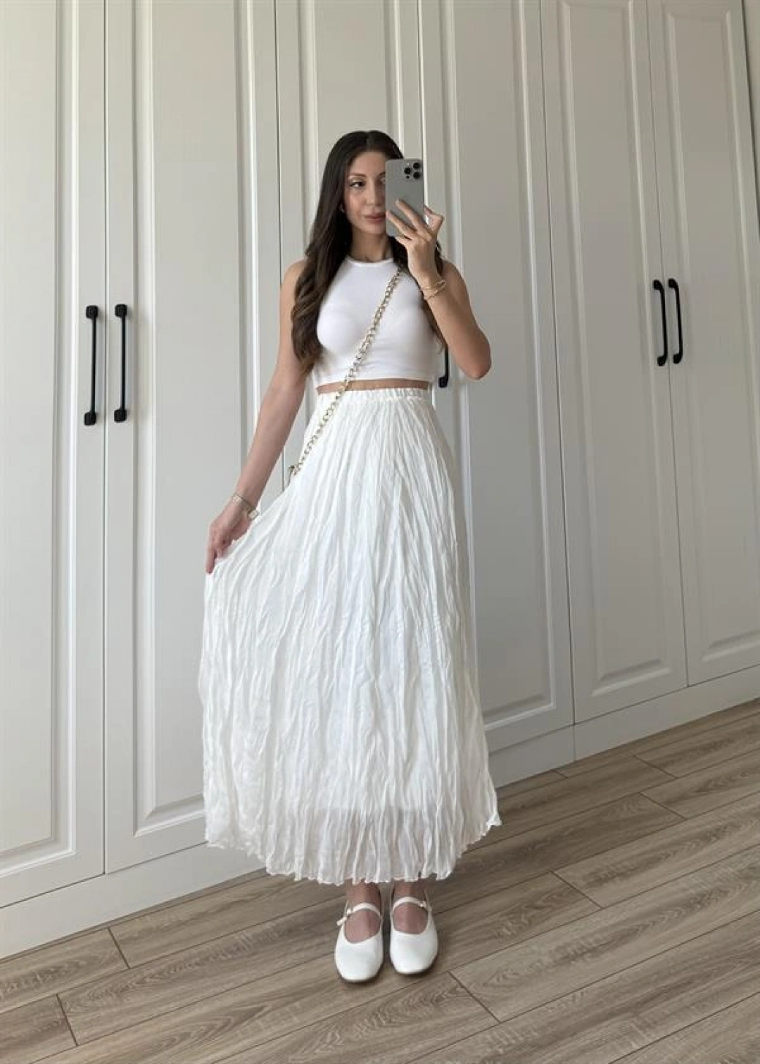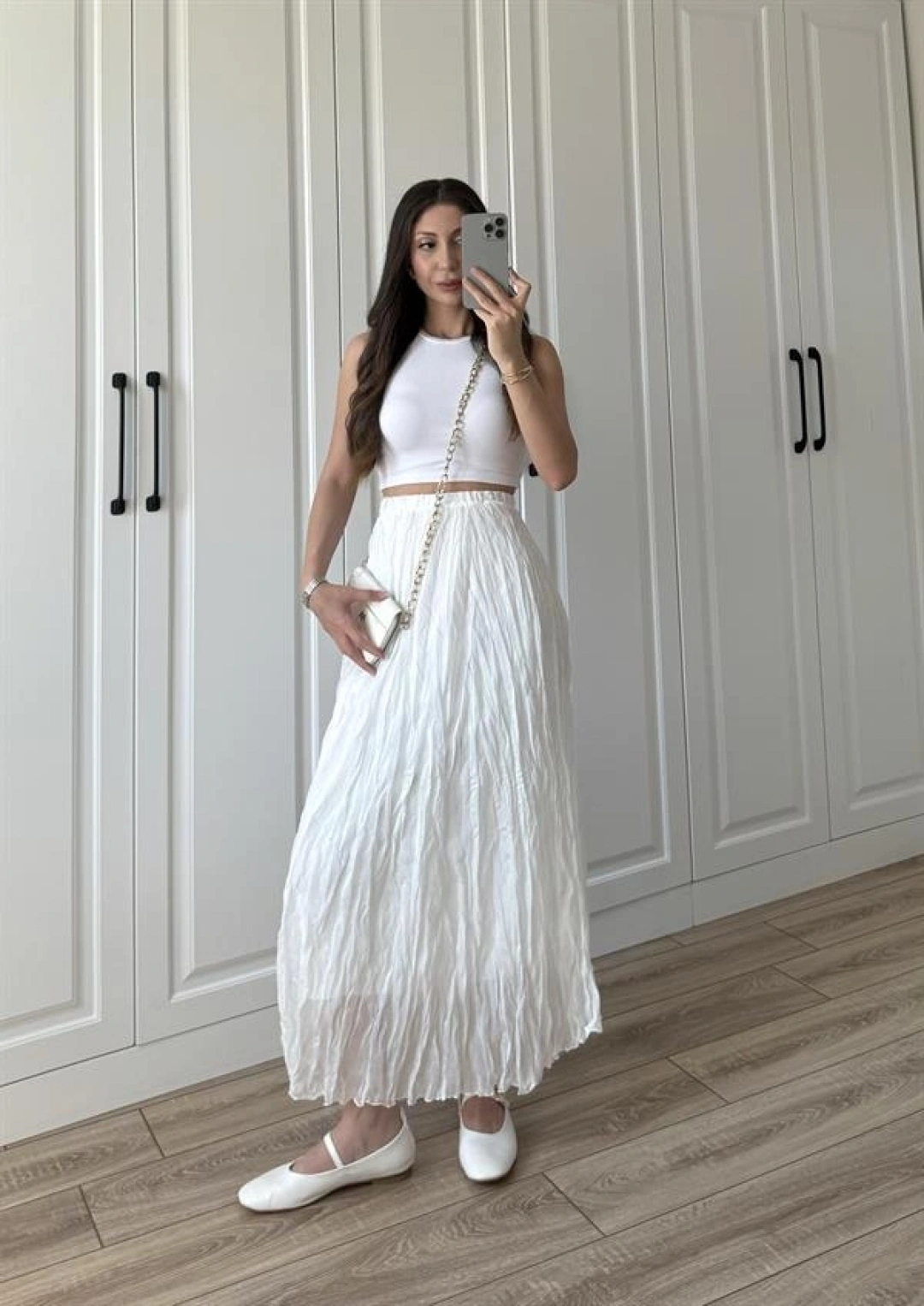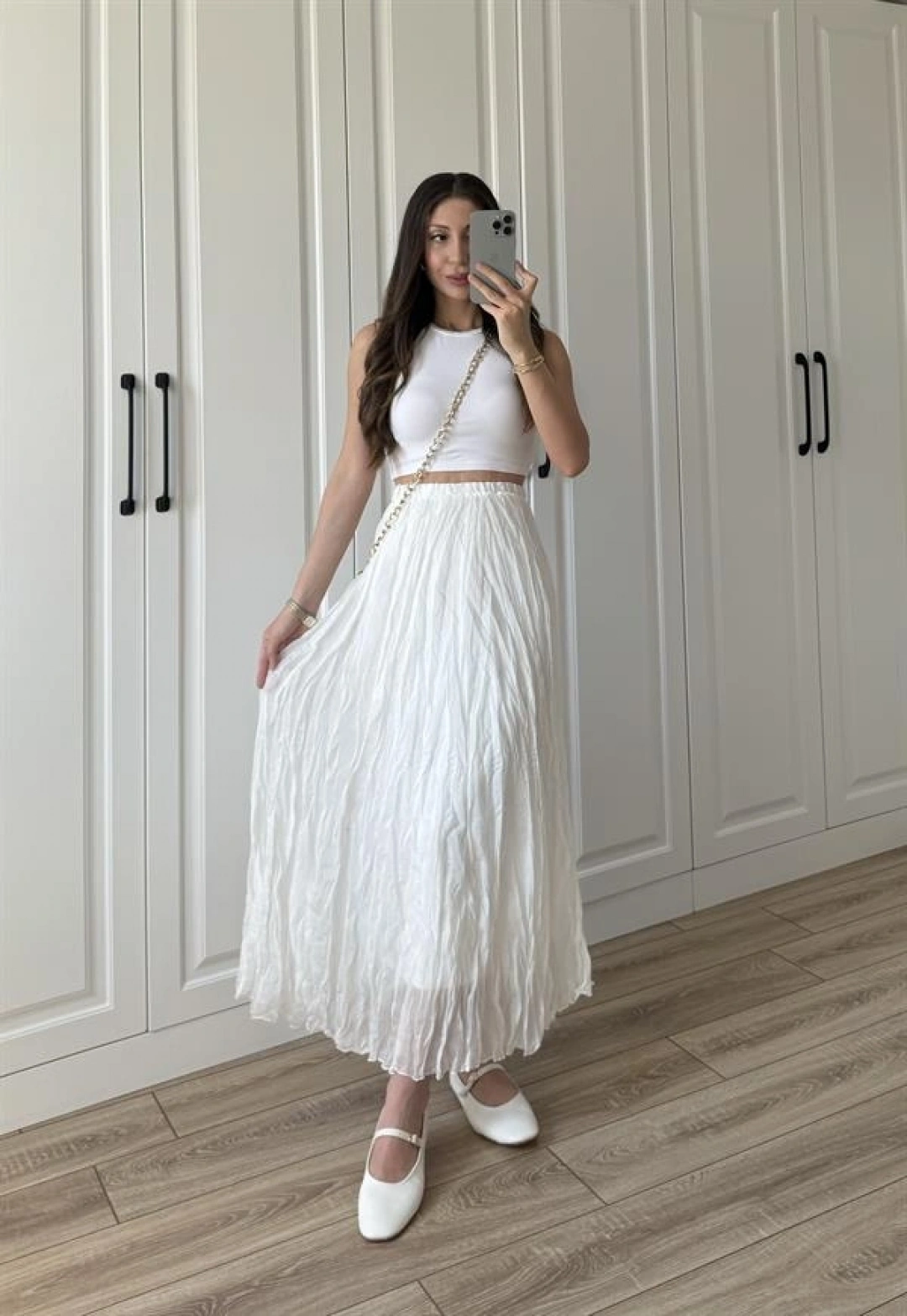 Holla Astarlı Kırışık Beyaz Tül Etek