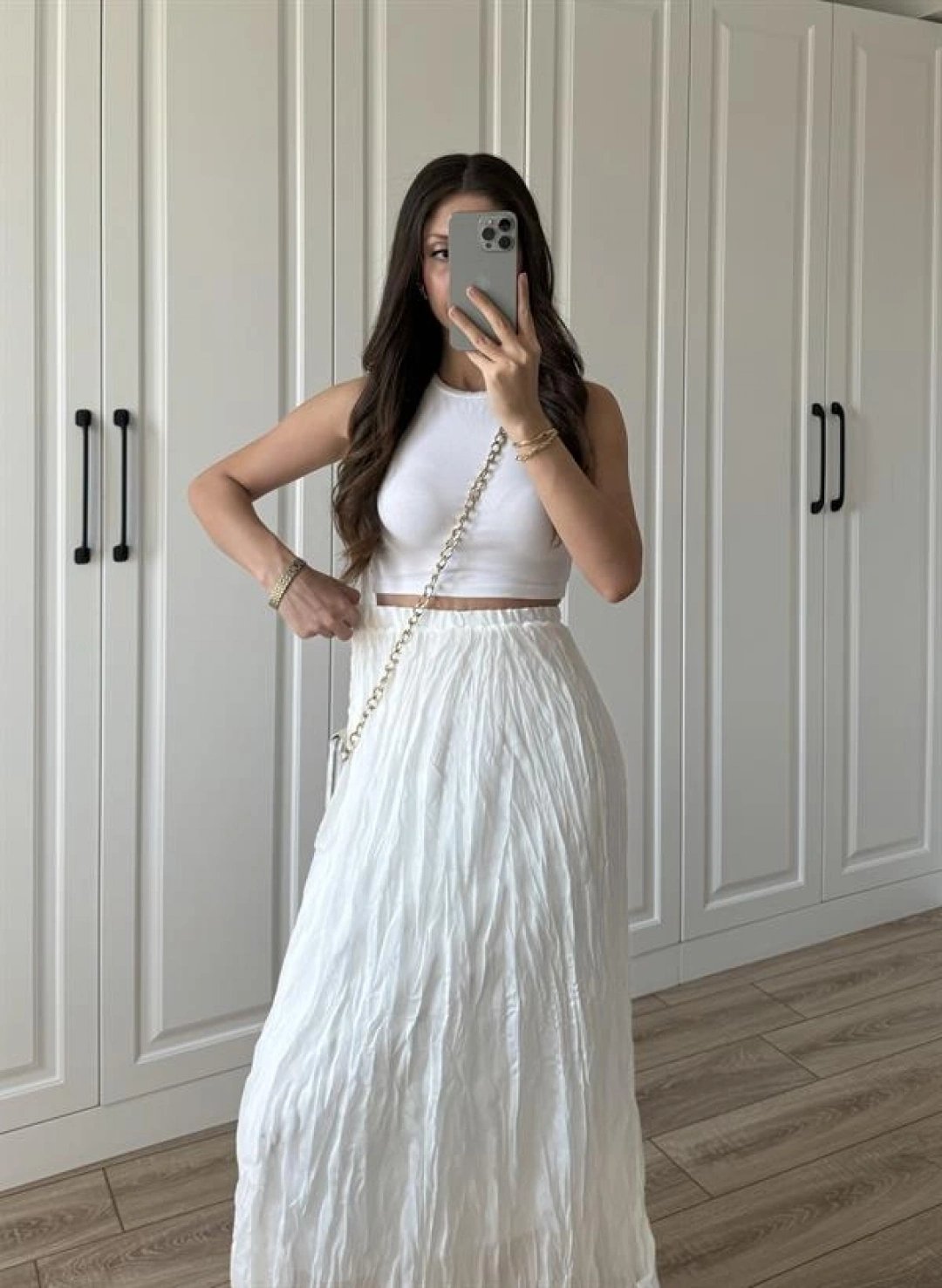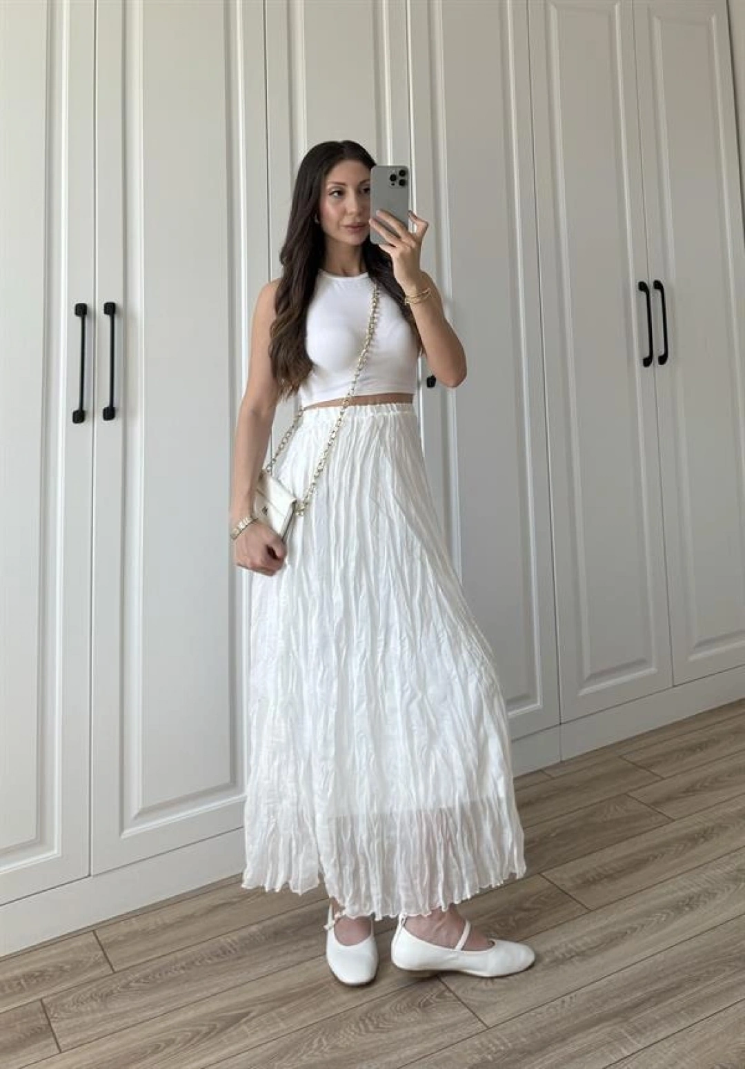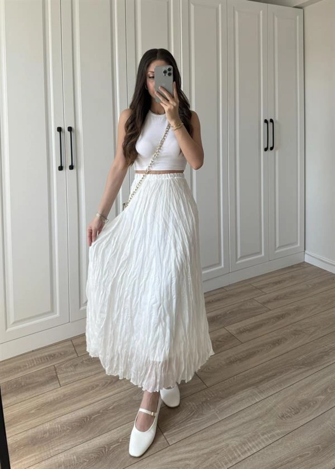 Holla Astarlı Kırışık Beyaz Tül Etek