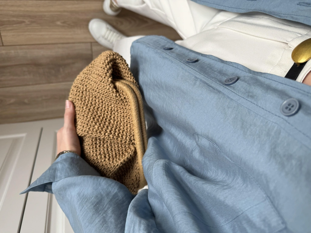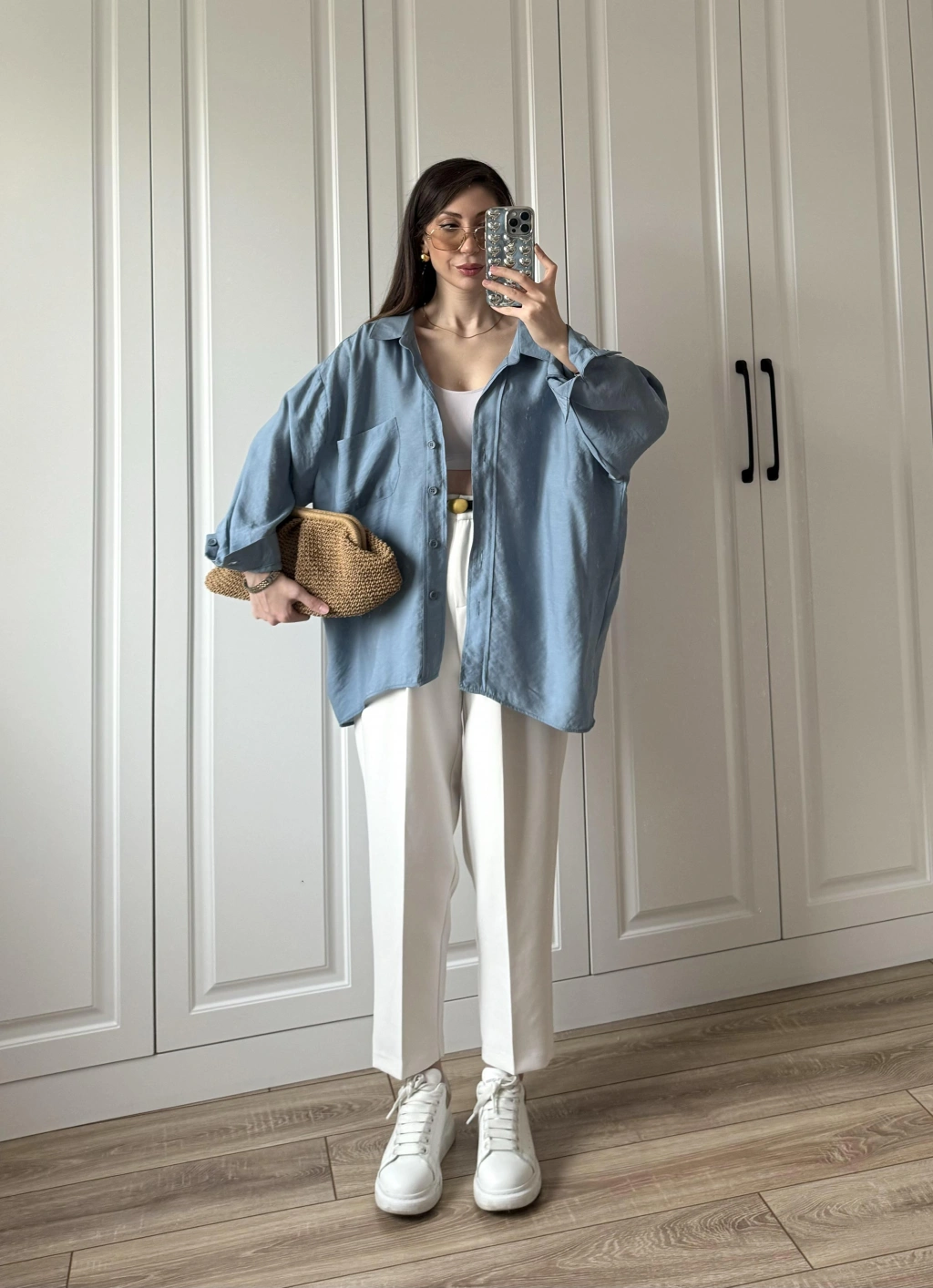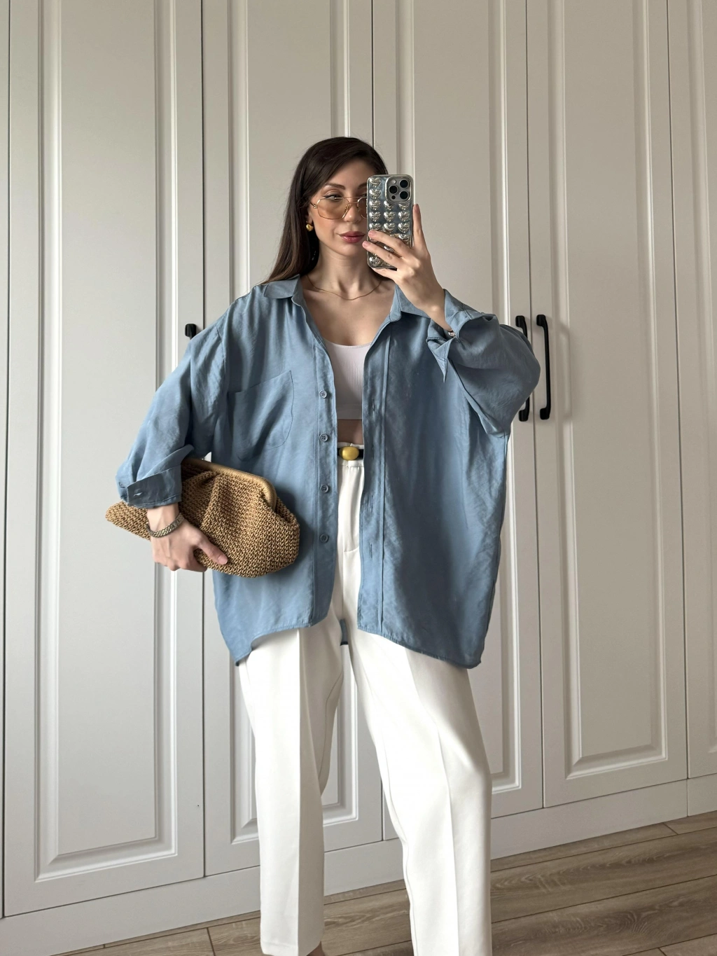 Sofi Düğmeli Oversize Kahve Crep Kumaş Gömlek