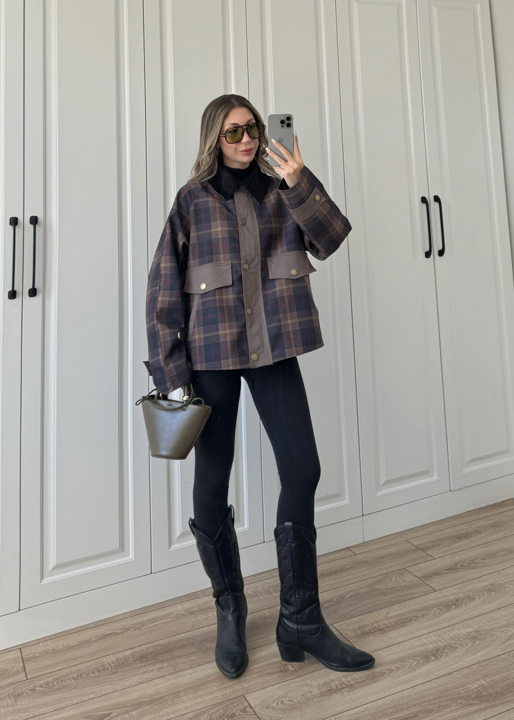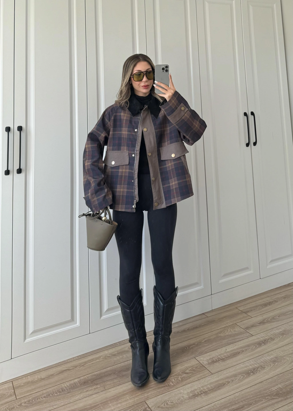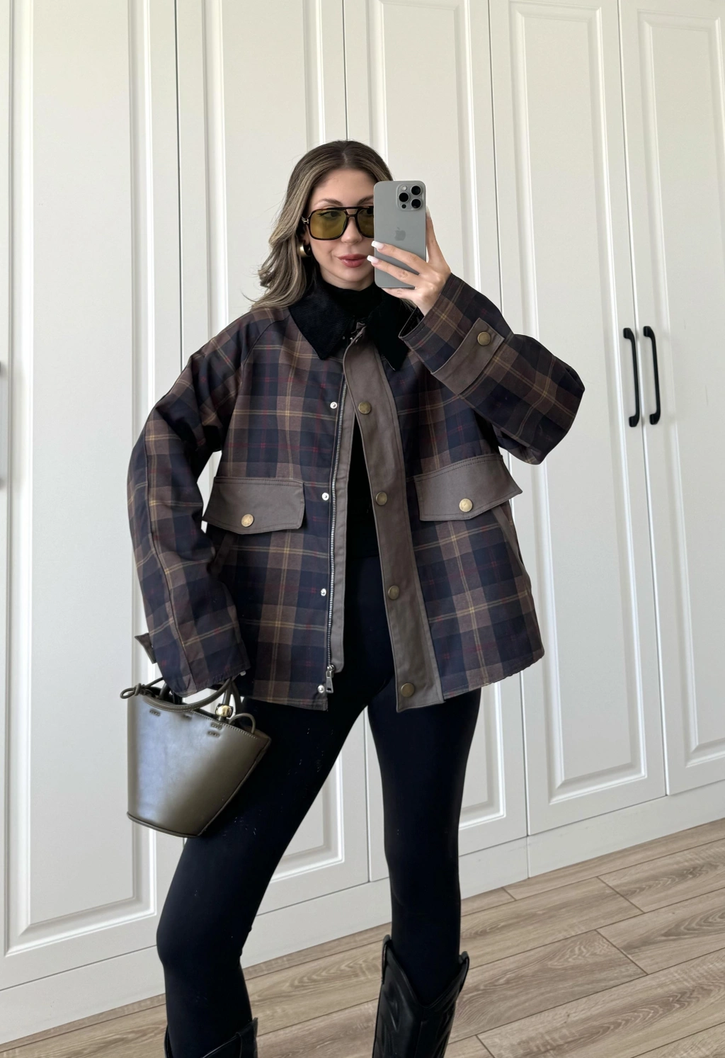 Vintage Kahve Astarlı Oversize Blazer Ceket