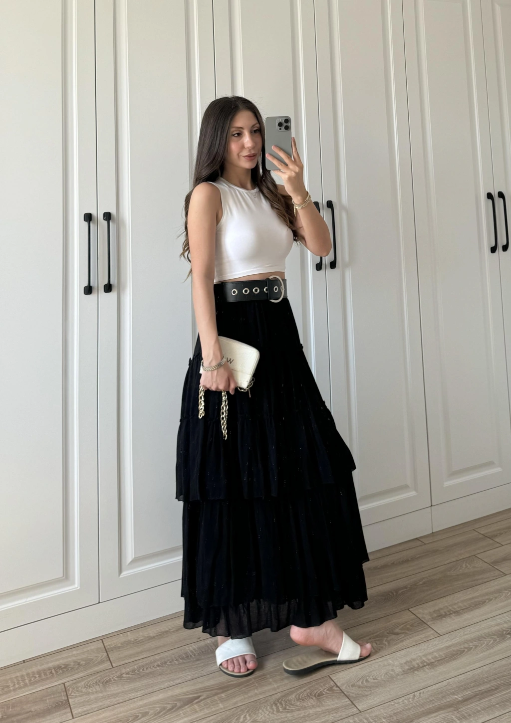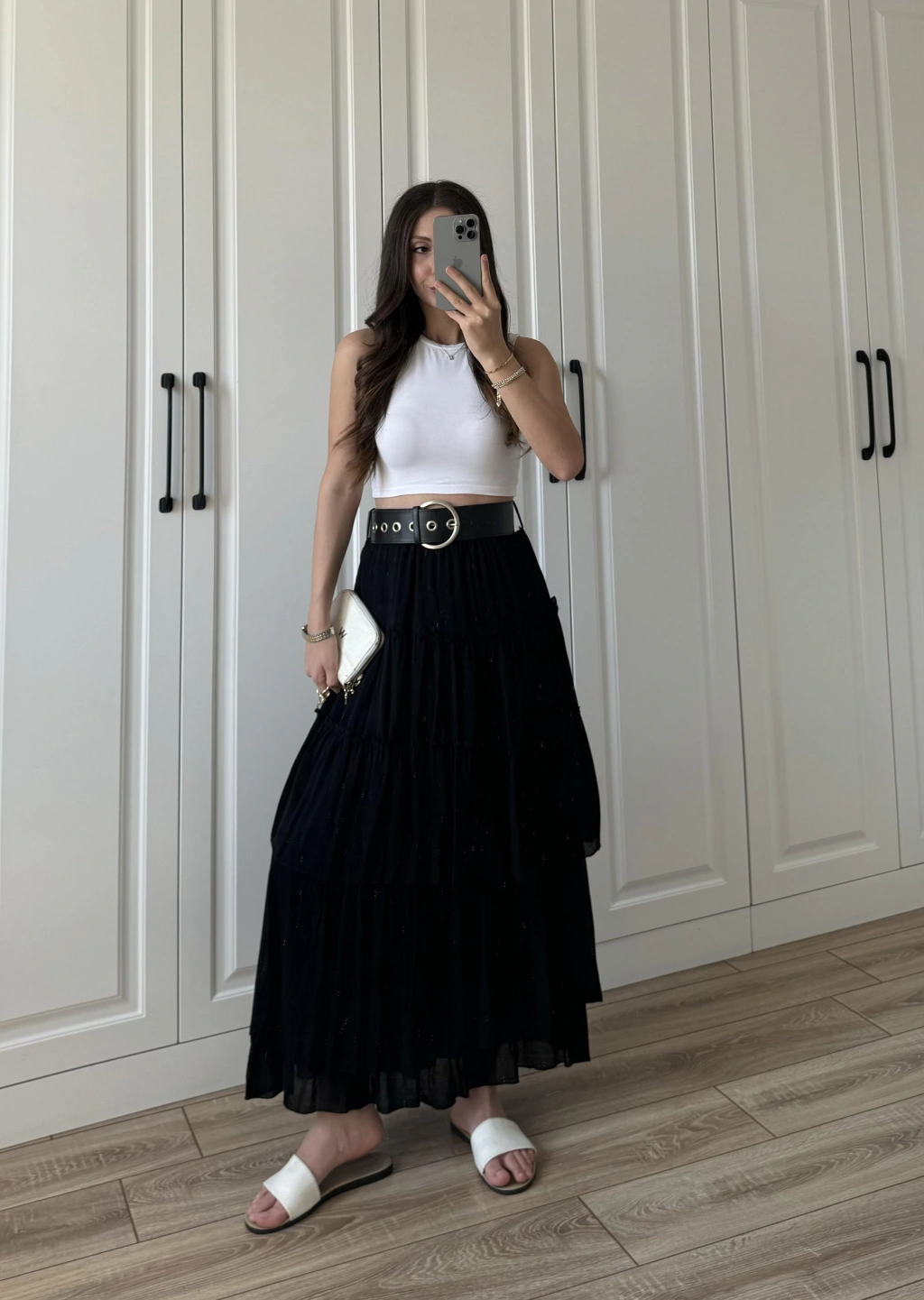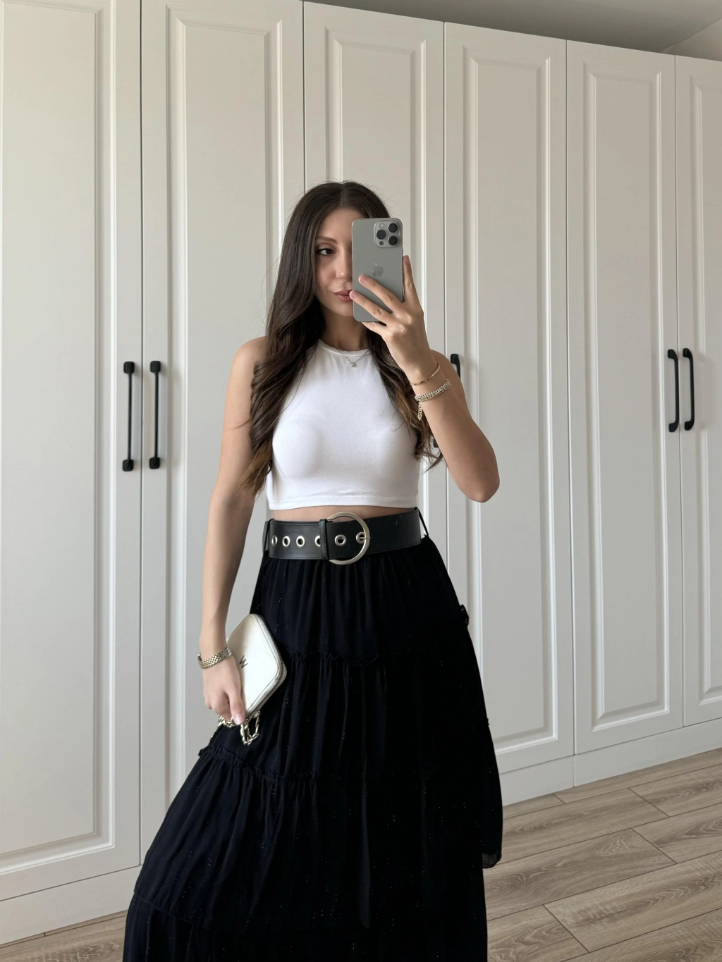 Holla Astarlı Kırışık Tarçın Tül Etek