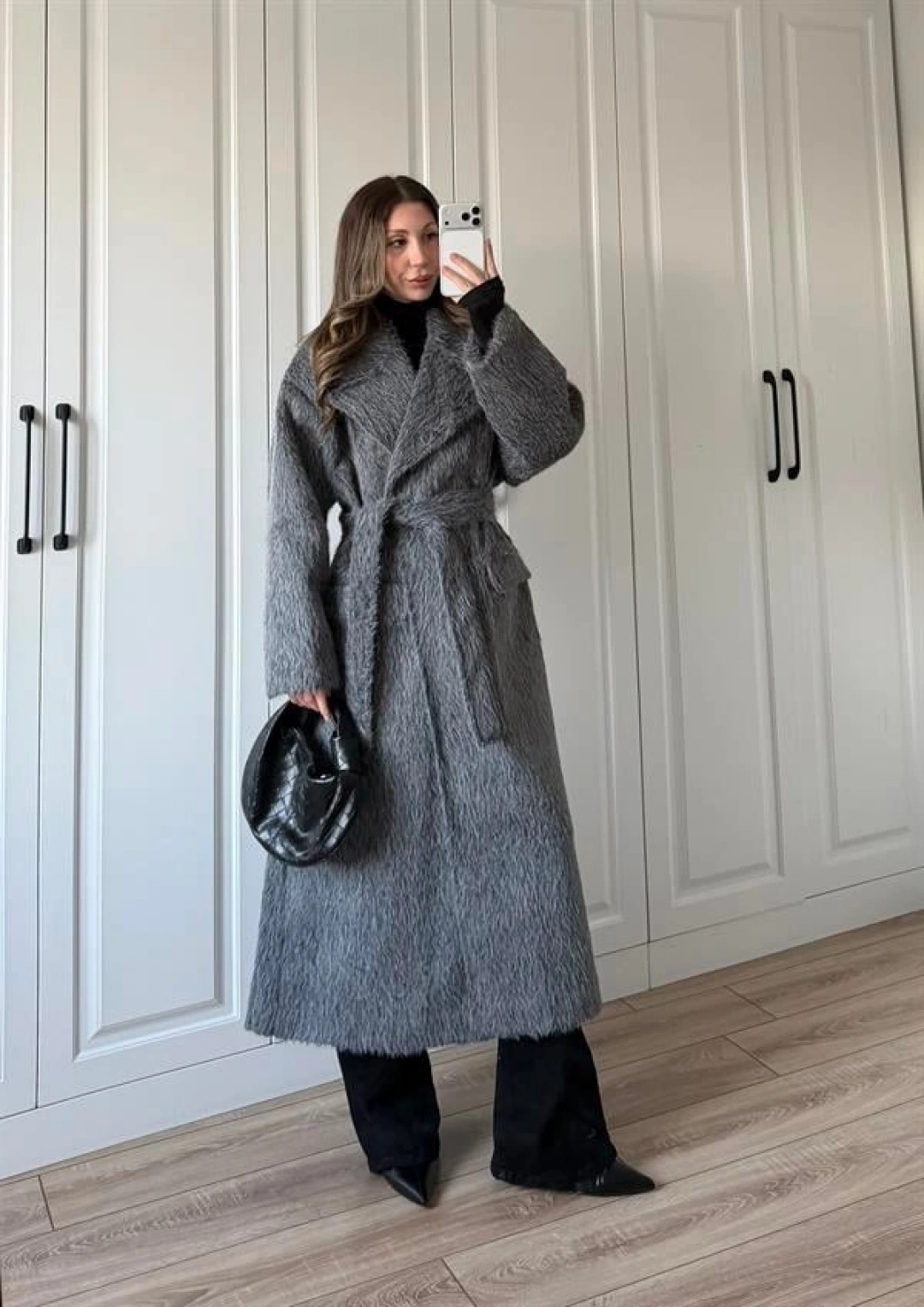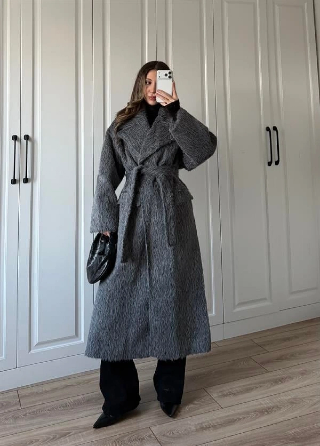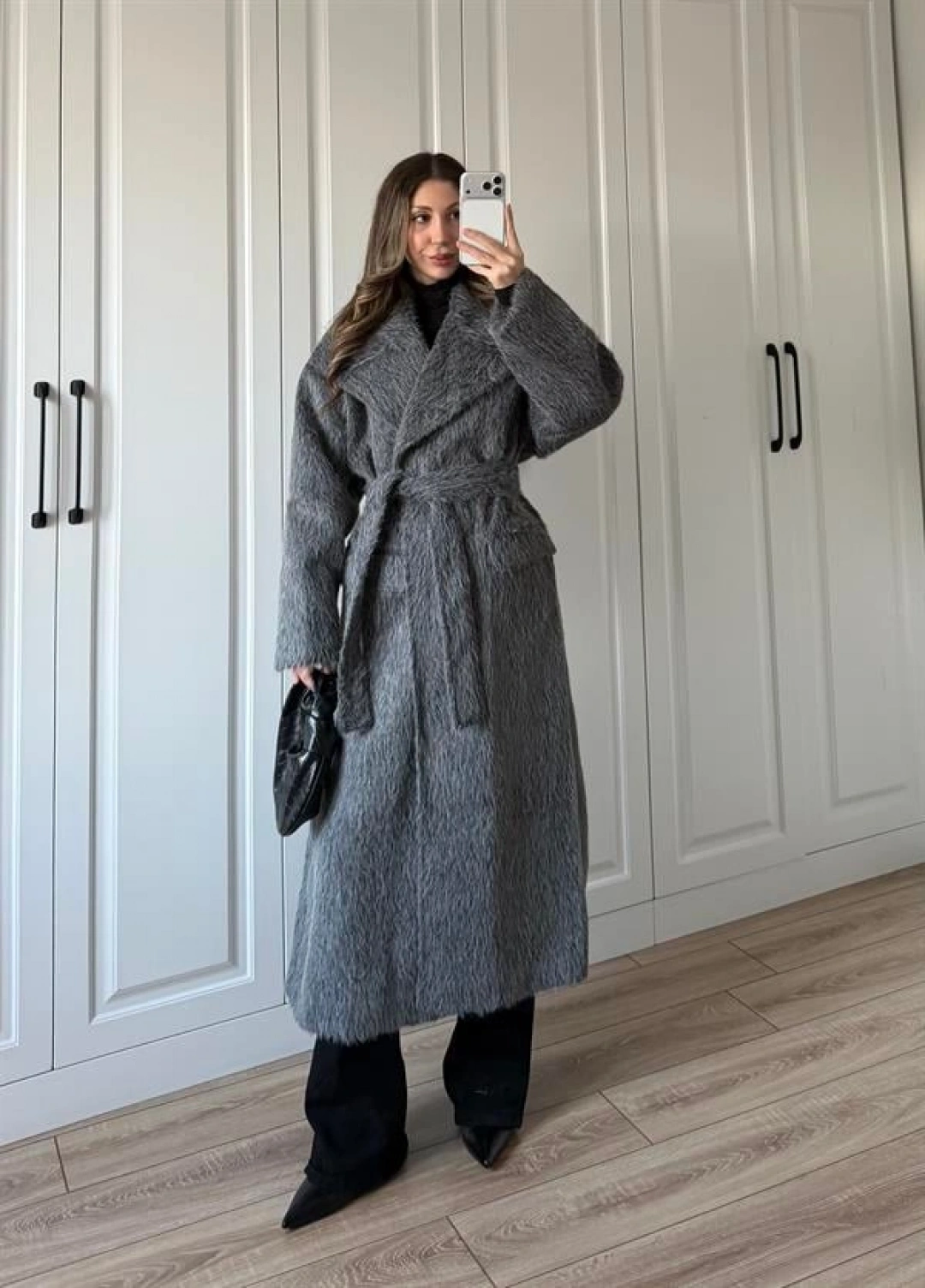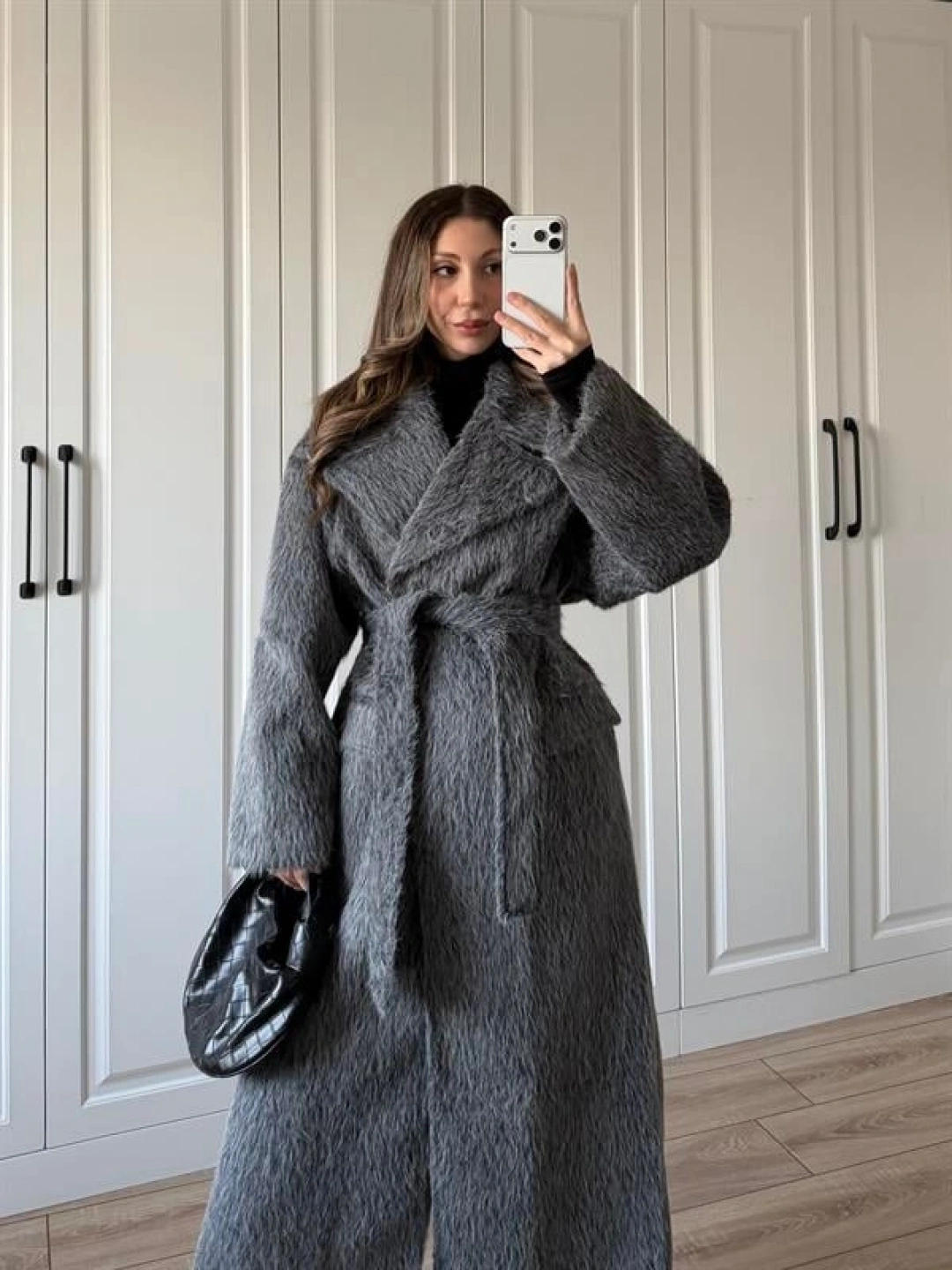 Kırçıllı Antrasit Kuşaklı Premium Kaban