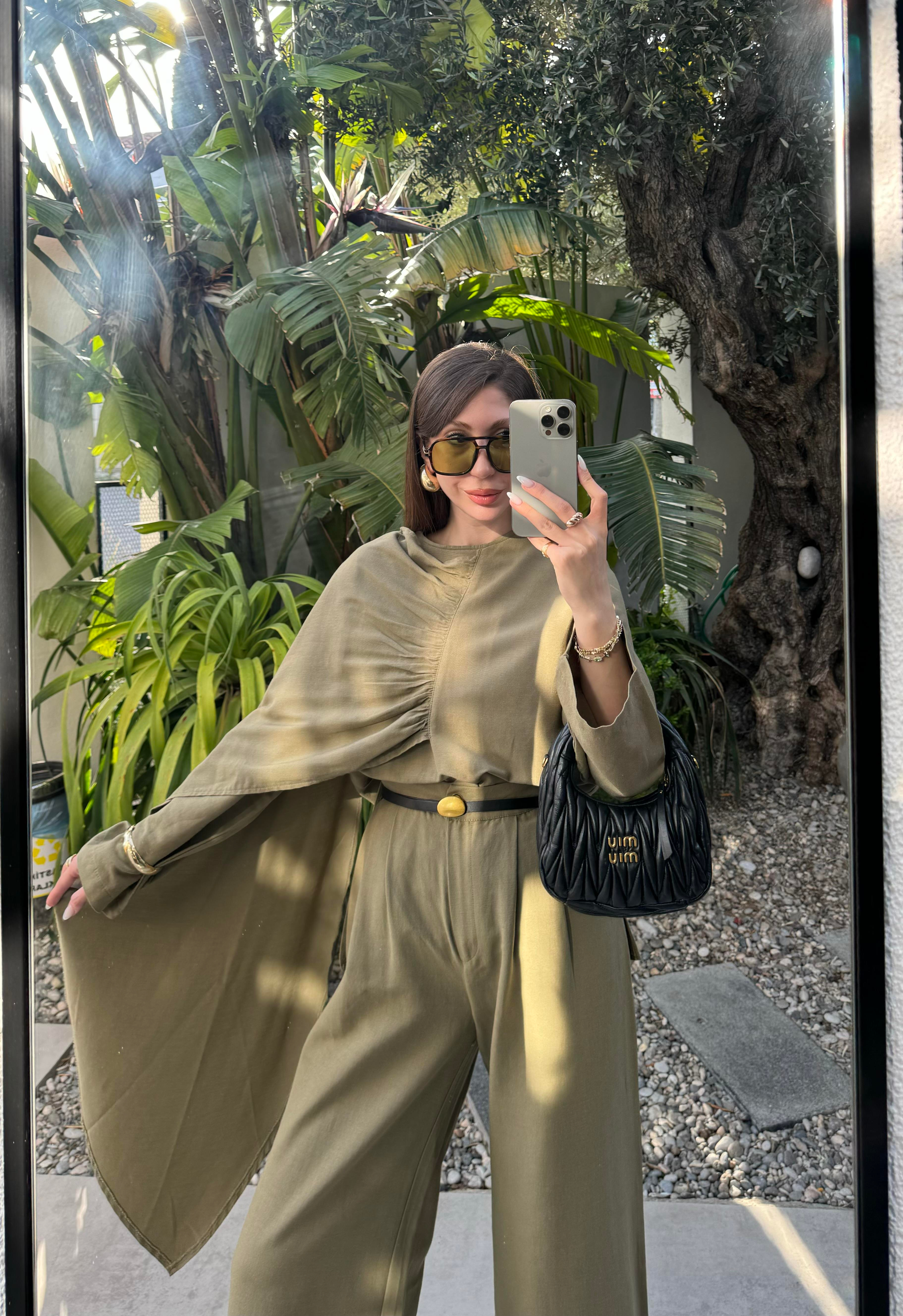 Kleopatra Pelerinli Premium Haki Keten Takım