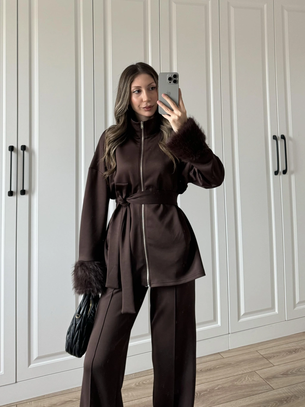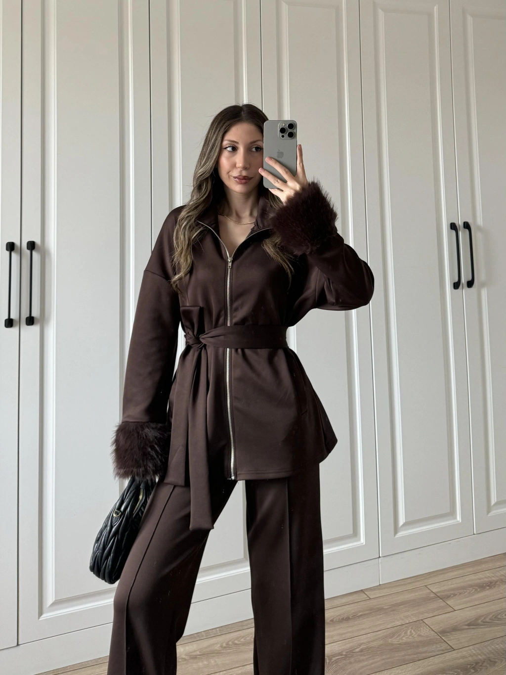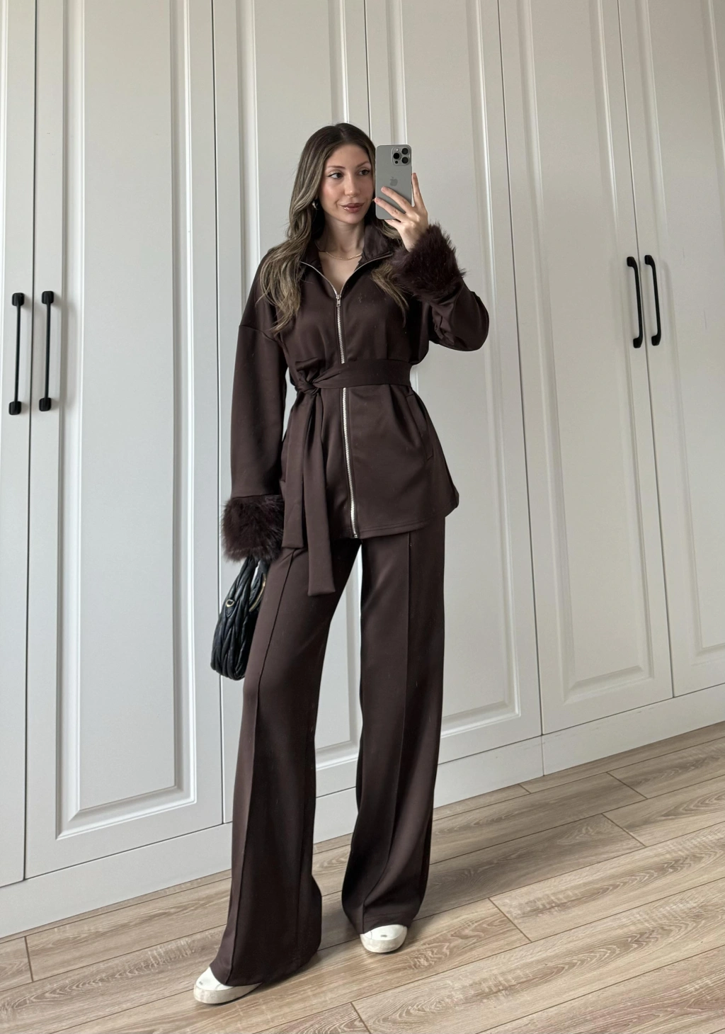 Kolları Kürk Detaylı Kahve Spor Takım