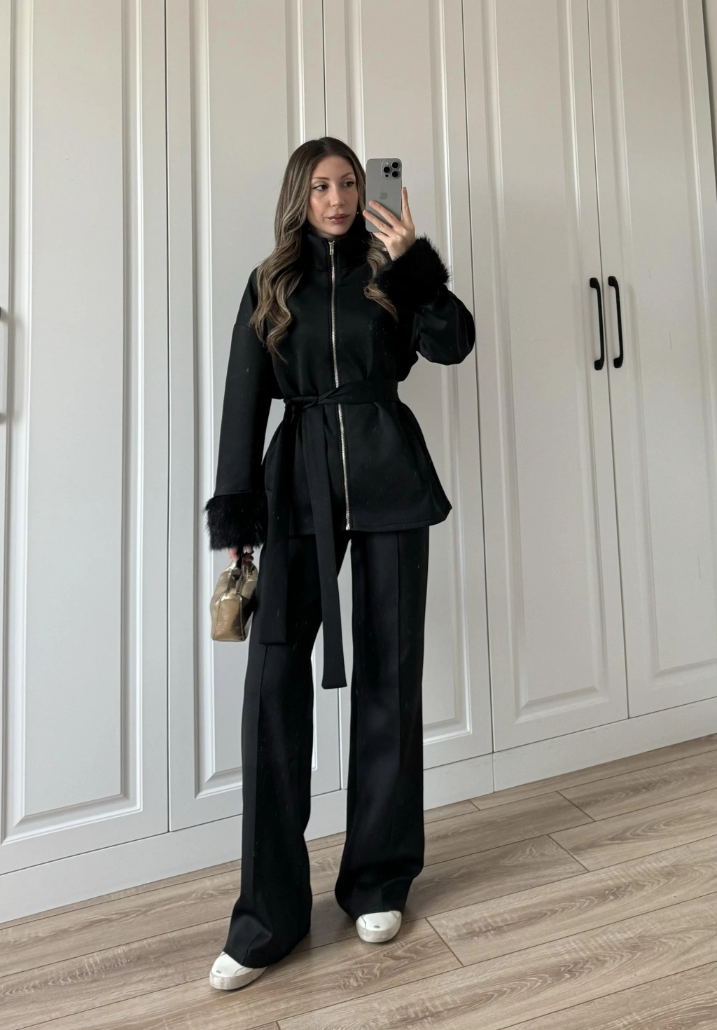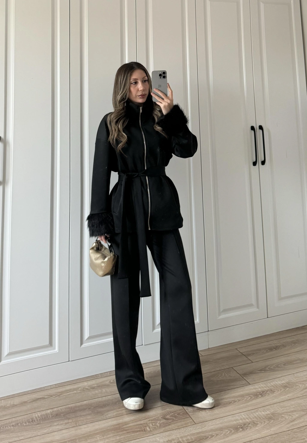 Kolları Kürk Detaylı Siyah Spor Takım