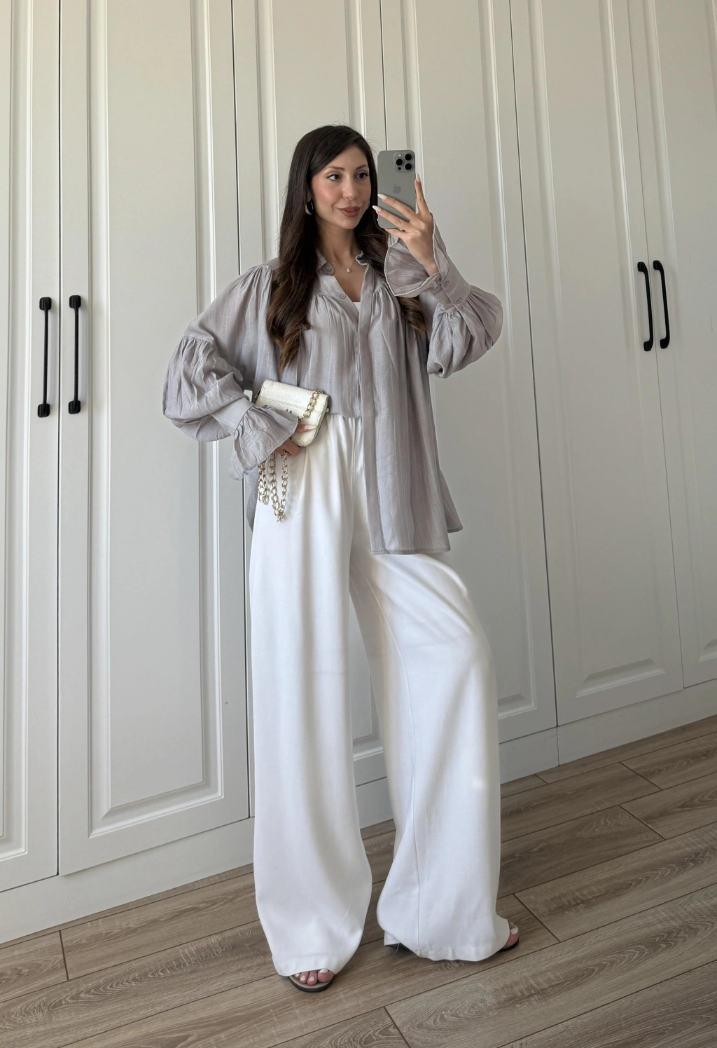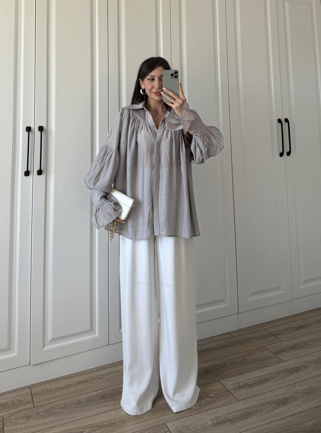 Kolları Volanlı Pinterest Viral Gri Gömlek