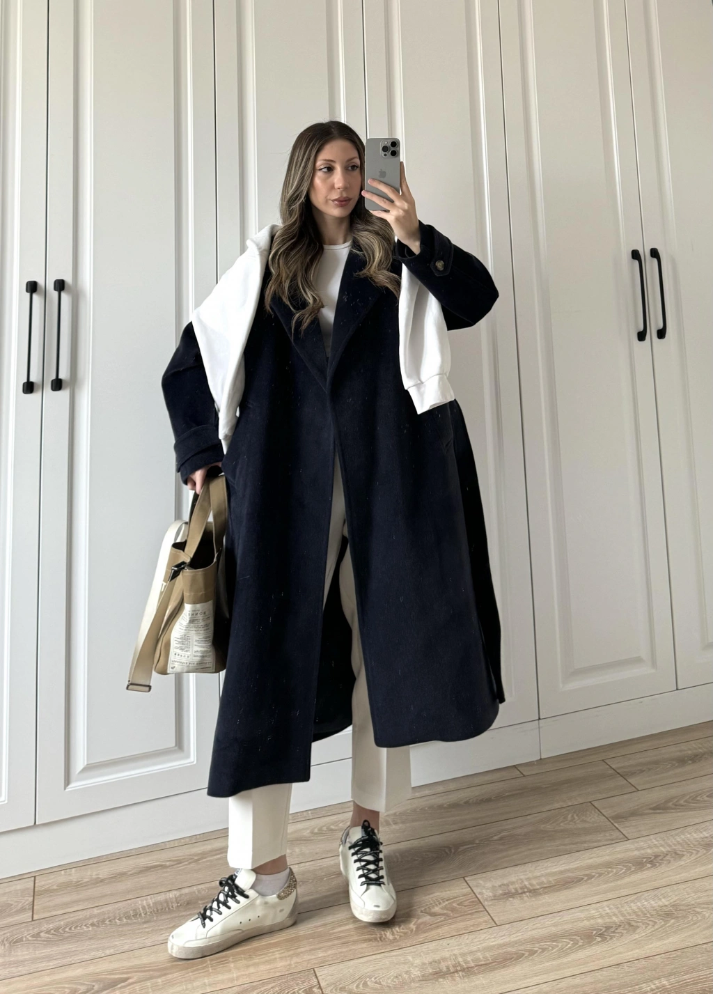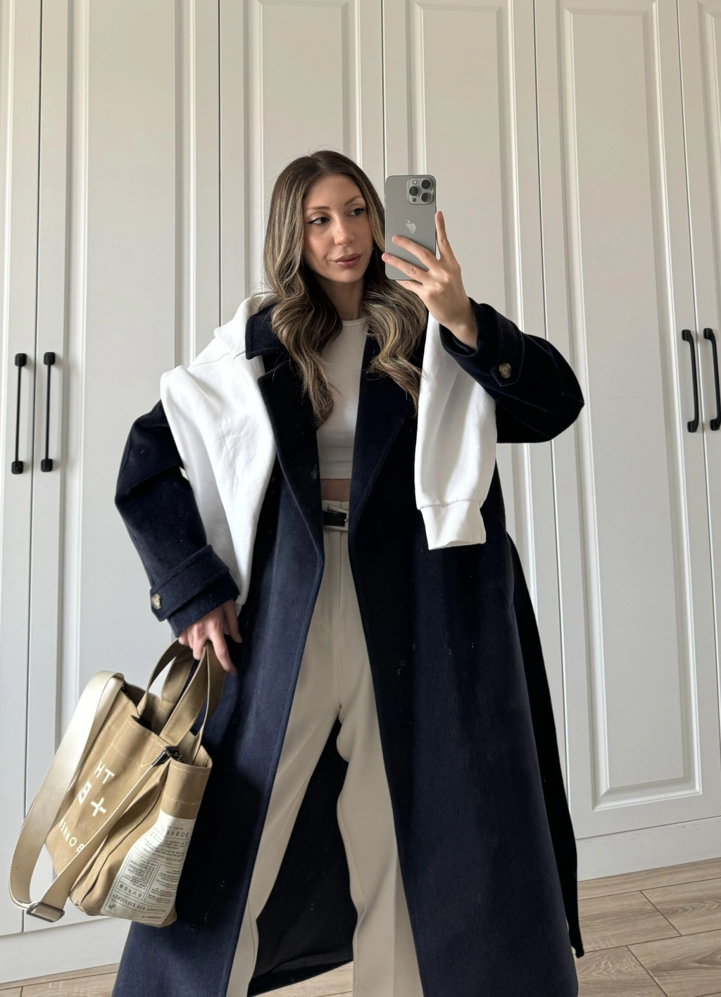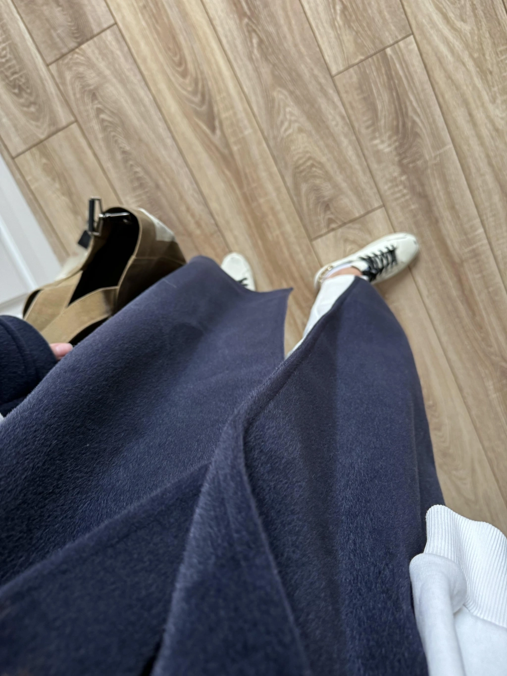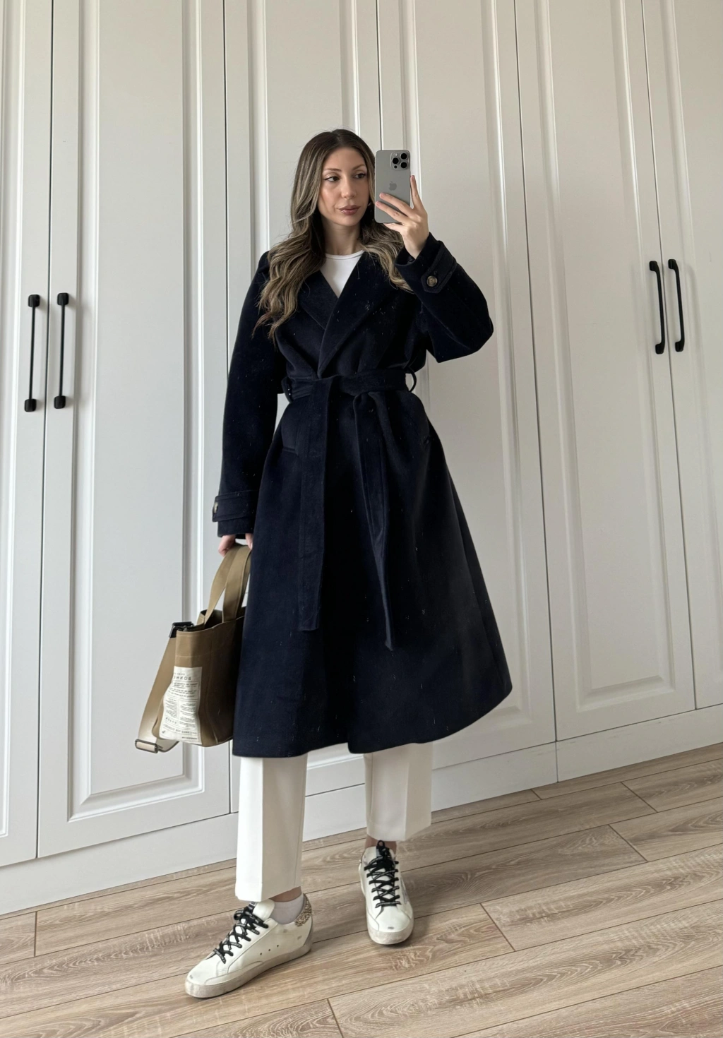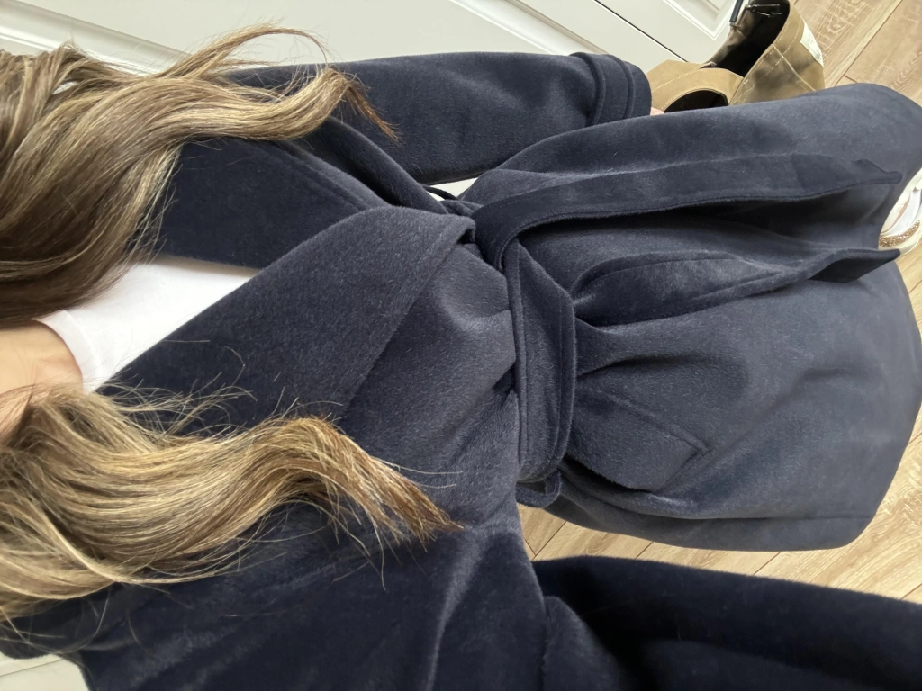 Kuşaklı Premium İthal Lacivert Yün Kaban