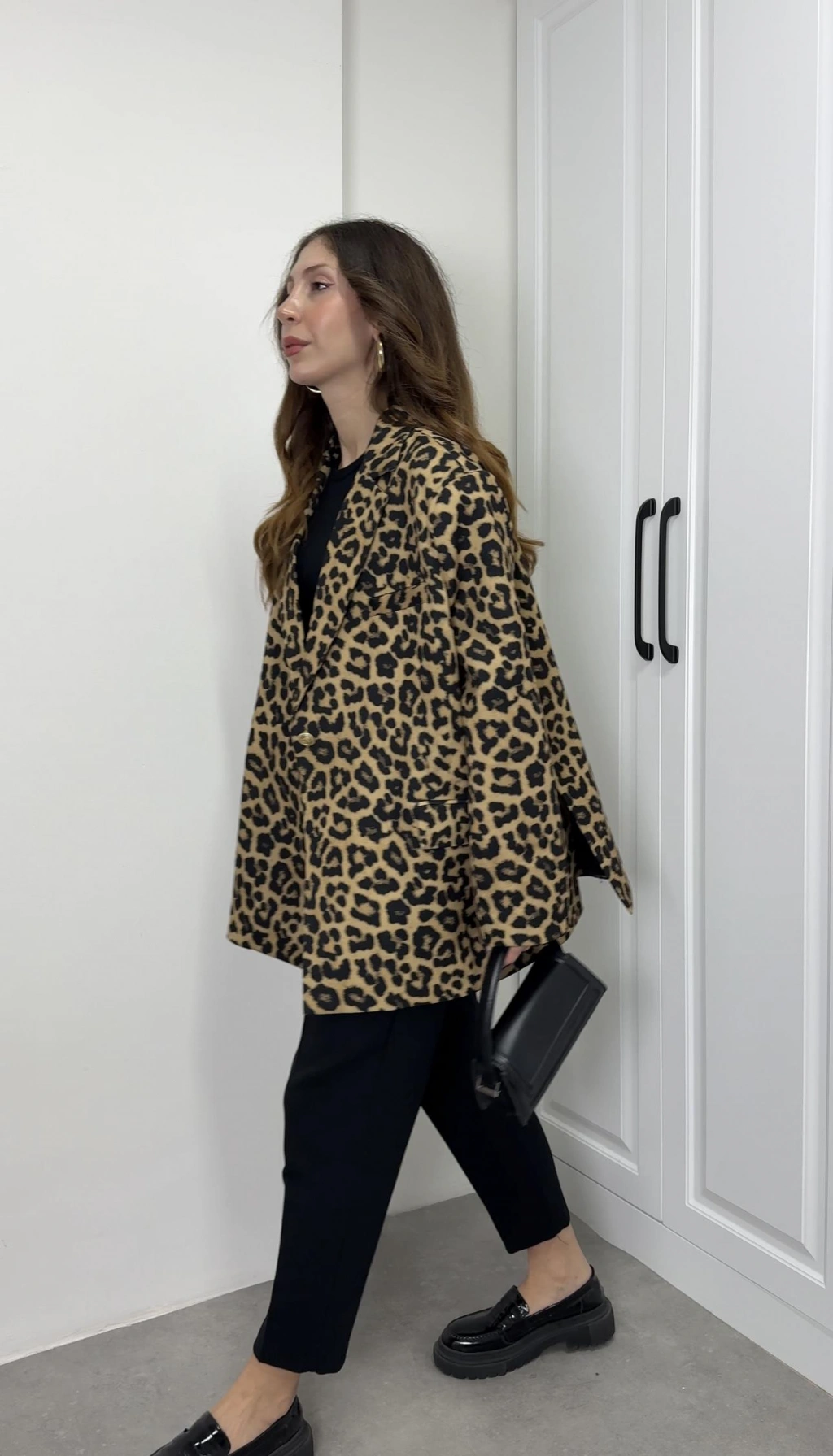 Vintage Kahve Astarlı Oversize Blazer Ceket