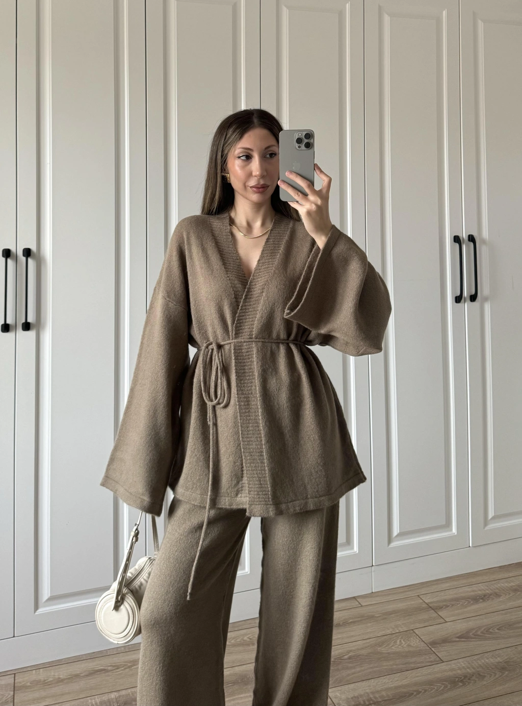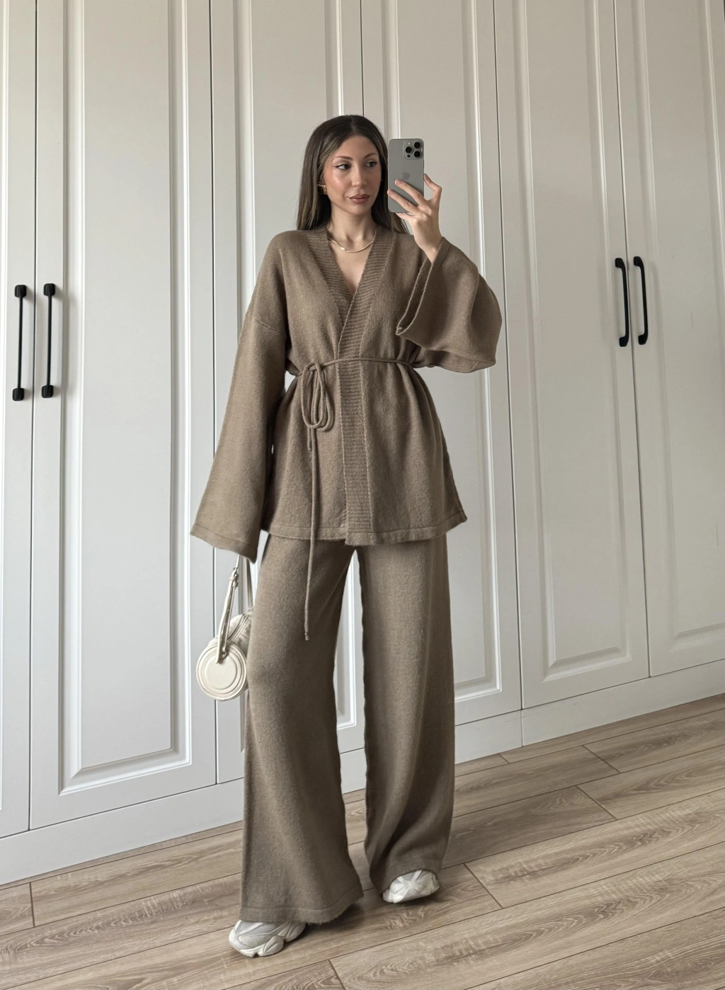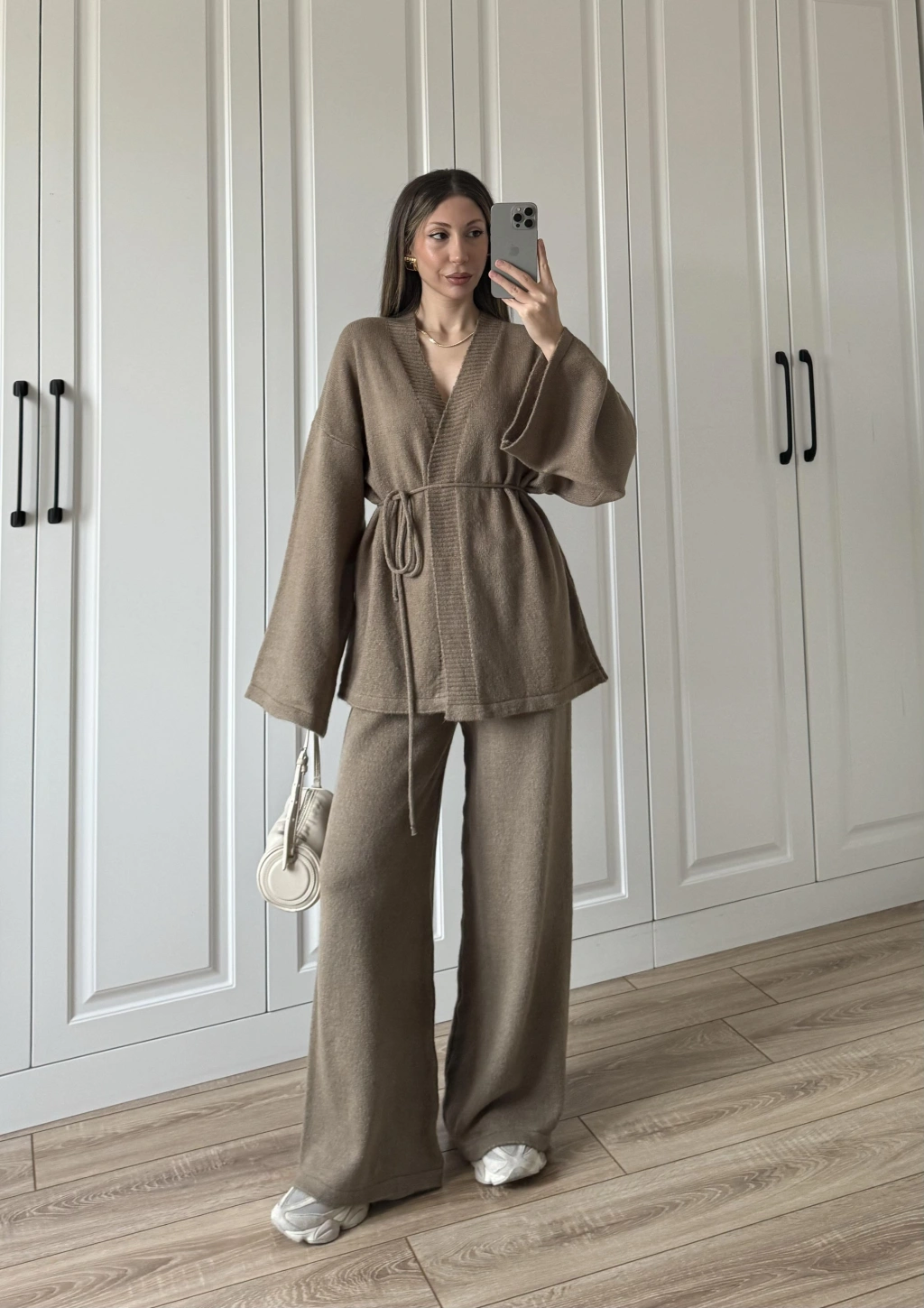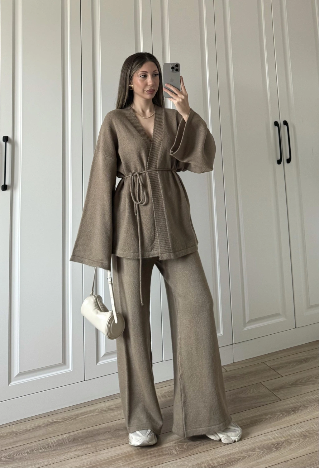 Sık Dokuma Tok Nude Yeşili Triko Takım