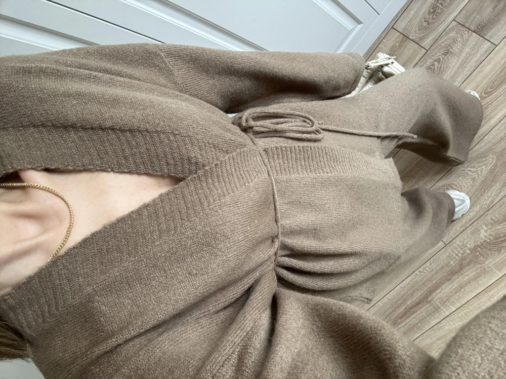 Çift Fermuarlı Antrasit Örgü Triko Takım