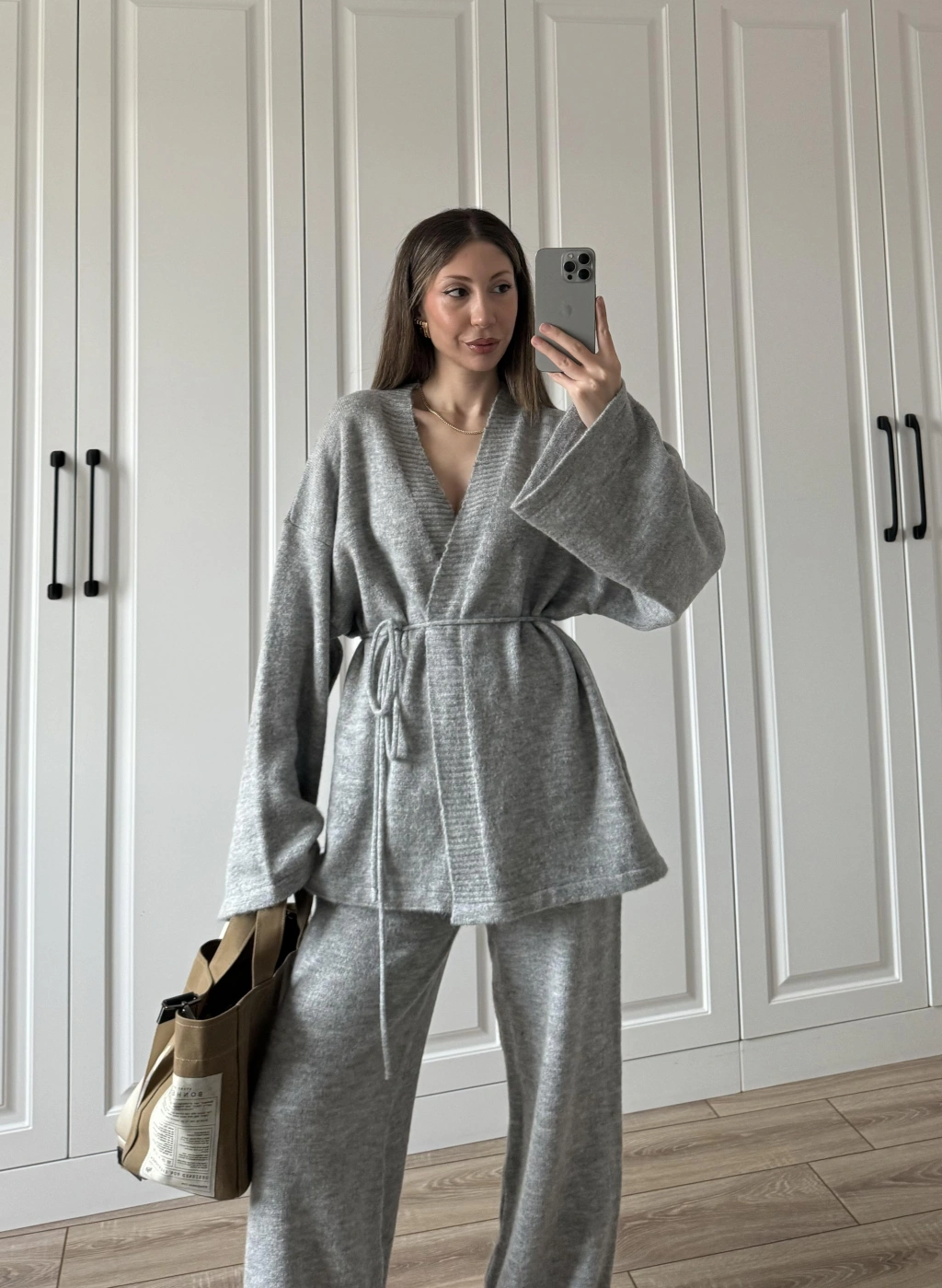 Luvre Bağlamalı Gri Triko Takım