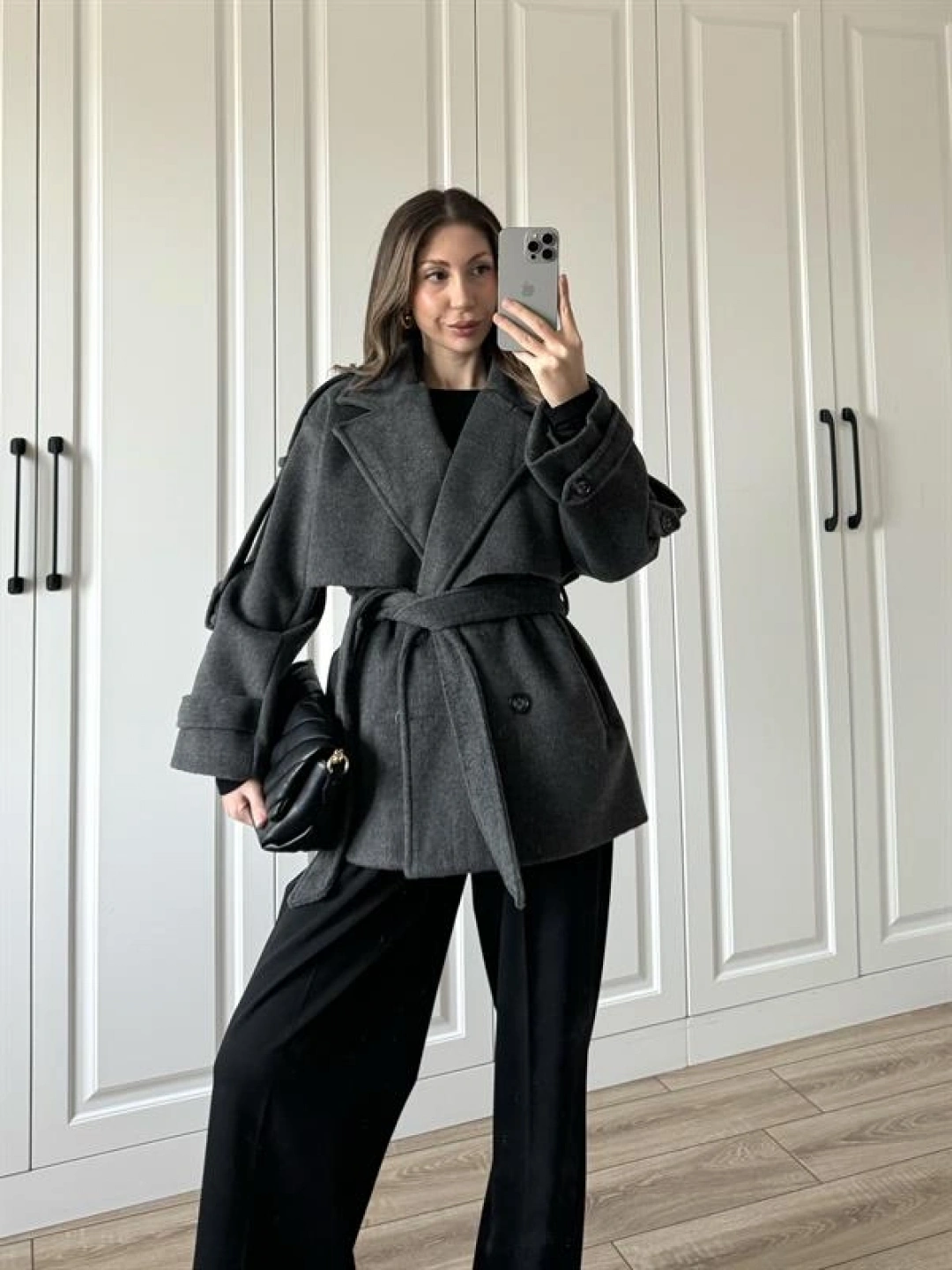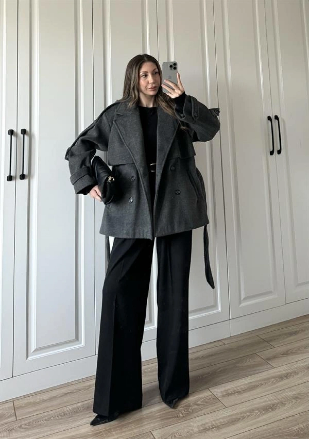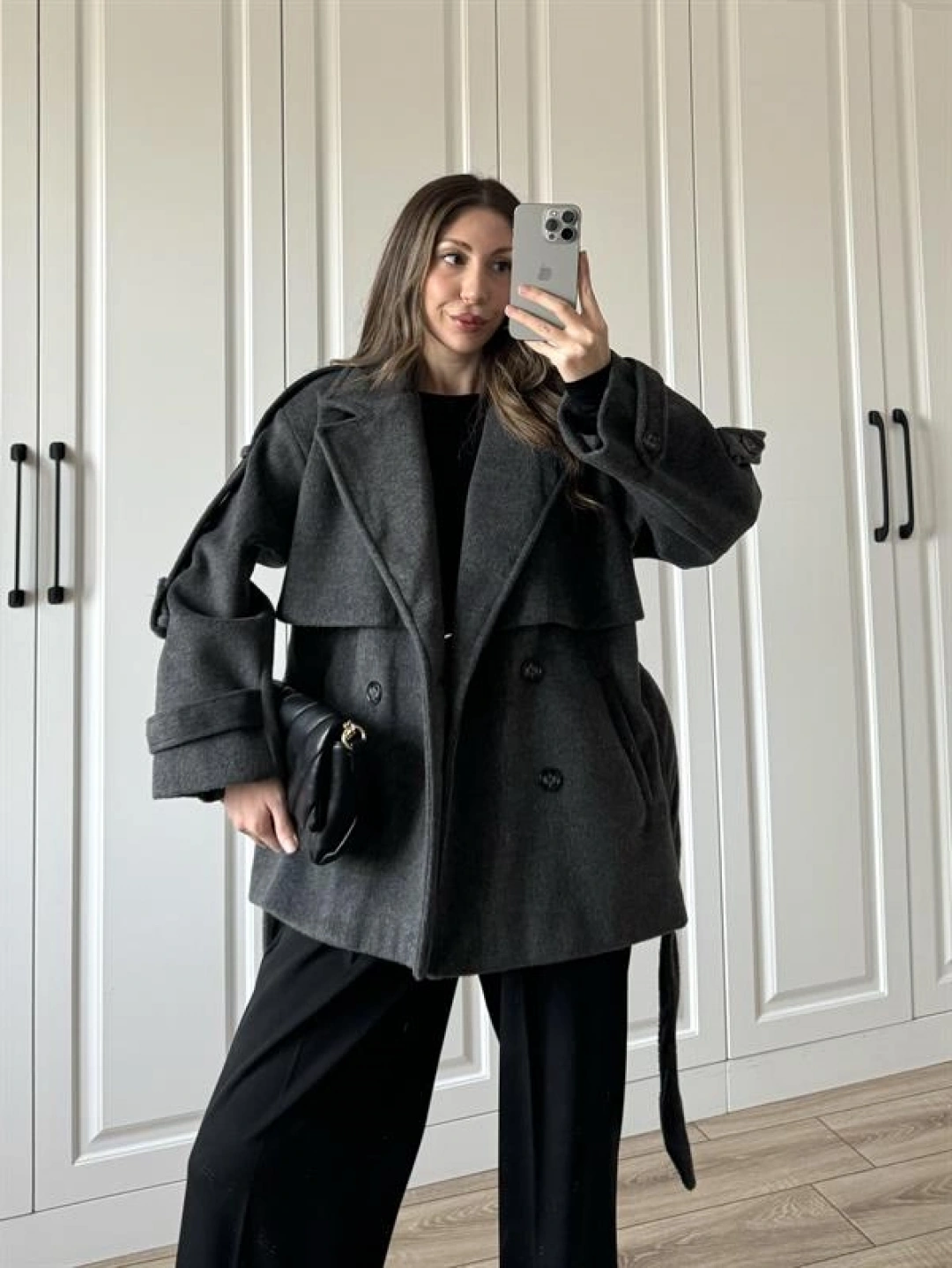 Luxe Astarlı Yün Dokulu Premium Antrasit Kaban