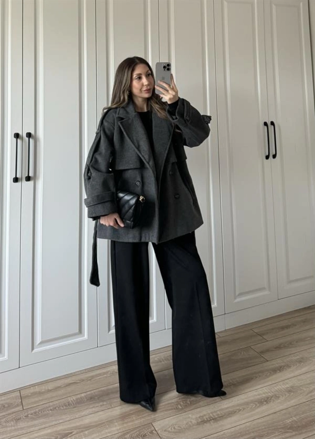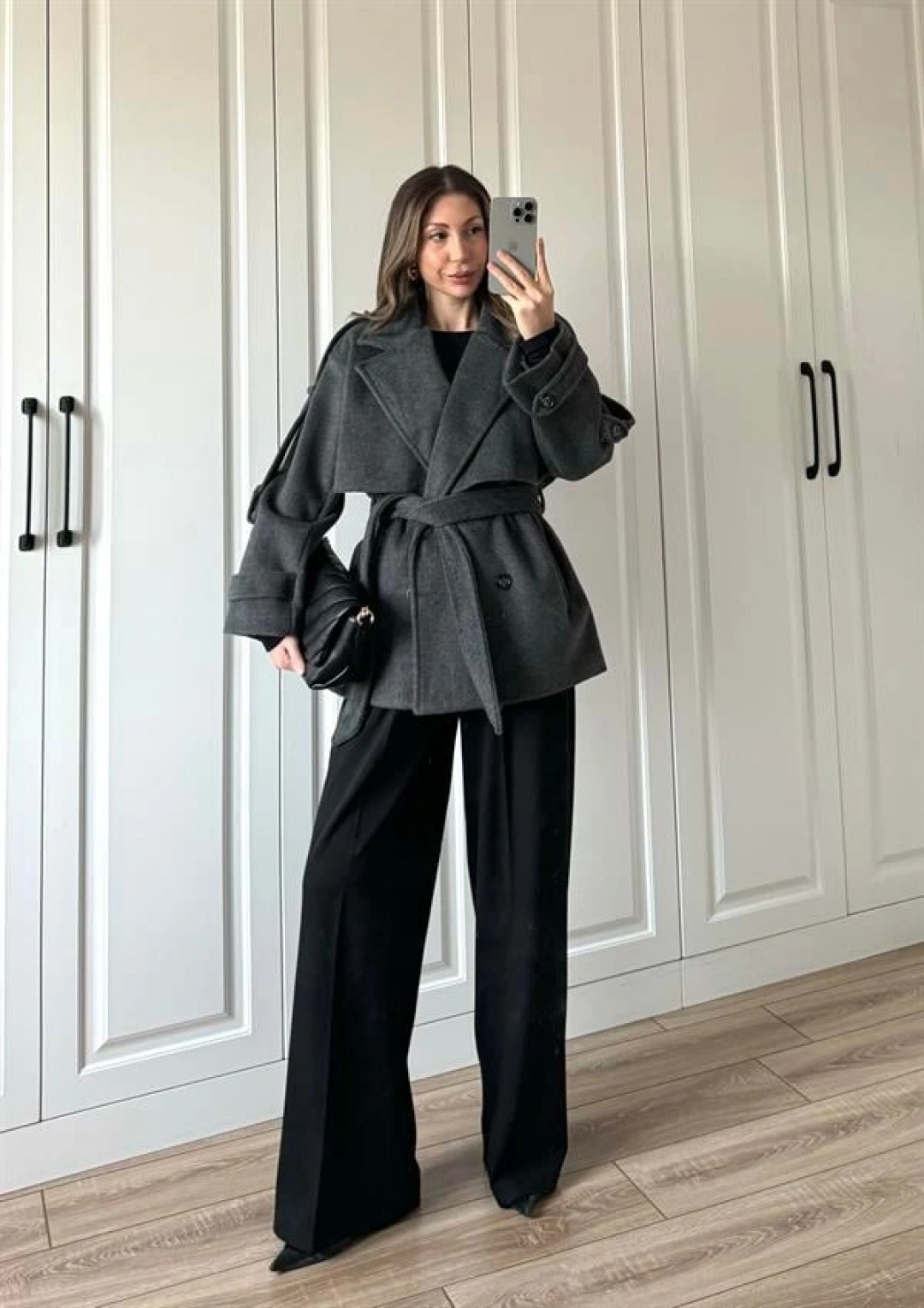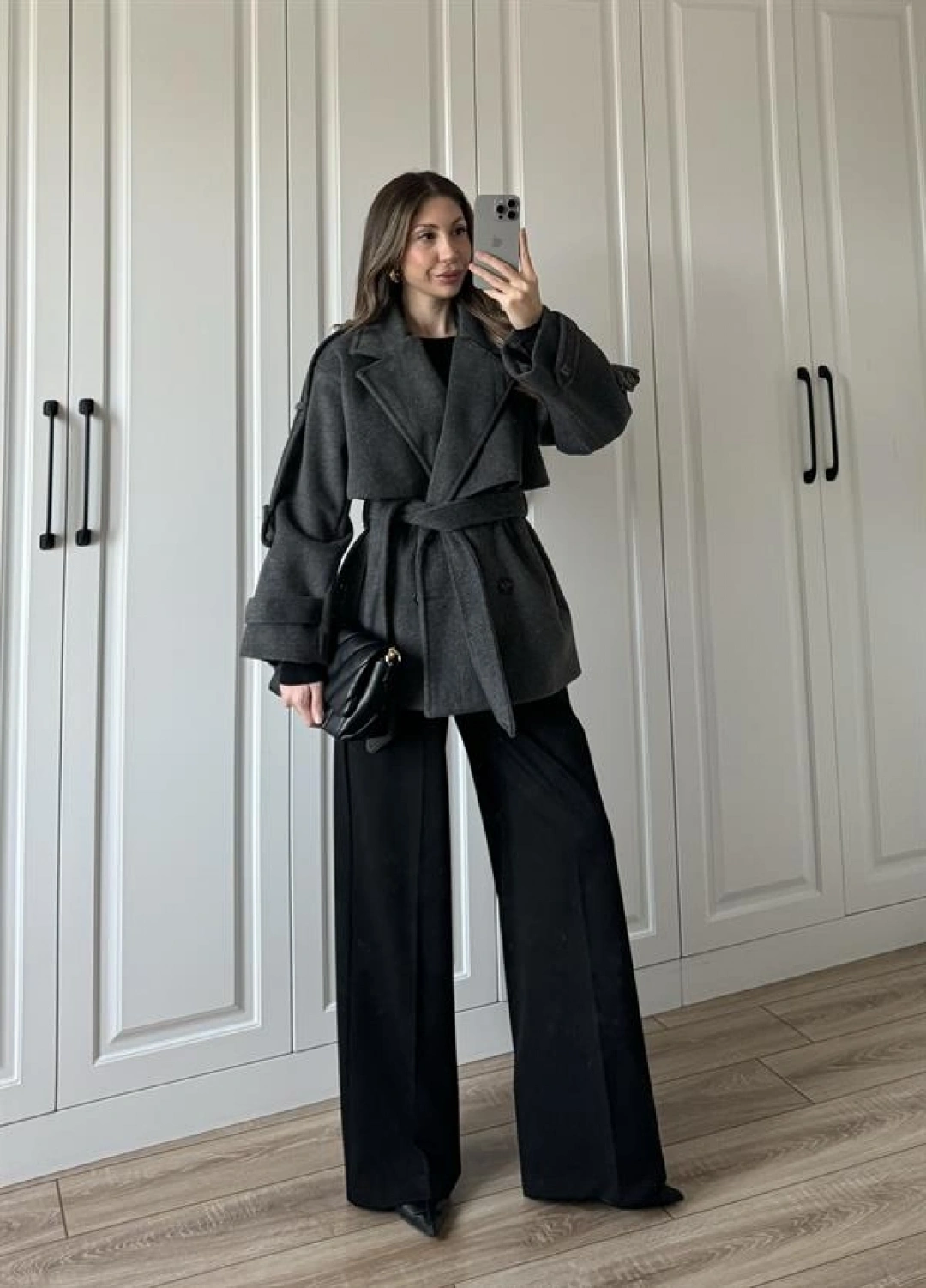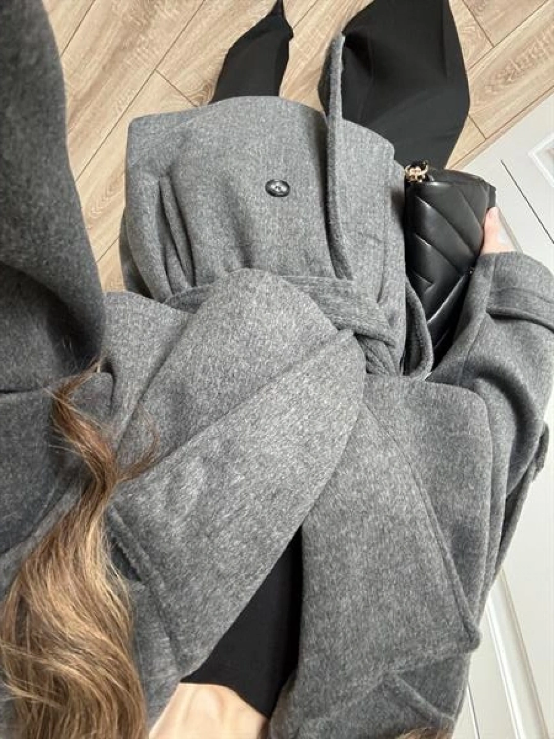 Luxe Astarlı Yün Dokulu Premium Antrasit Kaban