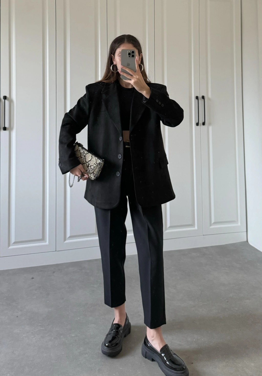 Mai Süet Astarlı Premium Siyah Blazer Ceket