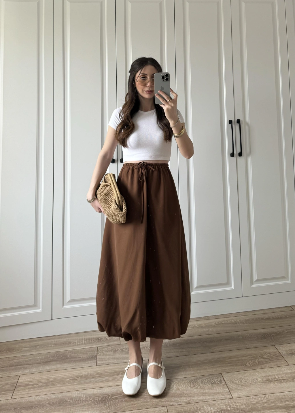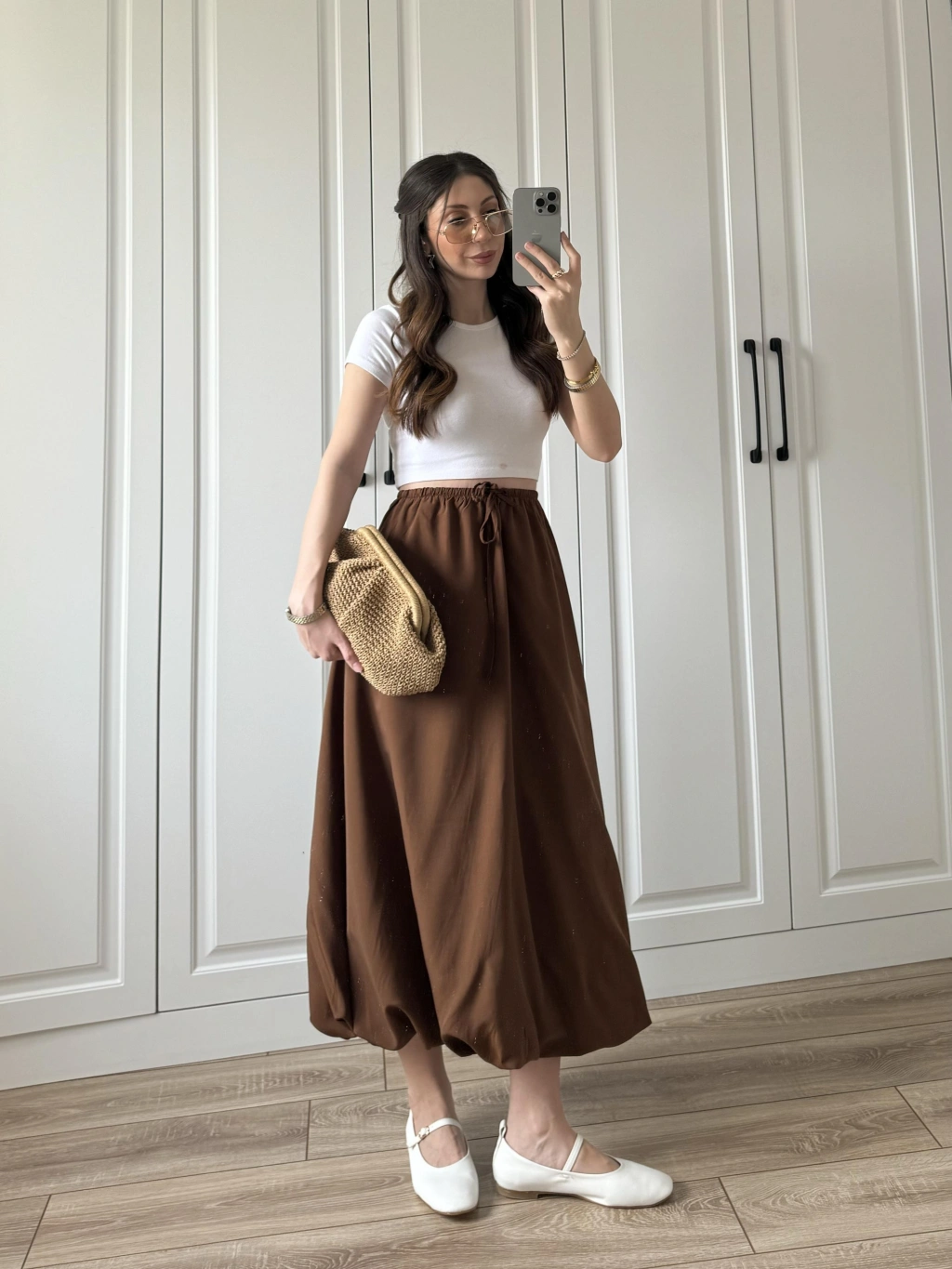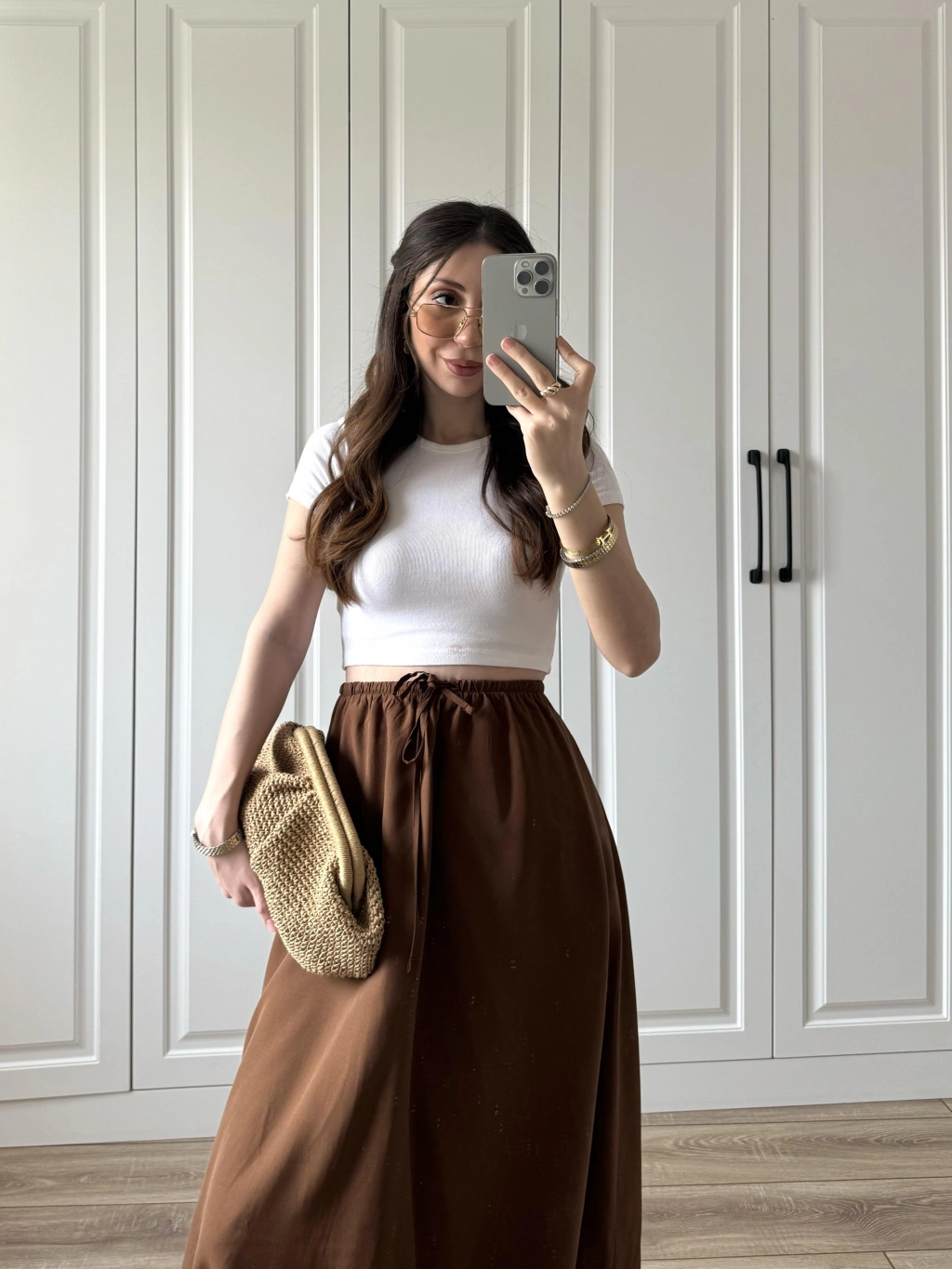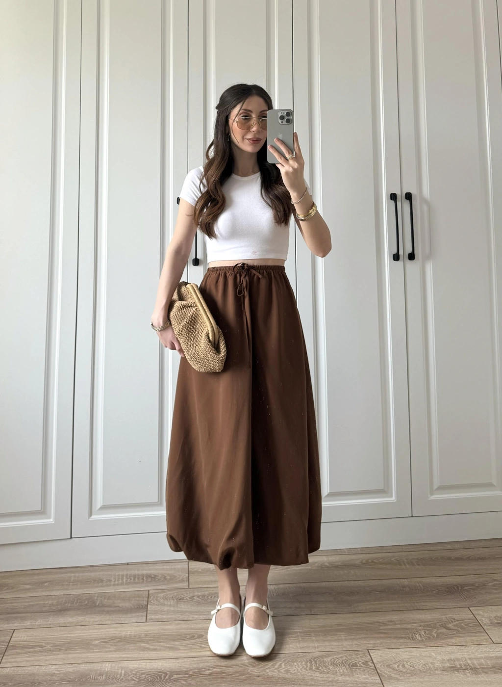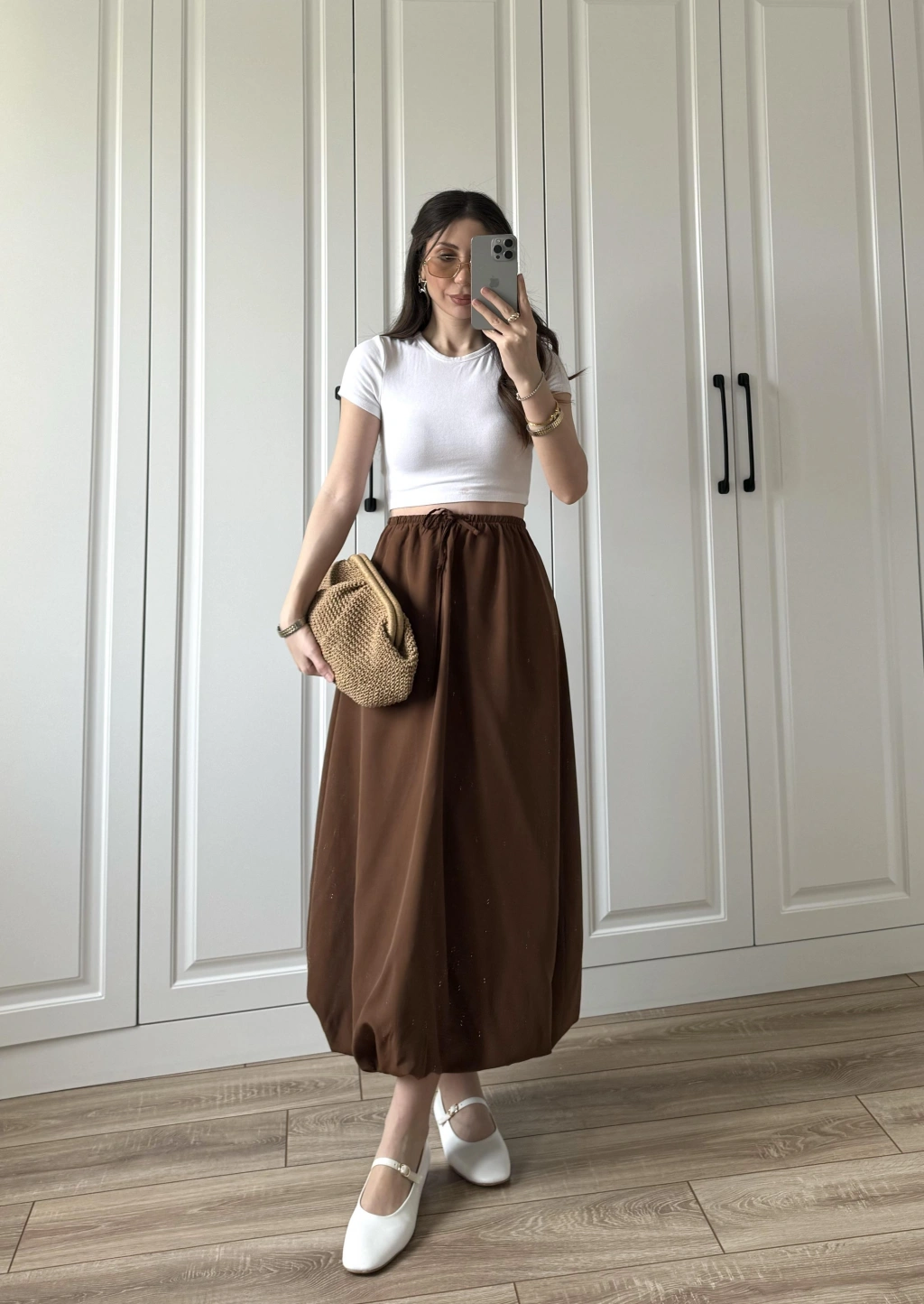 Midi Boy Şifon Astarlı Cappuccino Etek