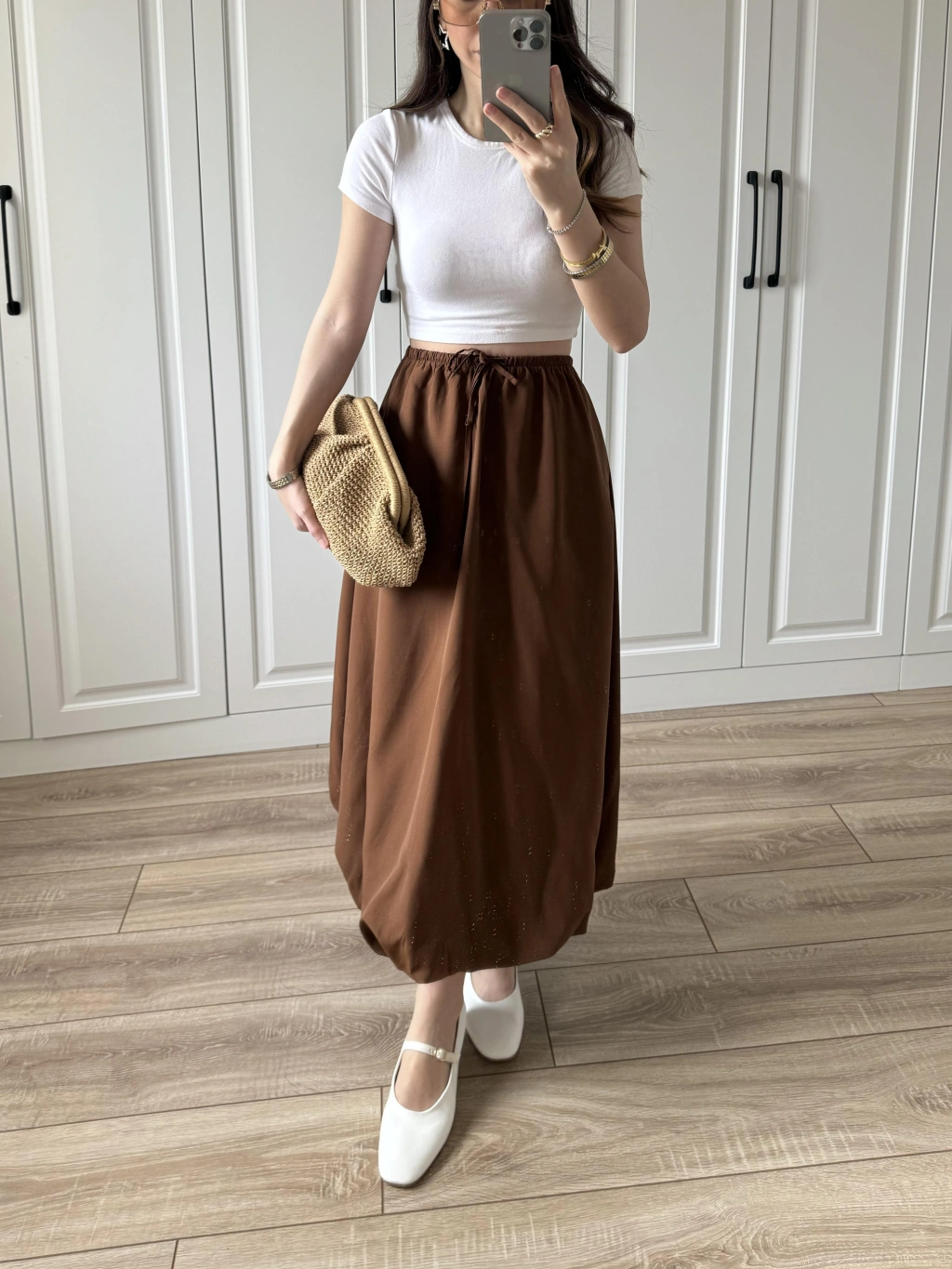 Holla Astarlı Kırışık Tarçın Tül Etek